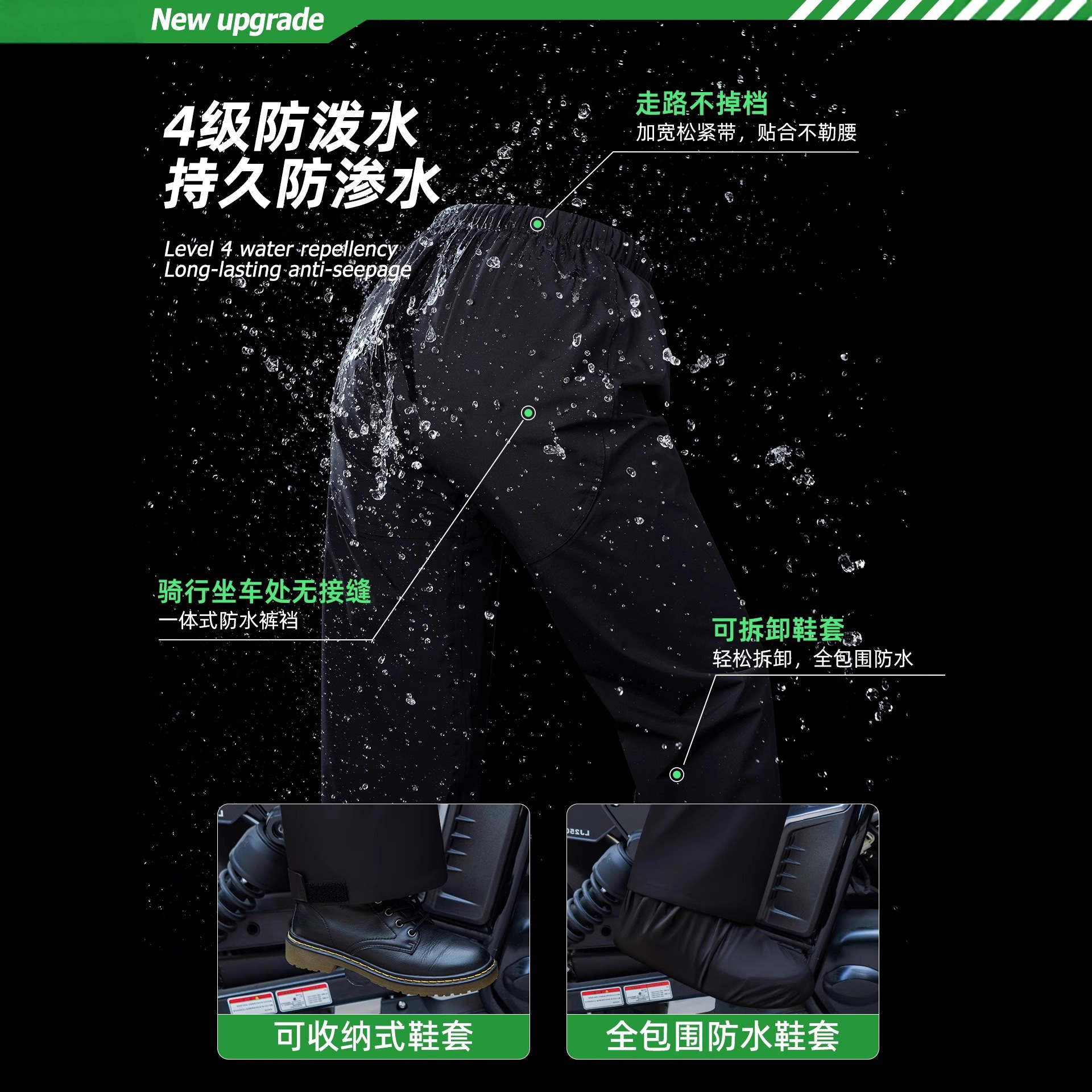 팬텀 그린 플래그십 모델 - 남녀 동일 스타일 [폭우 방지 + 3중 방수 플래킷 + 통기성 및 땀 방지 + 심리스 가랑이 + 신발 커버] 무료 보관 가방