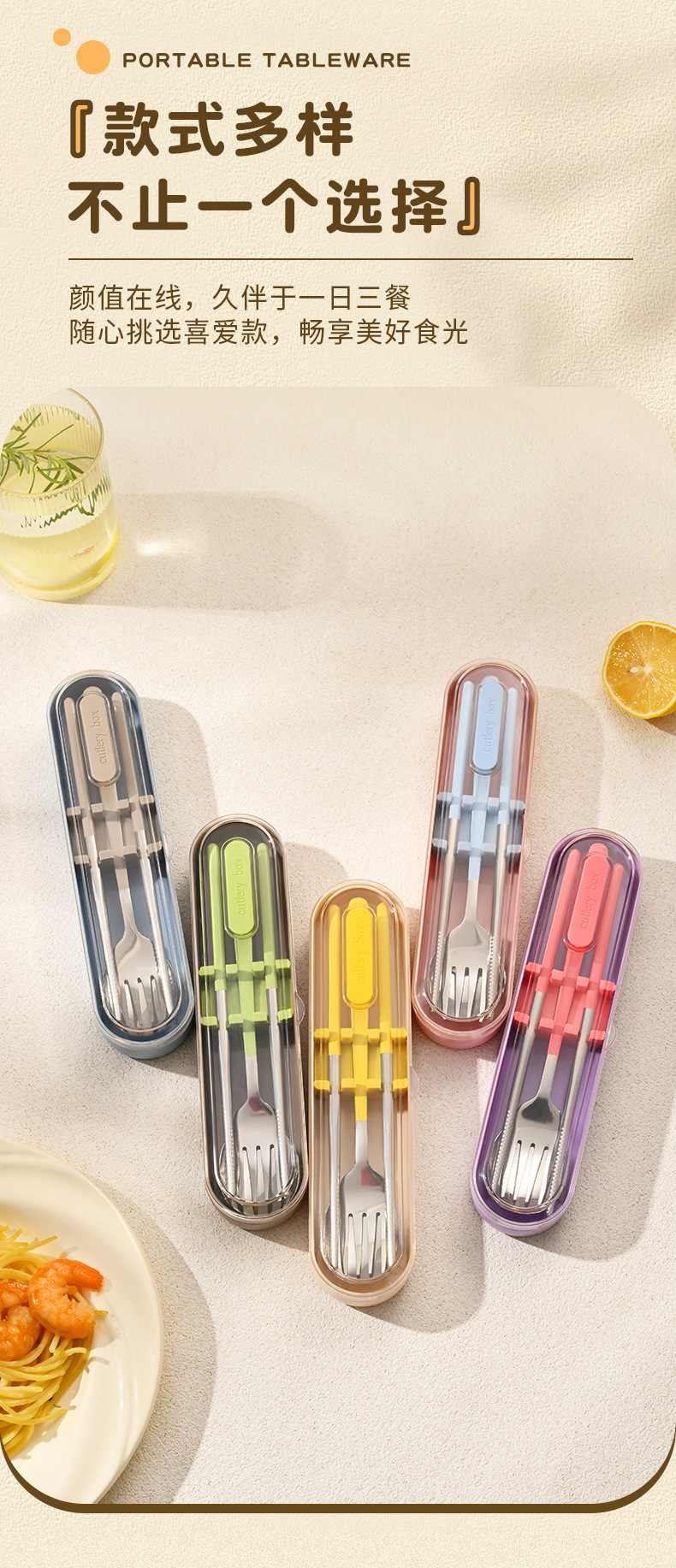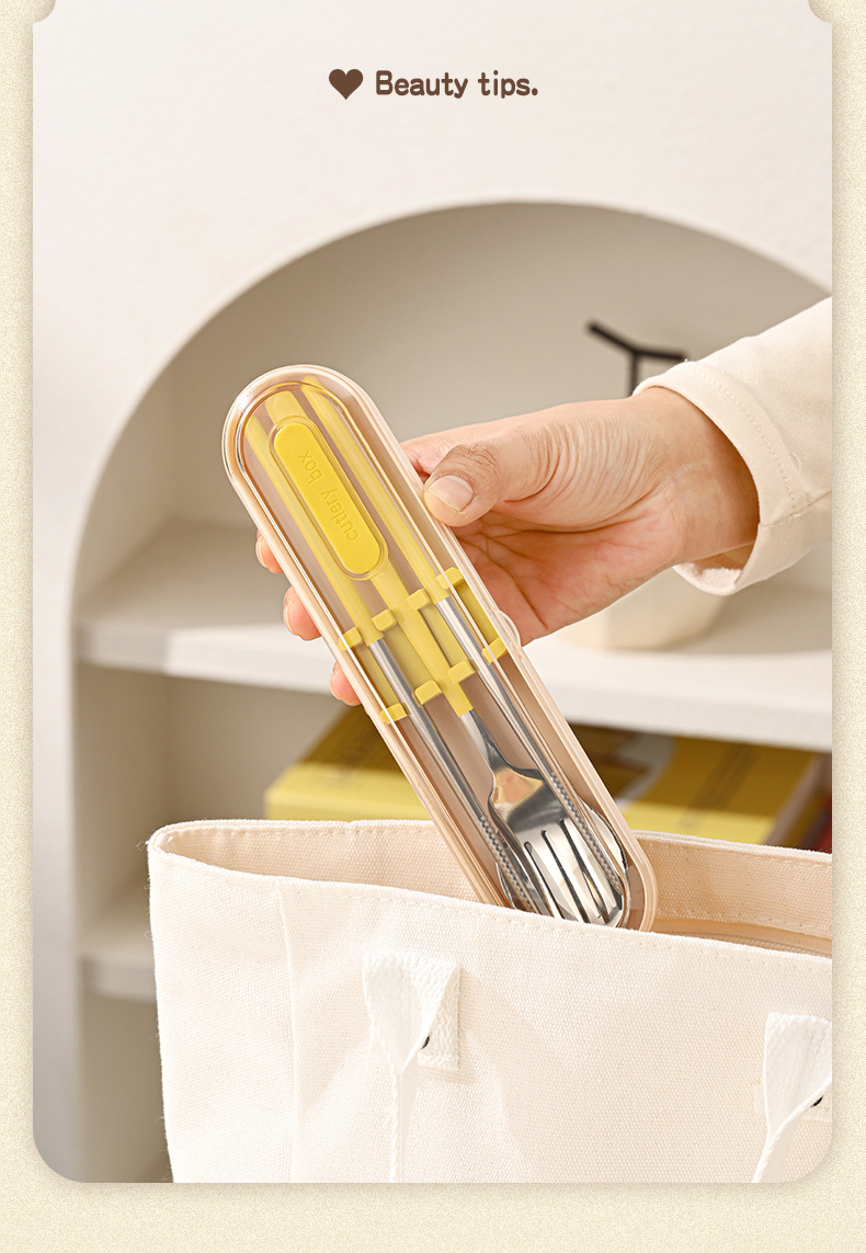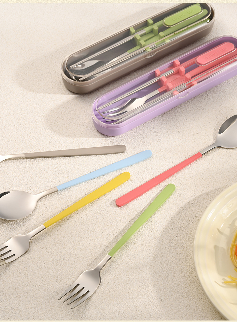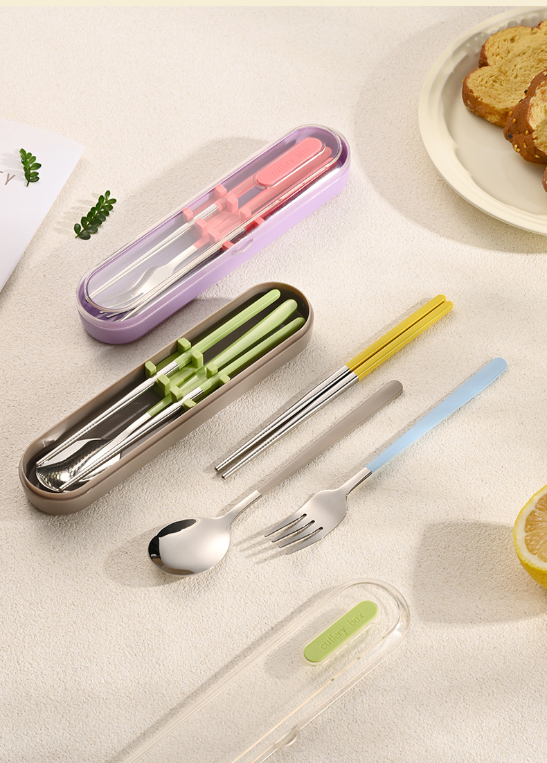 숟가락, 포크, 젓가락 3종 세트(동일 색상의 보관함 포함)