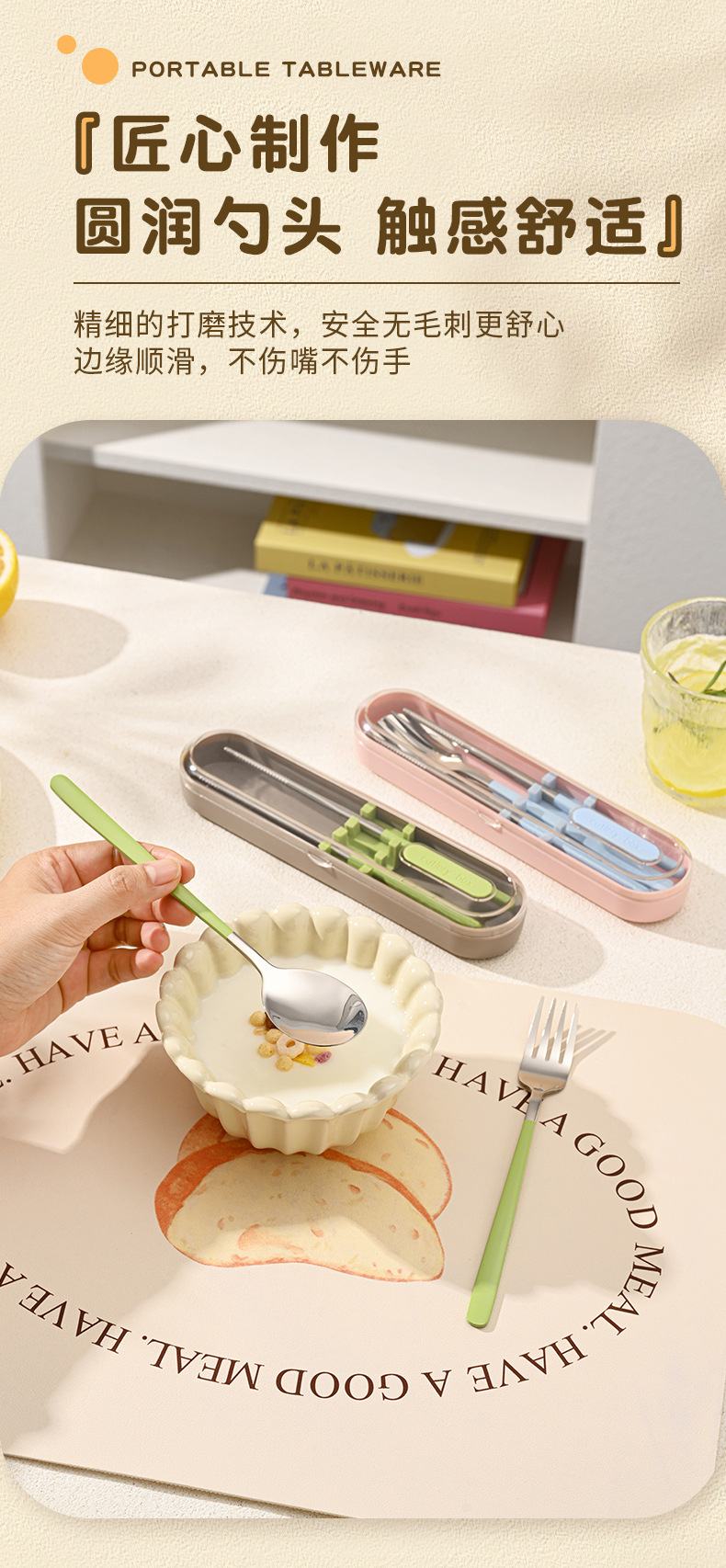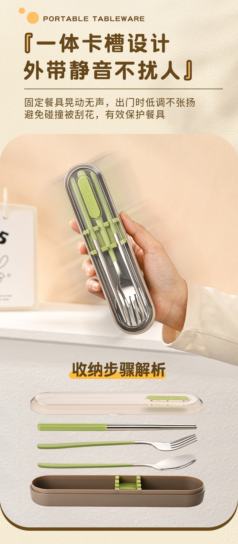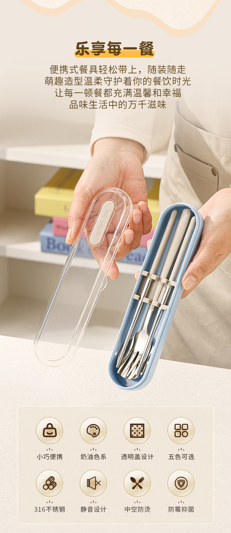 숟가락, 포크, 젓가락 3종 세트(동일 색상의 보관함 포함)
