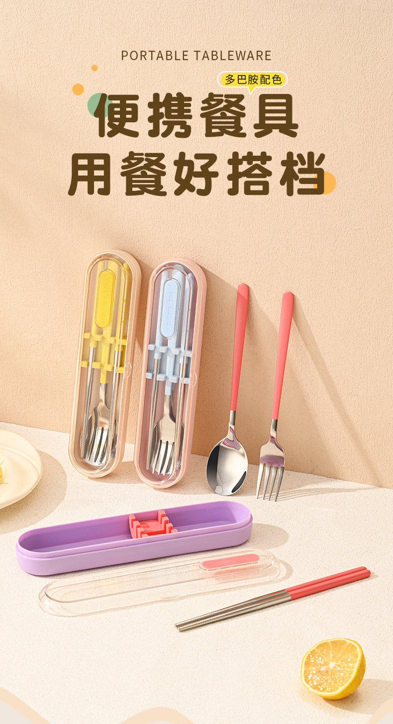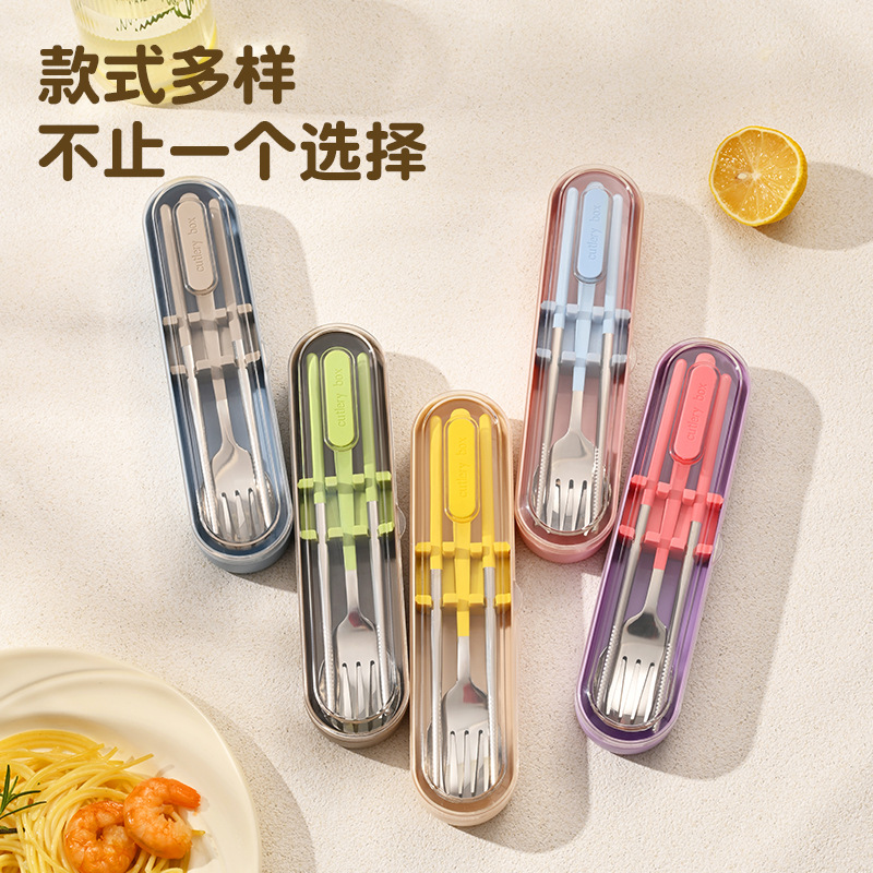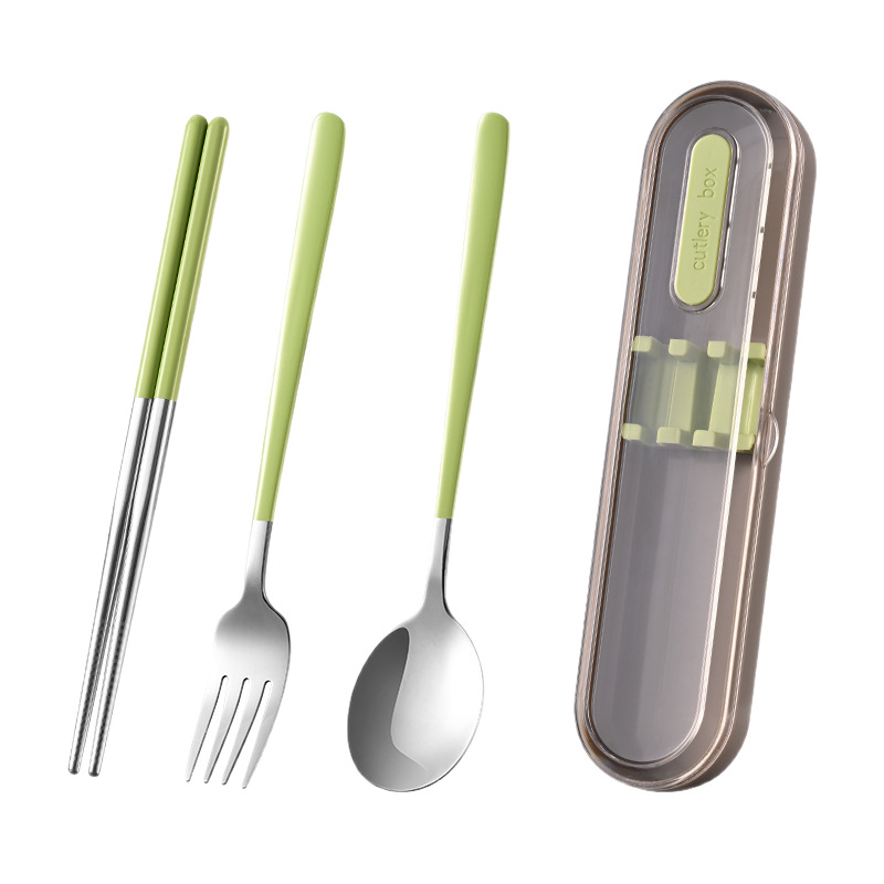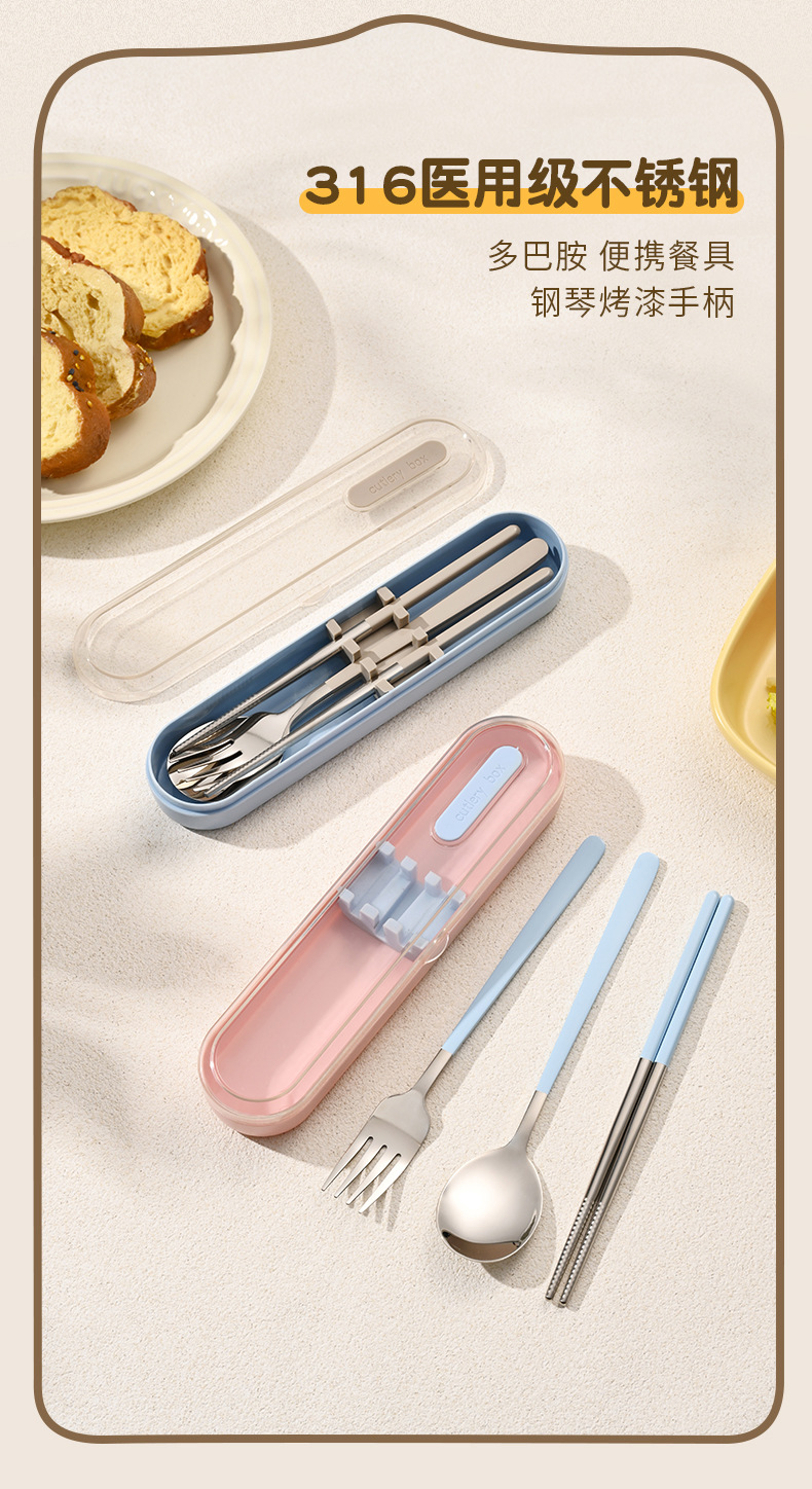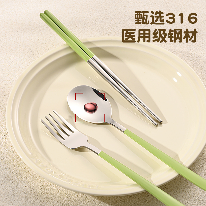 316 스테인레스 스틸 식기 휴대용 세트 학생 여행 작업 숟가락 포크 젓가락 3 피스 세트 캠핑 야외 숟가락