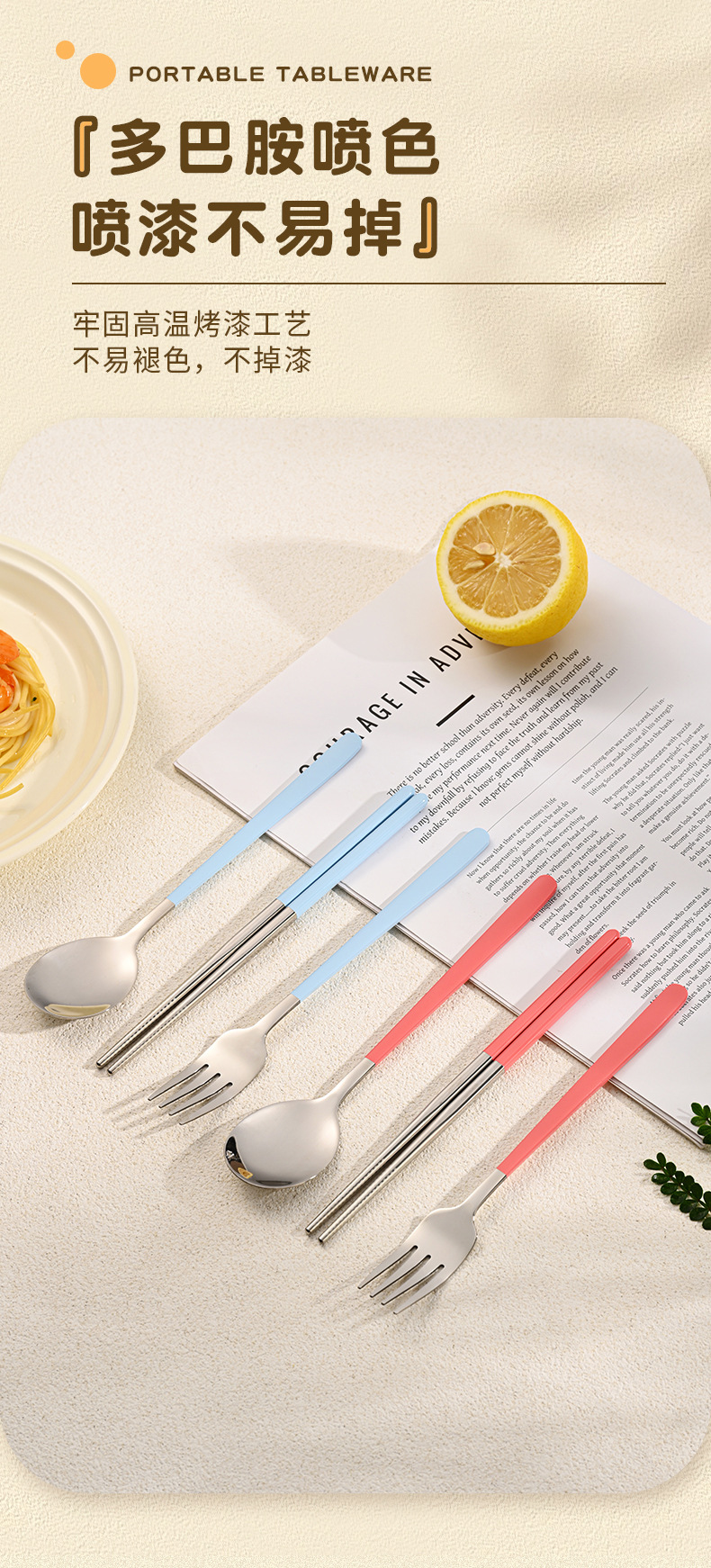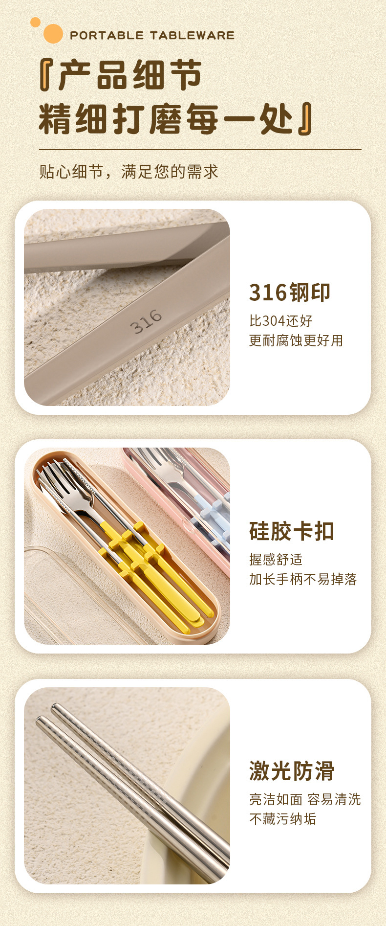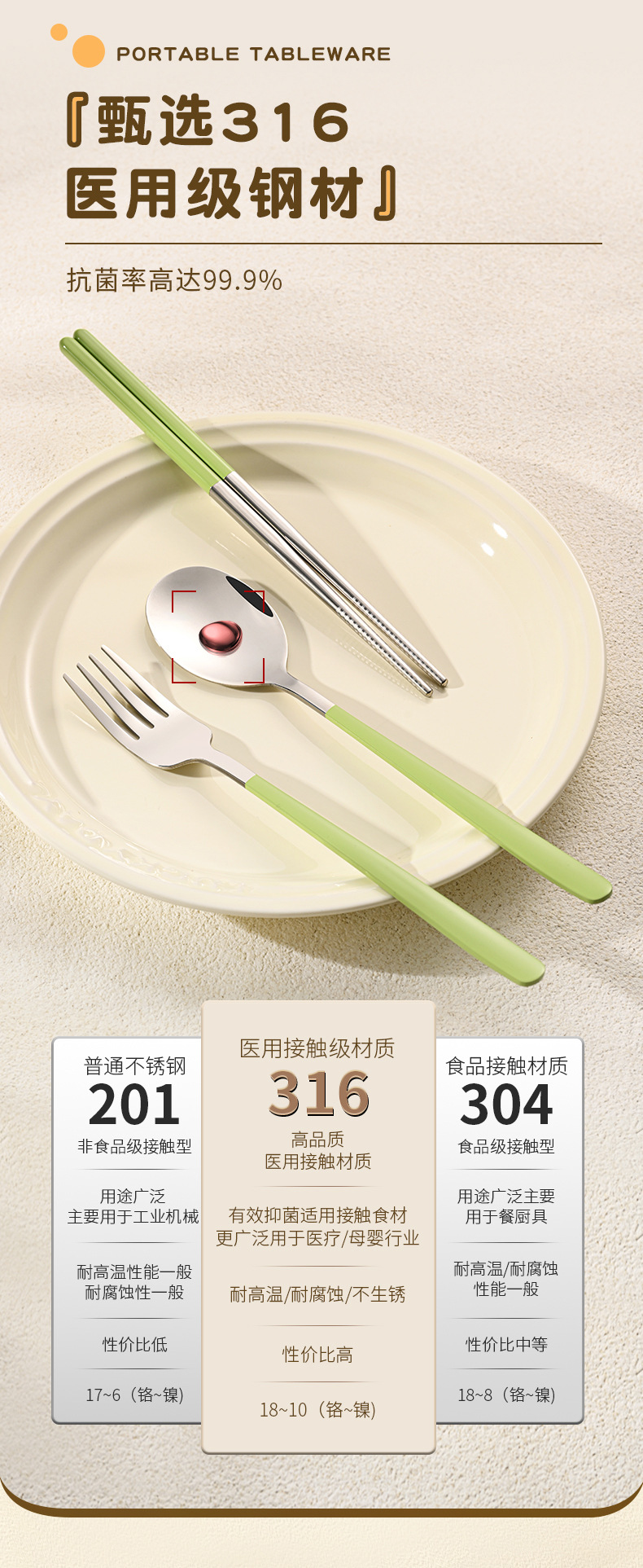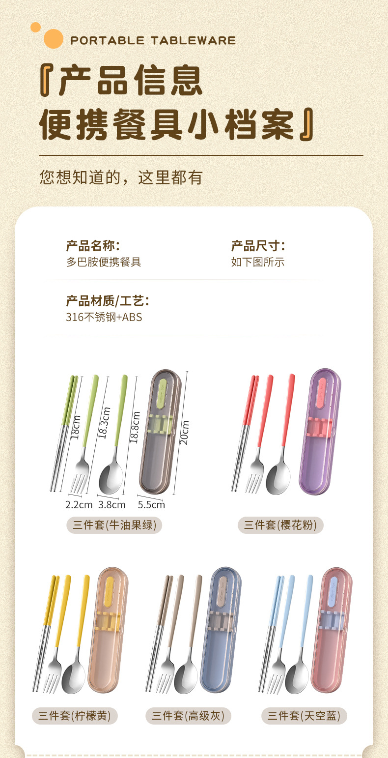 316 스테인레스 스틸 식기 휴대용 세트 학생 여행 작업 숟가락 포크 젓가락 3 피스 세트 캠핑 야외 숟가락