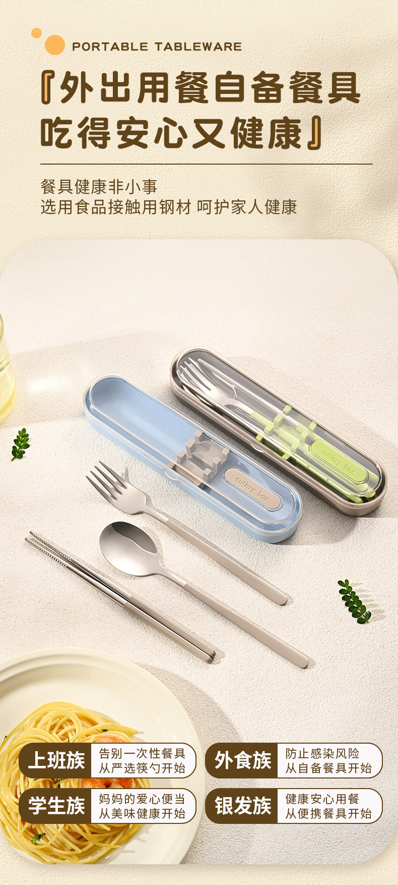 숟가락과 젓가락 2종 세트(동일 색상의 보관함 포함)