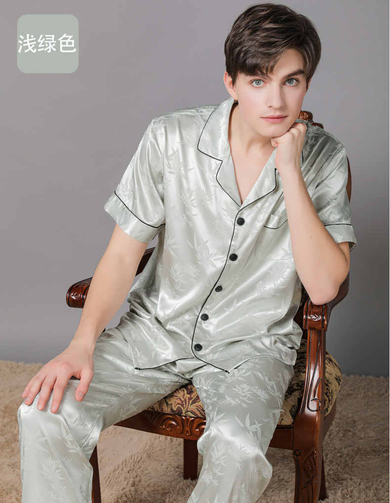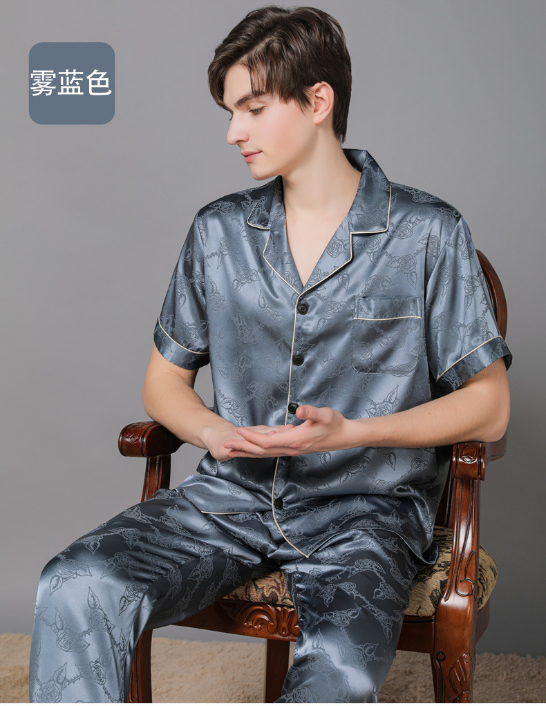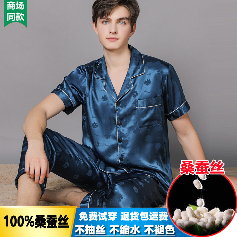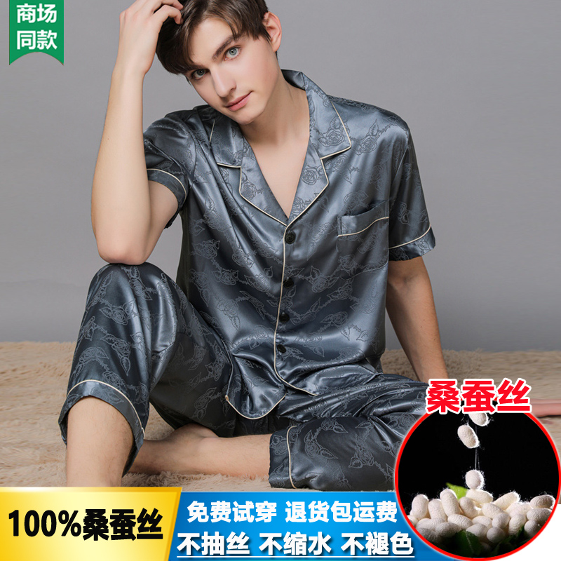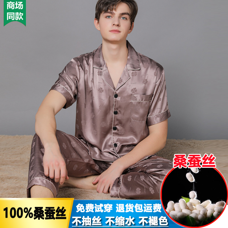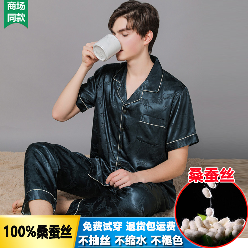 멀베리 실크 잠옷 남성 투피스 실크 반팔 여름 루즈 대형 양복 얇은 긴팔 실크 홈웨어
