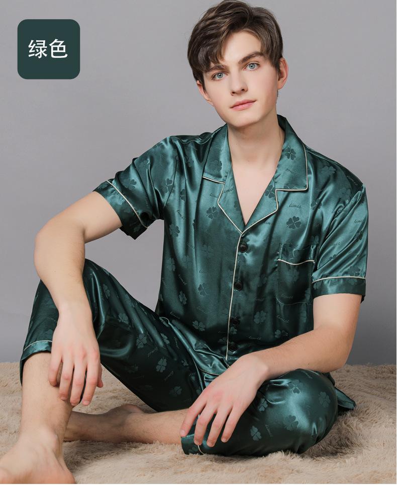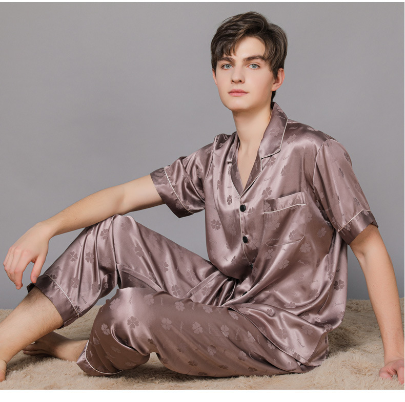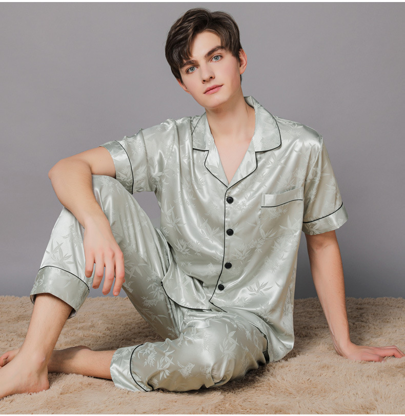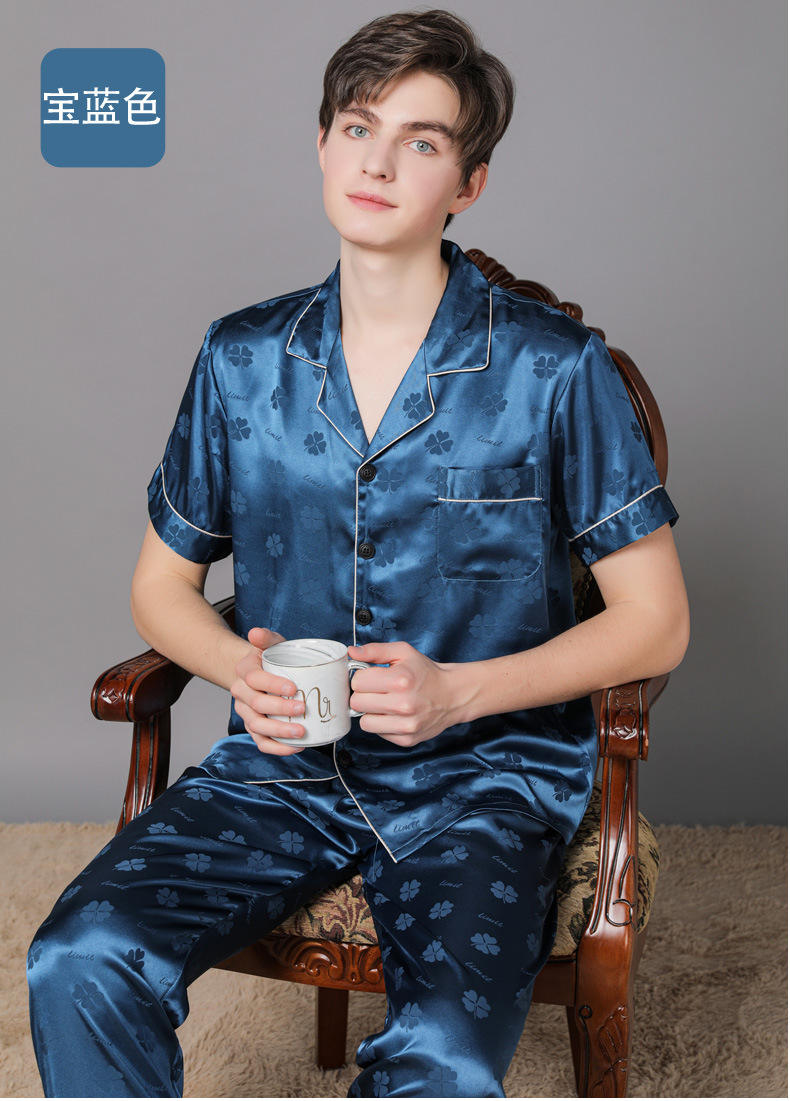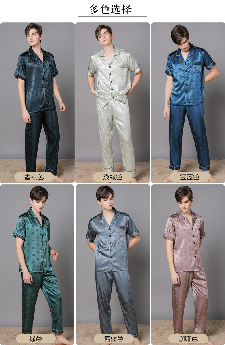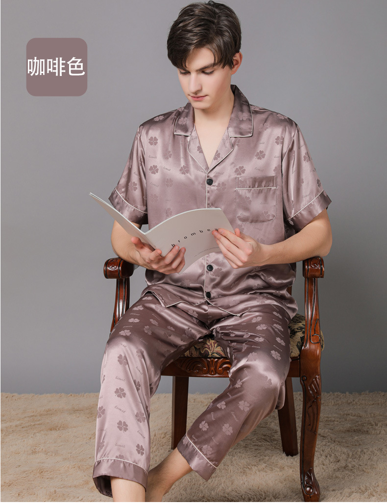 멀베리 실크 잠옷 남성 투피스 실크 반팔 여름 루즈 대형 양복 얇은 긴팔 실크 홈웨어