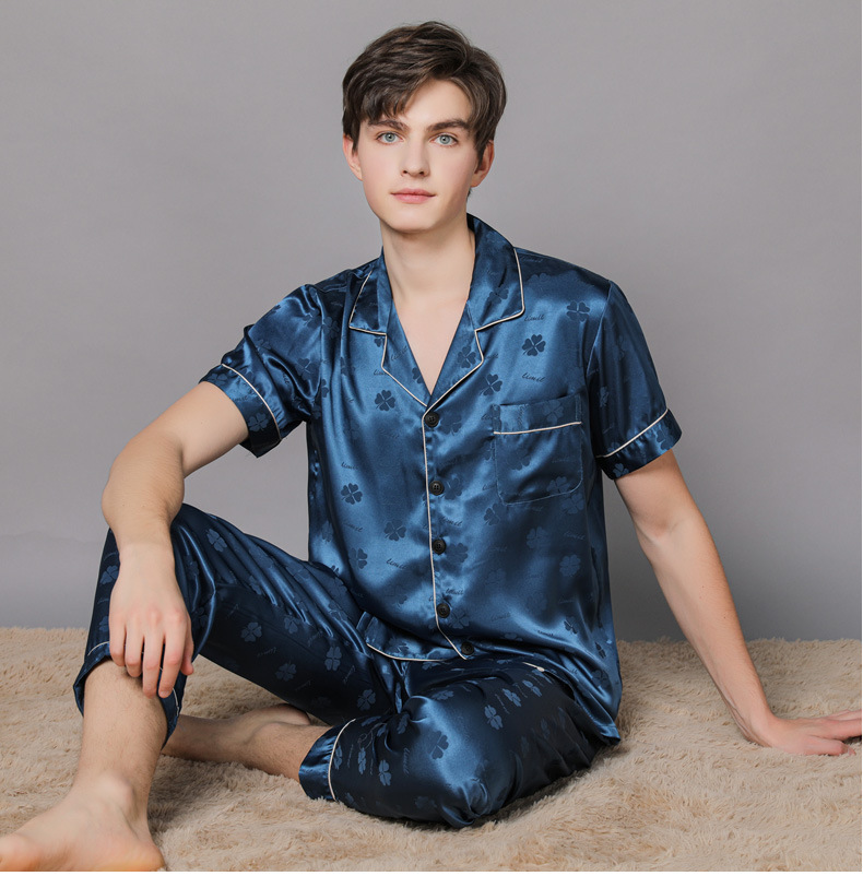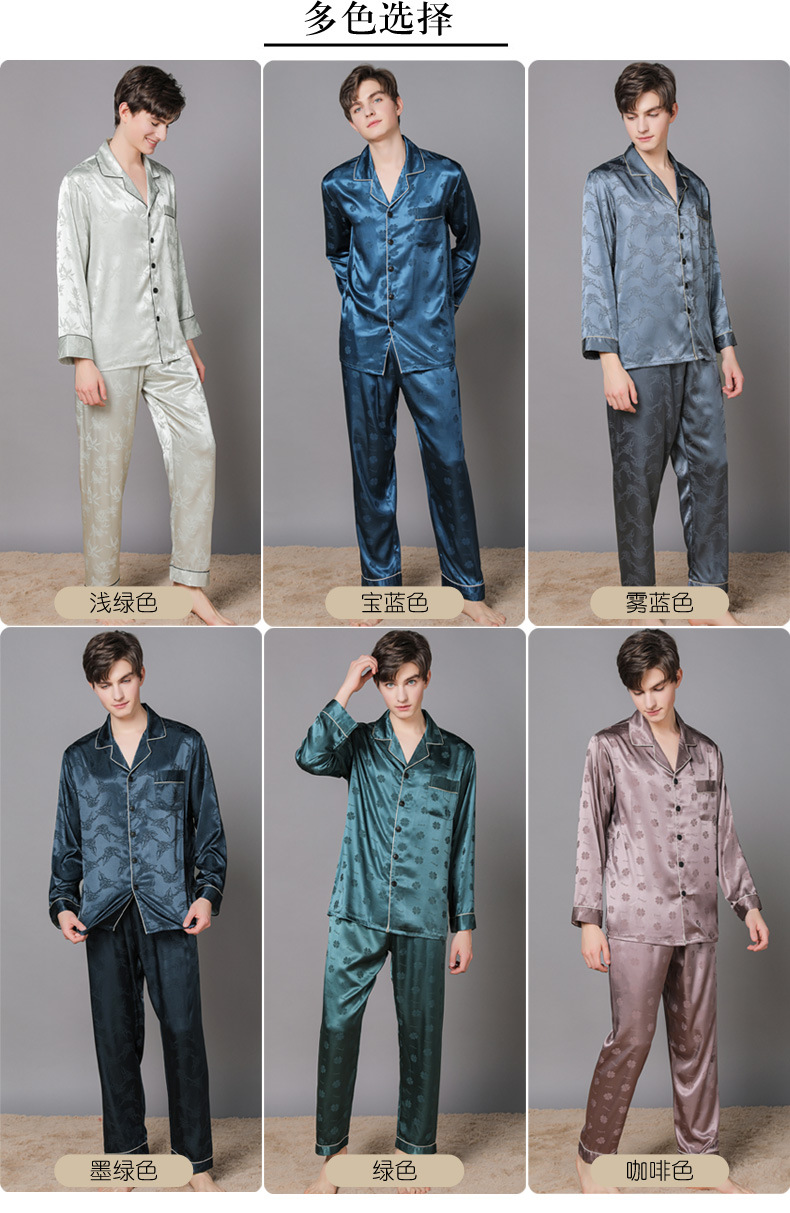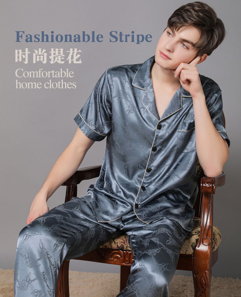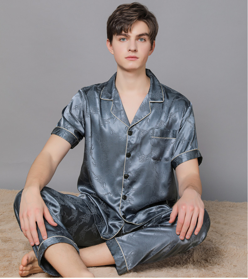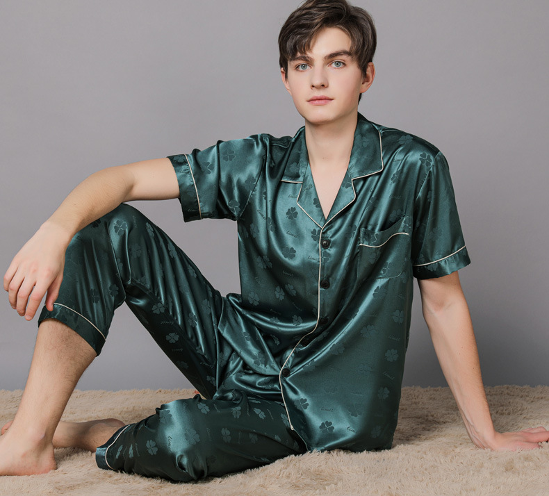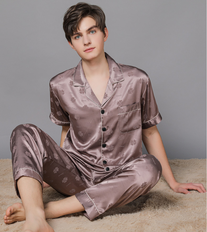 멀베리 실크 잠옷 남성 투피스 실크 반팔 여름 루즈 대형 양복 얇은 긴팔 실크 홈웨어
