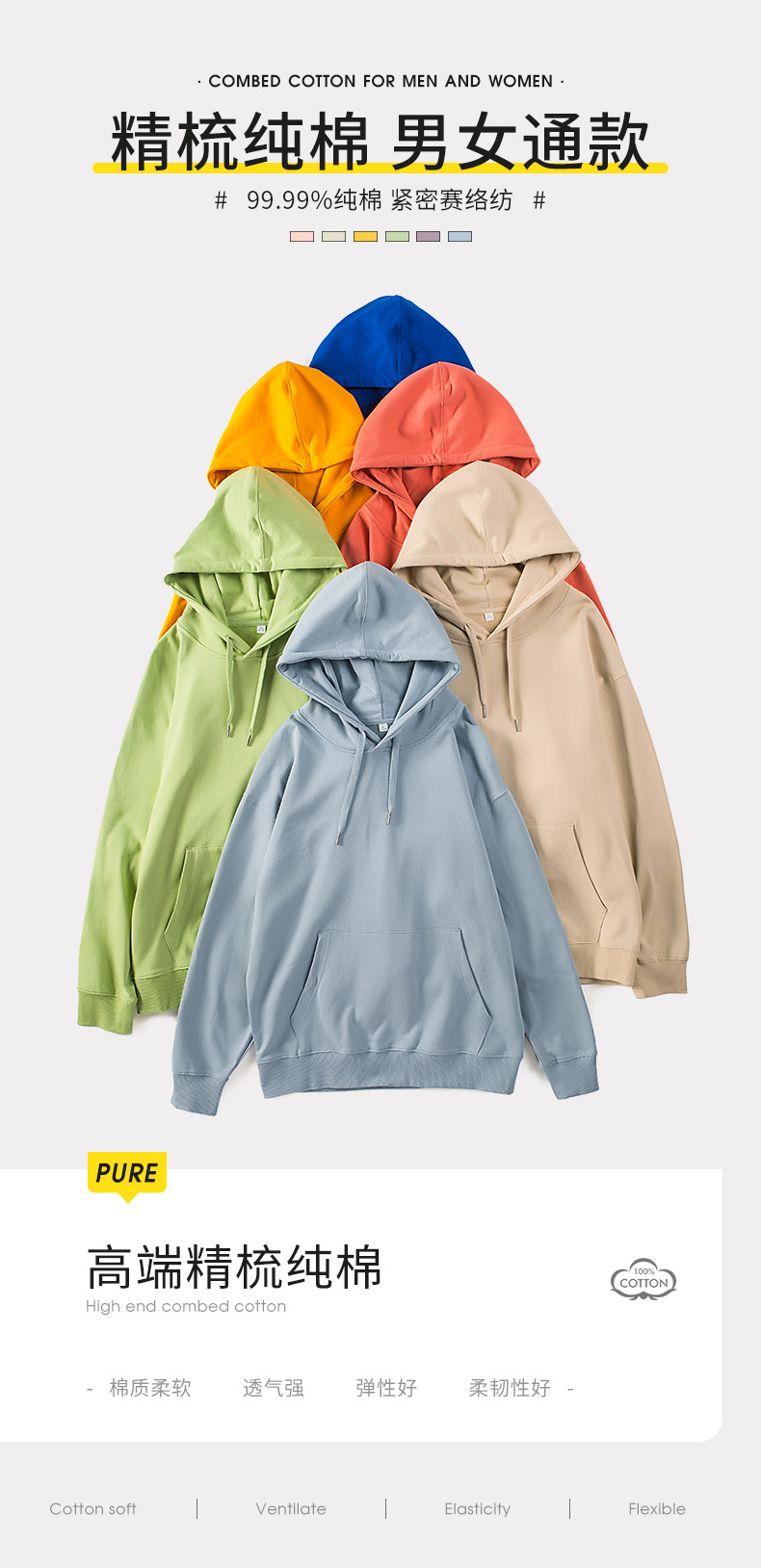헤비급 트렌디 브랜드 퓨어 코튼 스웨트 셔츠 아메리칸 라지 사이즈 캐주얼 테리 후드 솔리드 컬러 남성용 후드 티셔츠 맞춤형