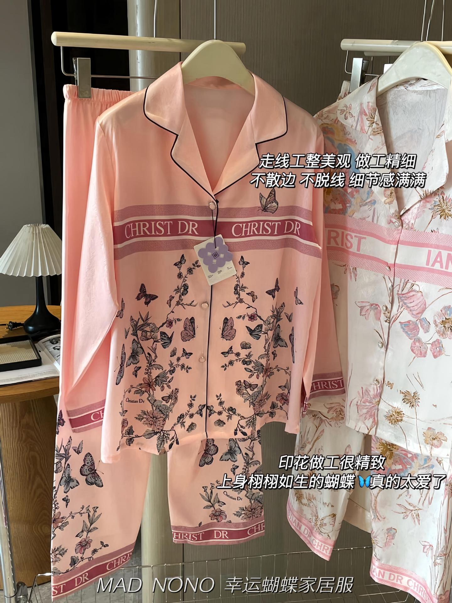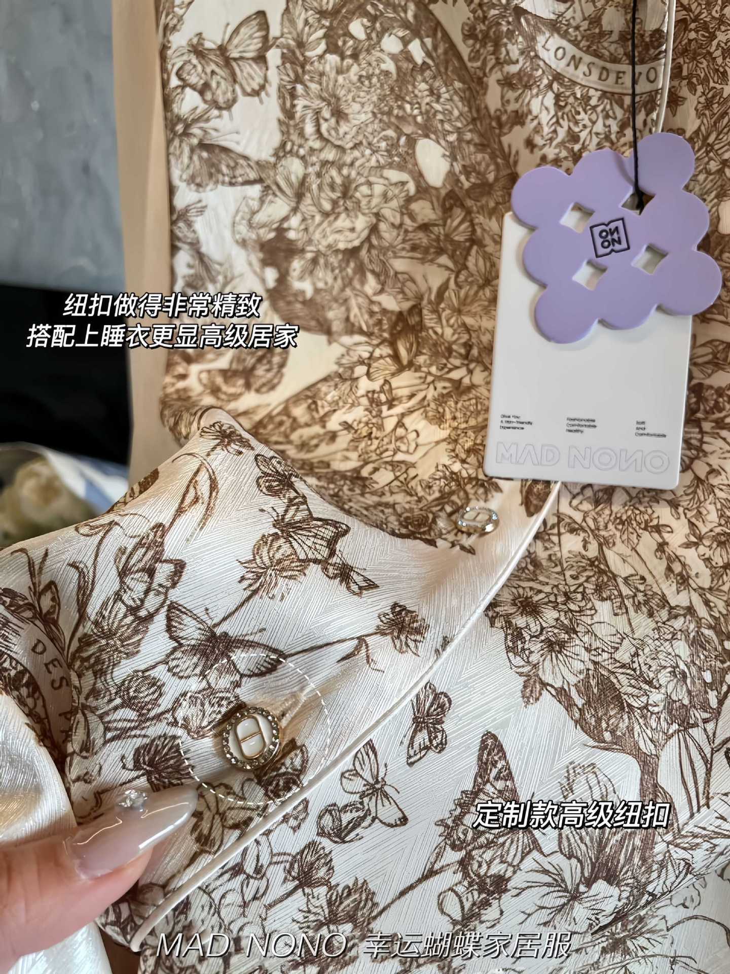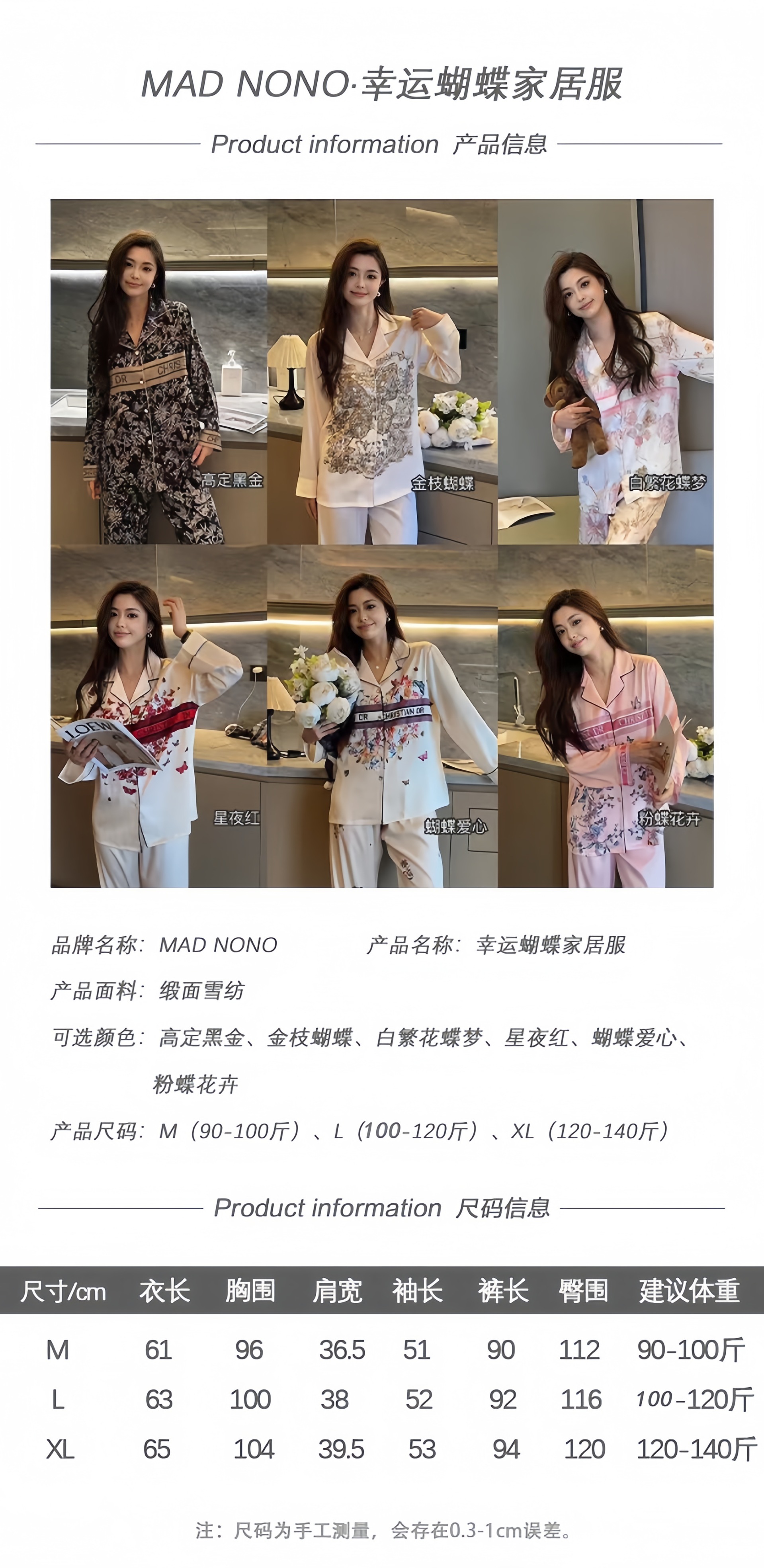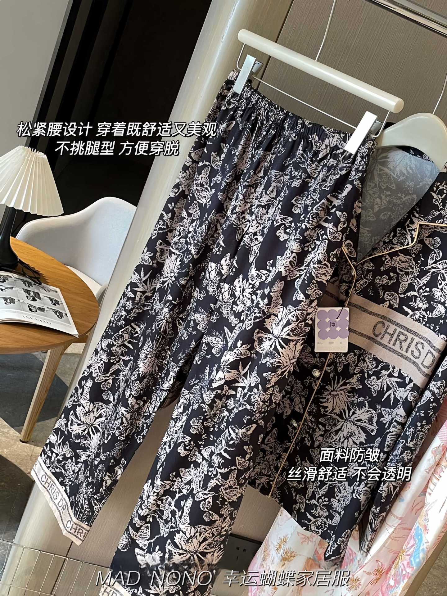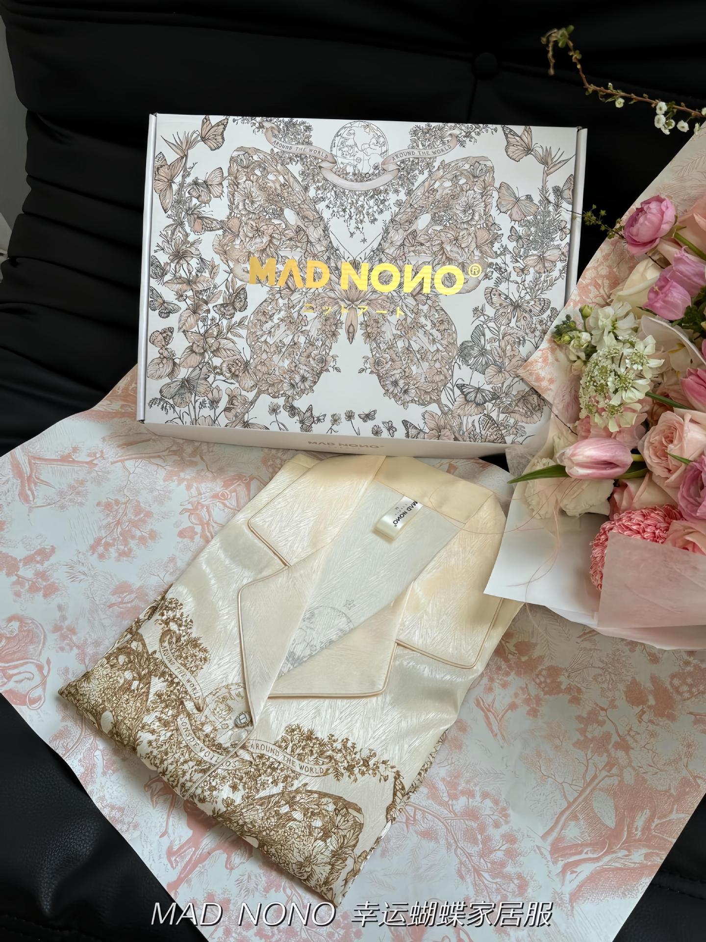 MAD NONO 럭키 버터플라이 홈웨어 세트 여성용 잠옷 봄, 가을 새틴 쉬폰 편안한 캐주얼 여성 잠옷