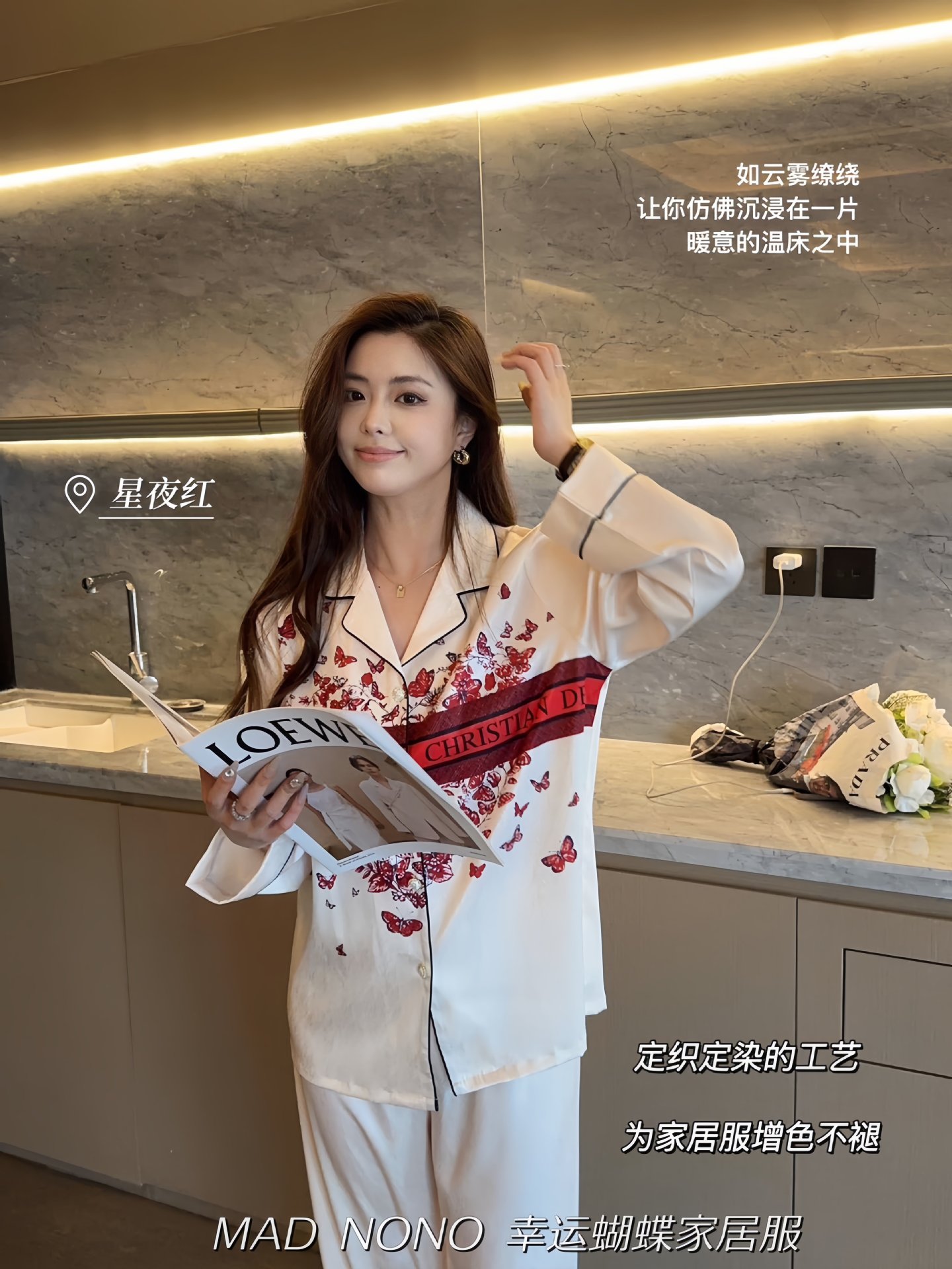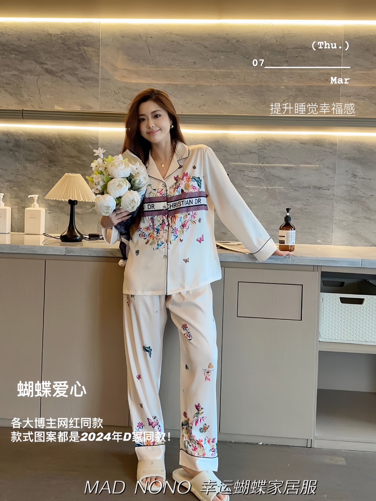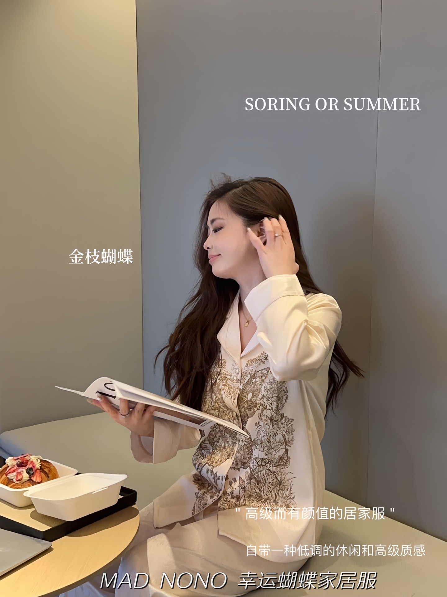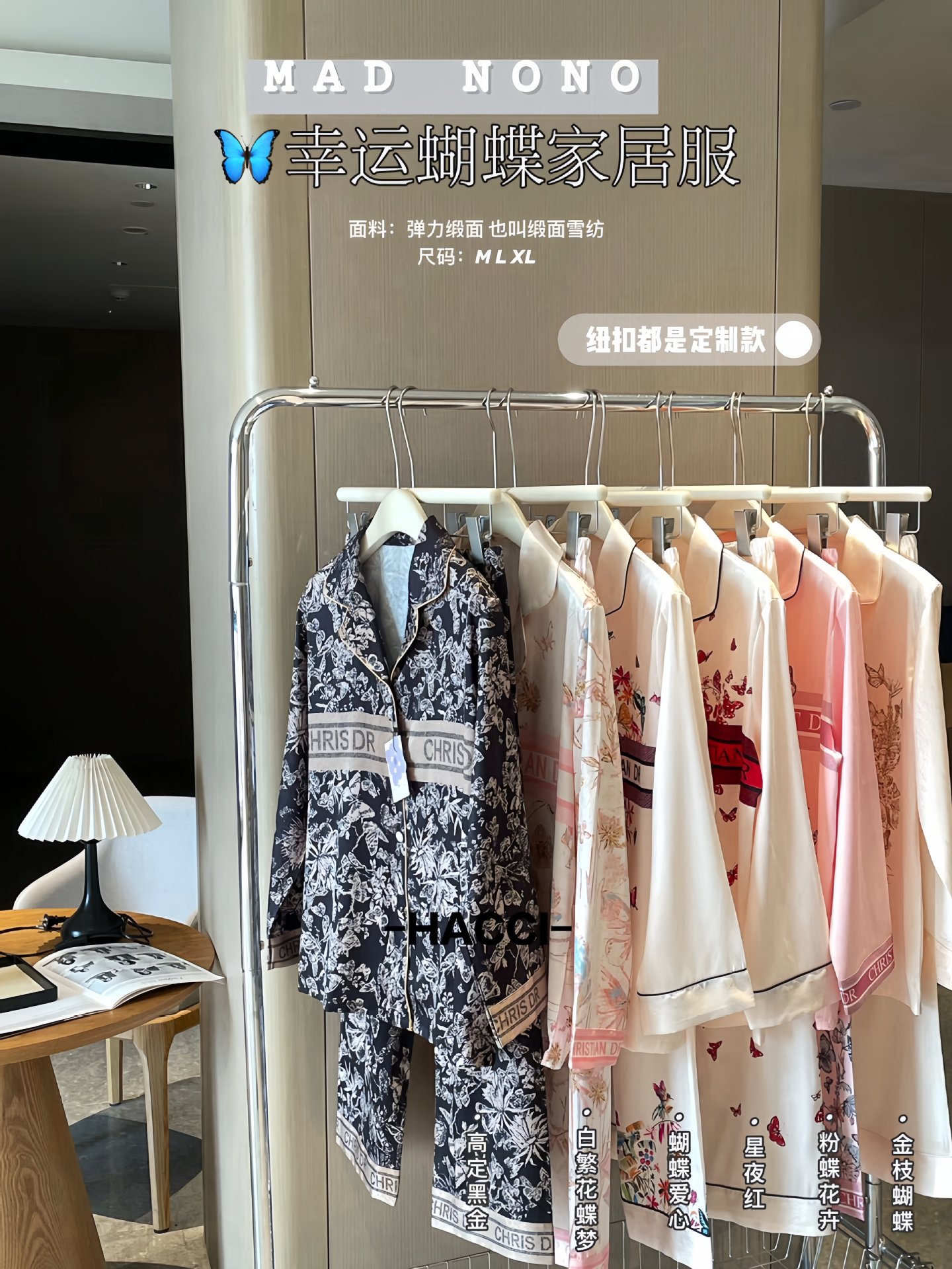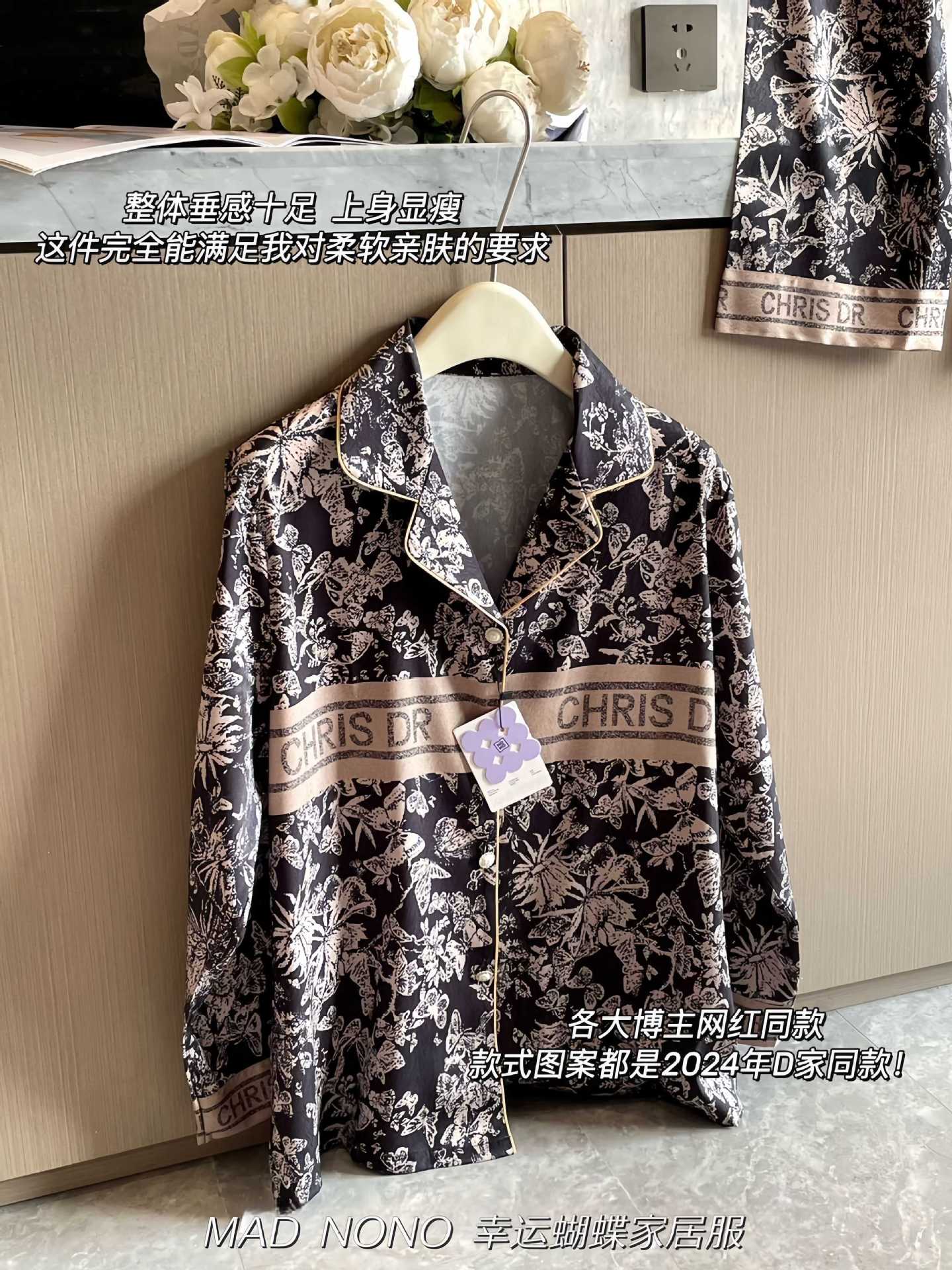 MAD NONO 럭키 버터플라이 홈웨어 세트 여성용 잠옷 봄, 가을 새틴 쉬폰 편안한 캐주얼 여성 잠옷