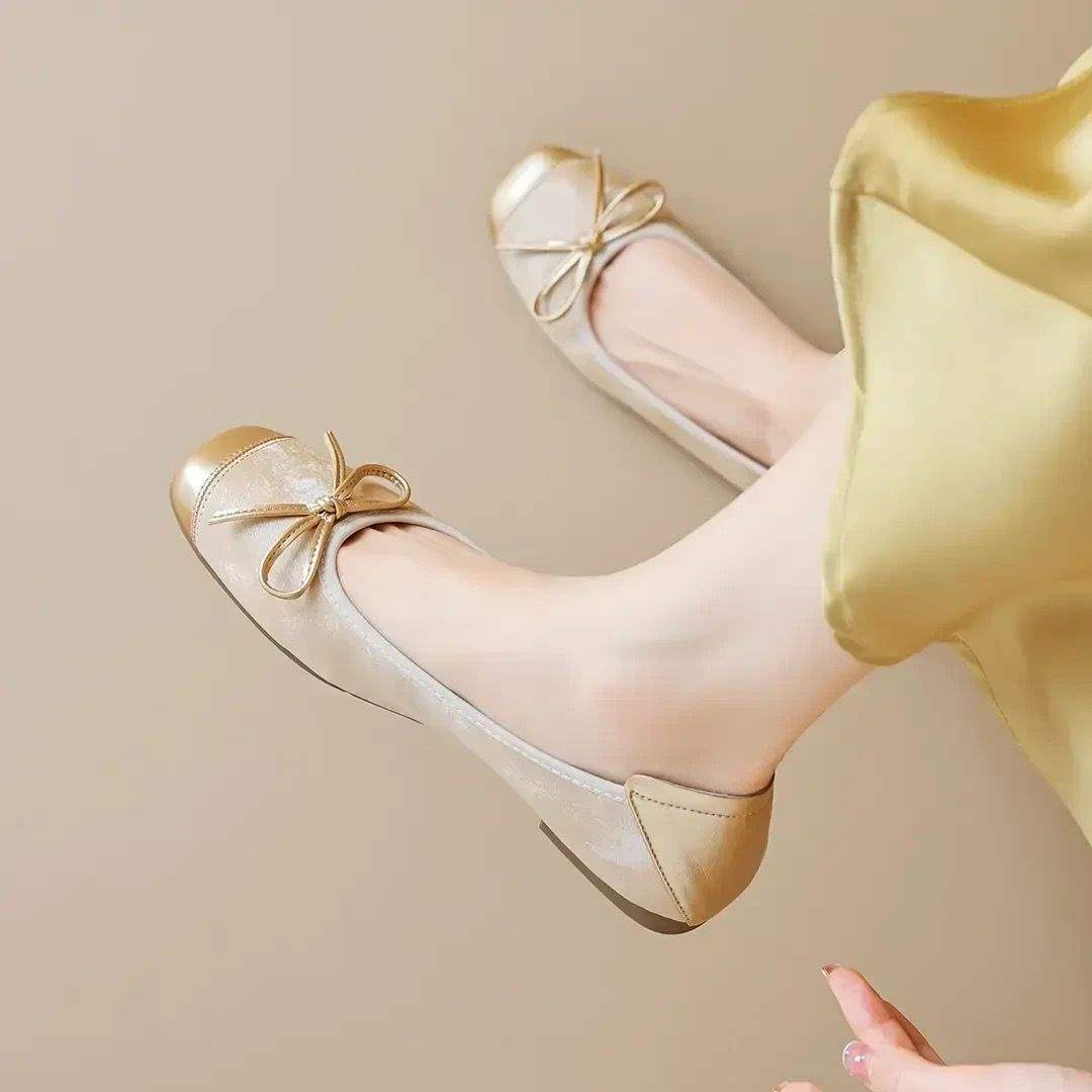 프렌치 스타일 2025 펌프스 에그롤 슈즈 여름 신작 보우 플랫 발레 슈즈 소프트 솔 여성 슈즈