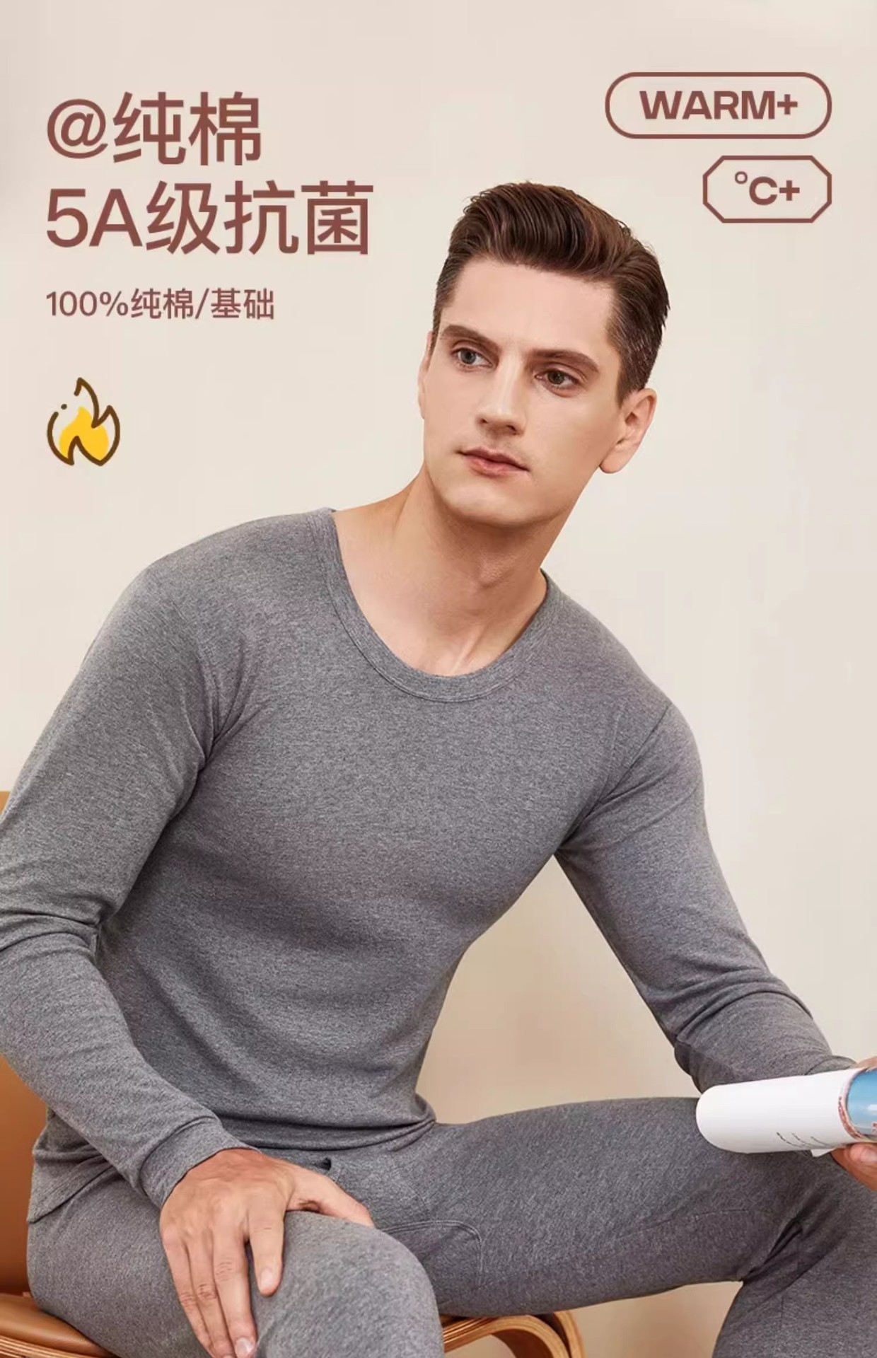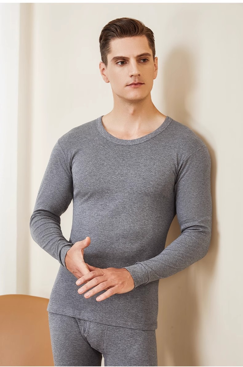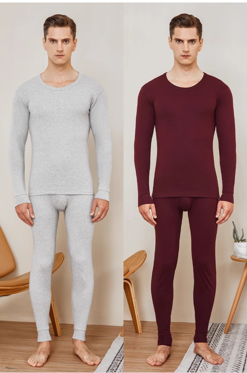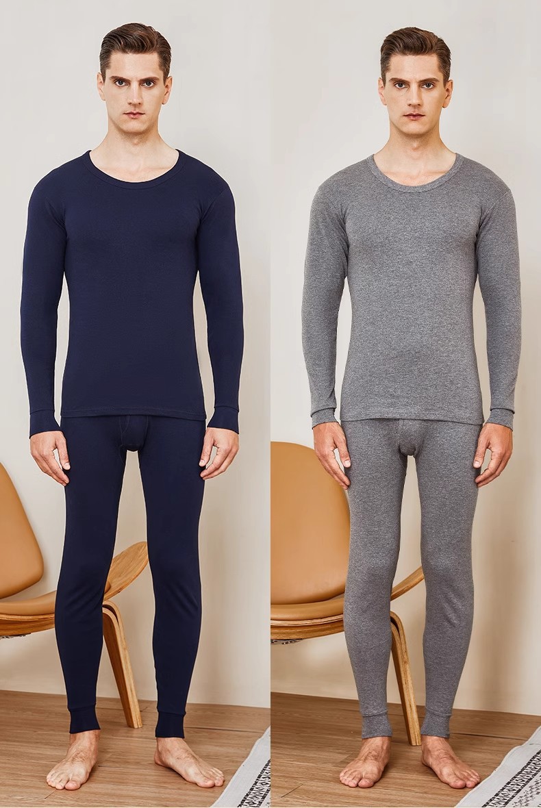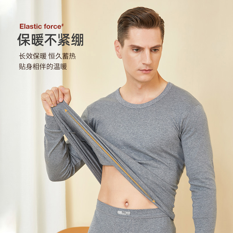 남성과 여성을 위한 라운드 넥 순면 항균 보온 속옷, 얇은 베이스 코튼 스웨터, 가을 옷, 긴 바지 세트, 겨울