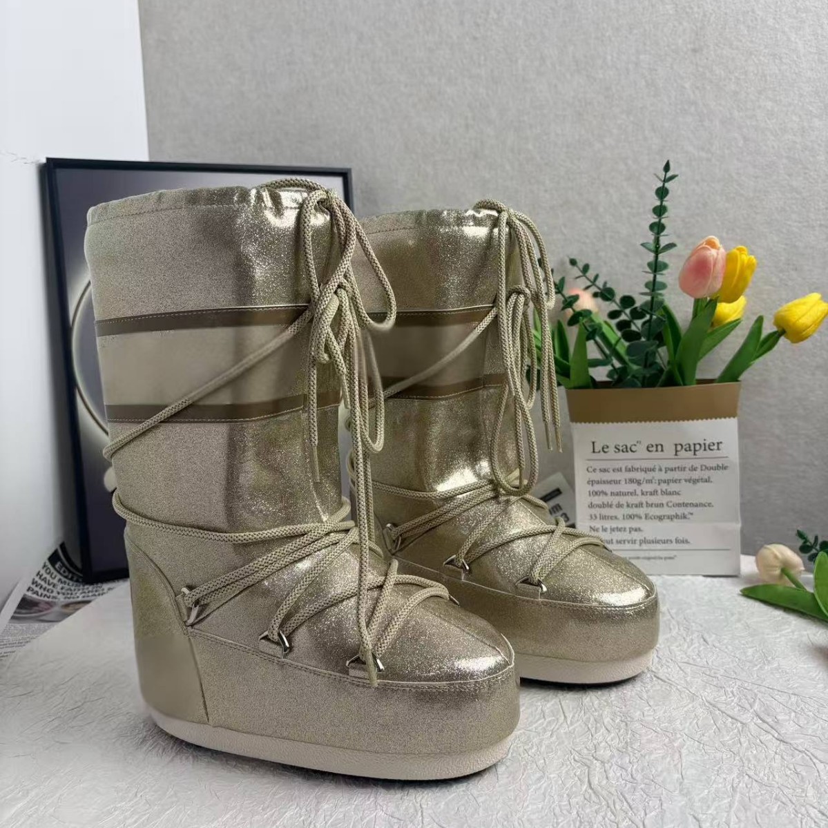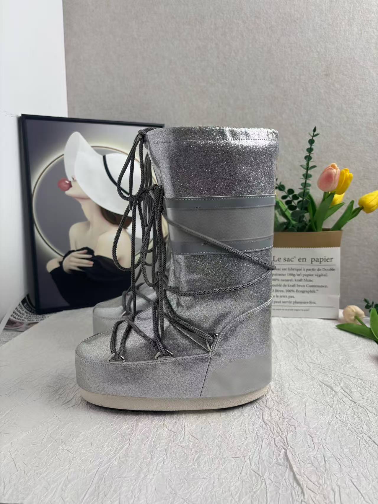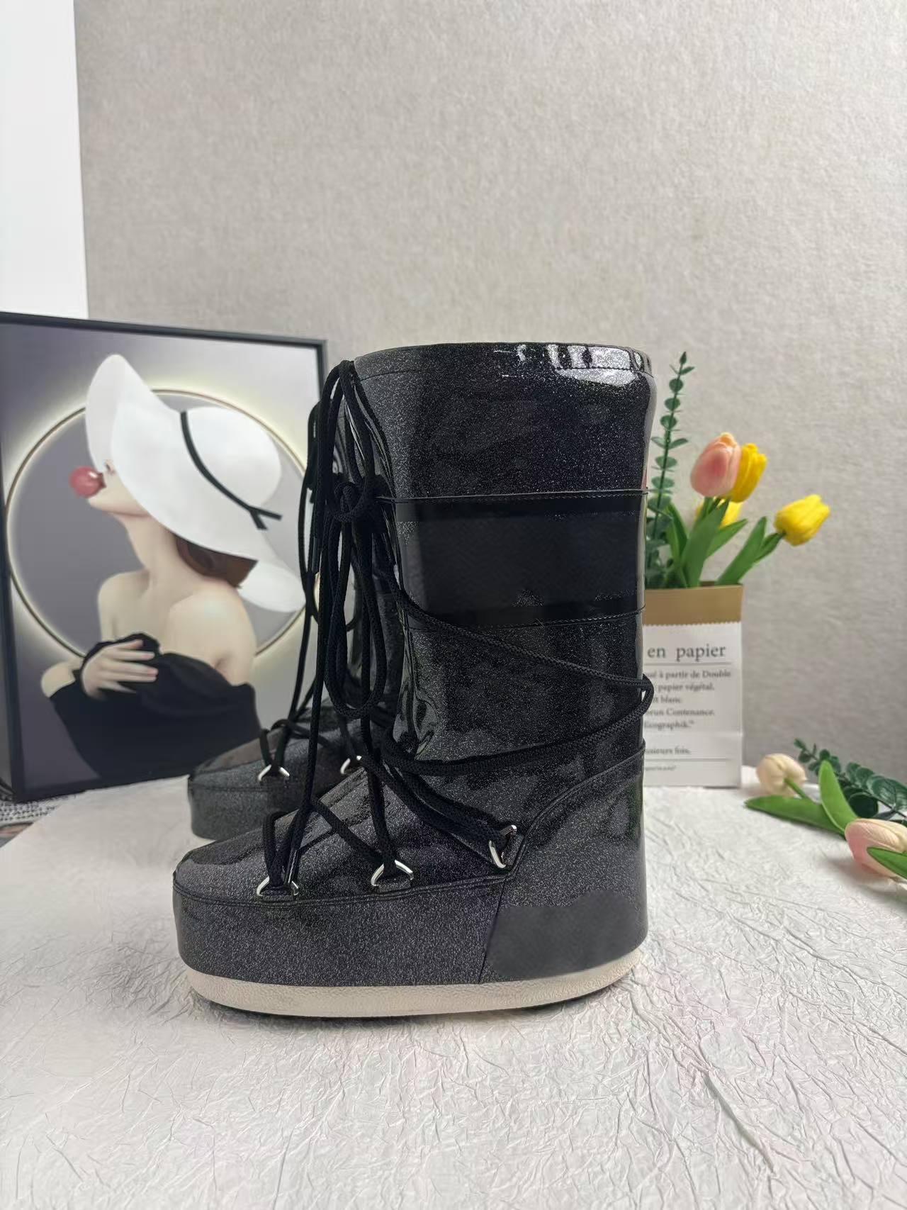 2025 겨울 핫템 플러스 벨벳 안감 보온 방한 스노우 부츠 여성용 롱 부츠 키높이 문부츠 동일 스타일 도매 50개부터