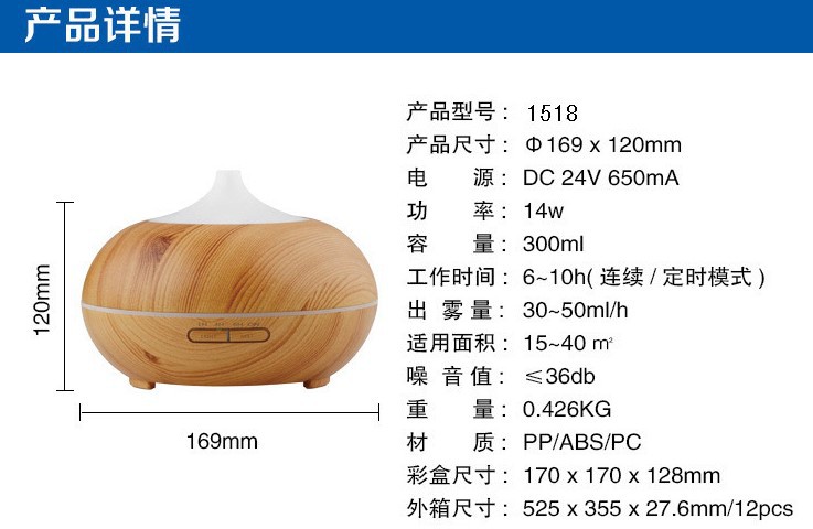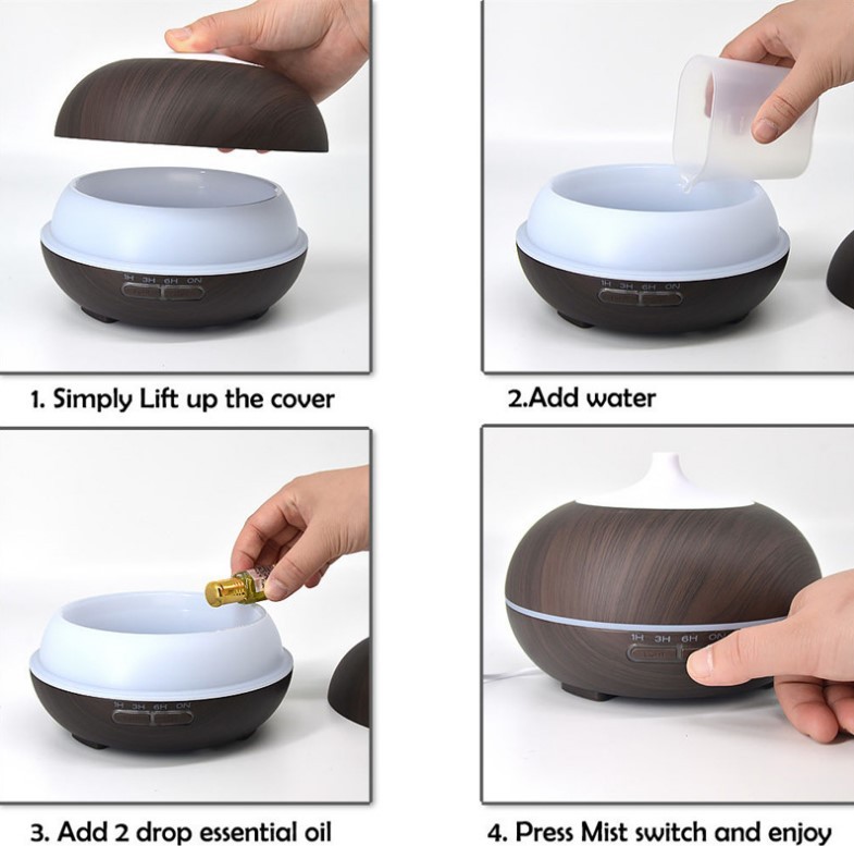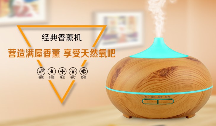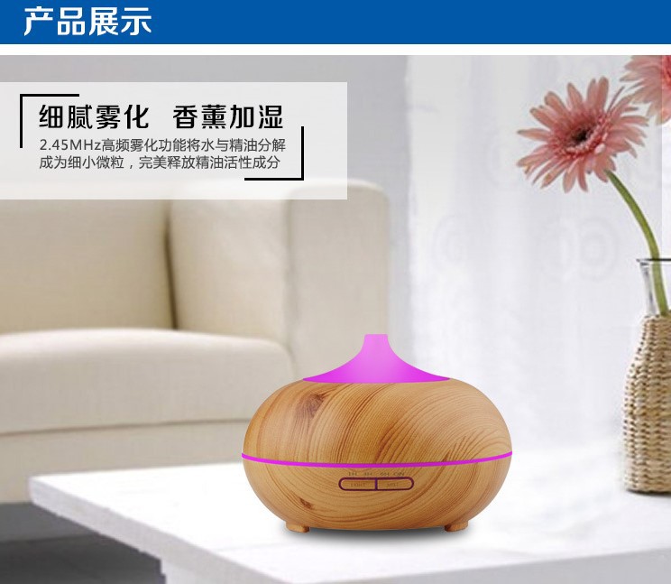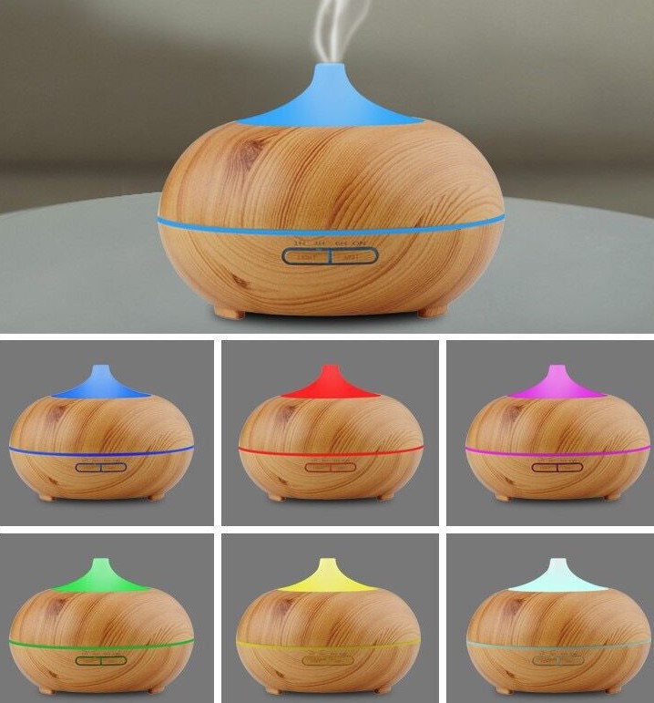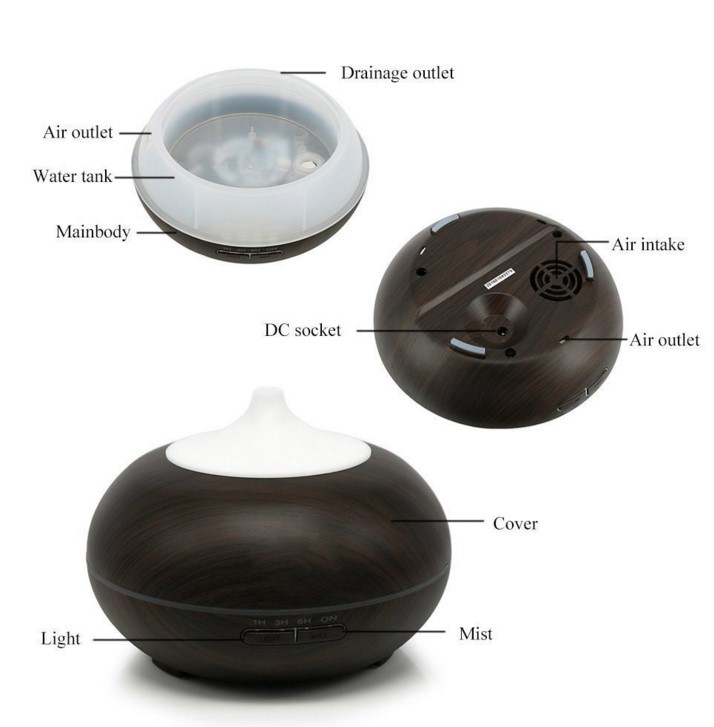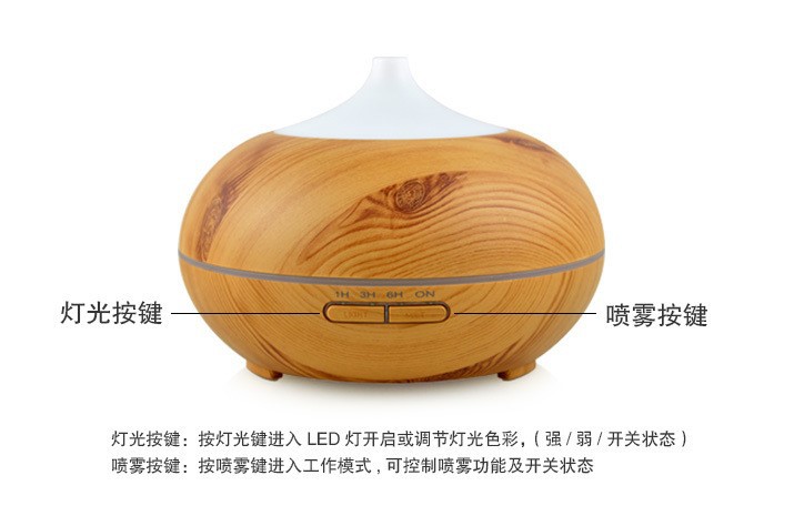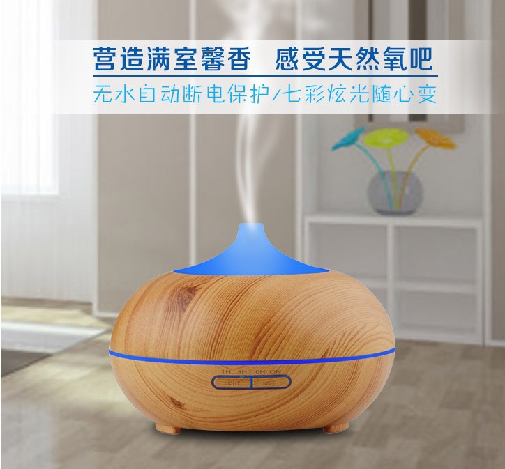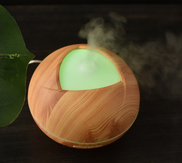 큰 둥근 공 나뭇결 홈 에센셜 오일 아로마 테라피 기계 500ML 자동 초음파 가습기 디퓨저