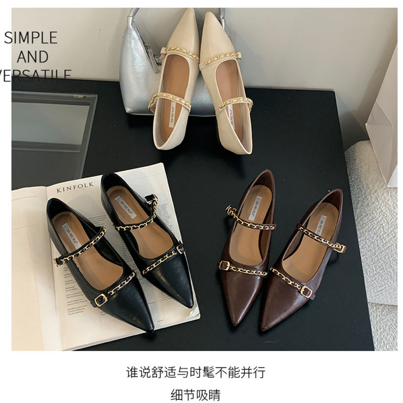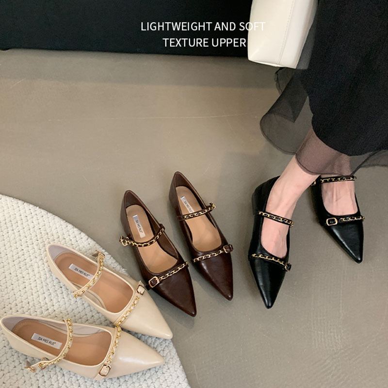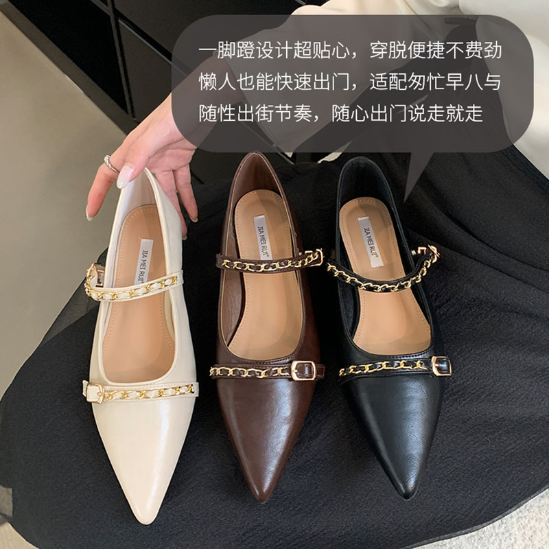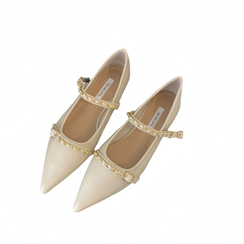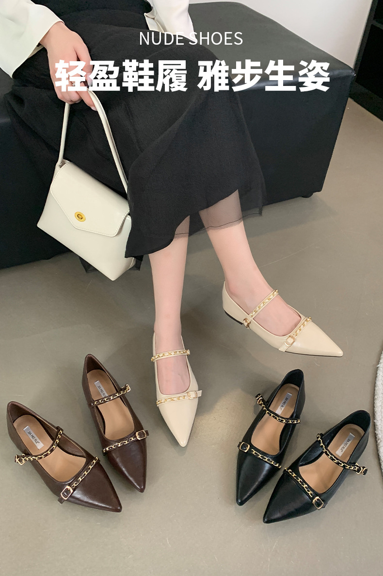 여성을위한 프랑스 플랫 포인티드 슈즈 2025 봄 여성을위한 새로운 금속 체인 다용도 메리 제인 슈즈