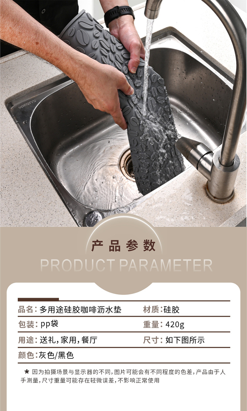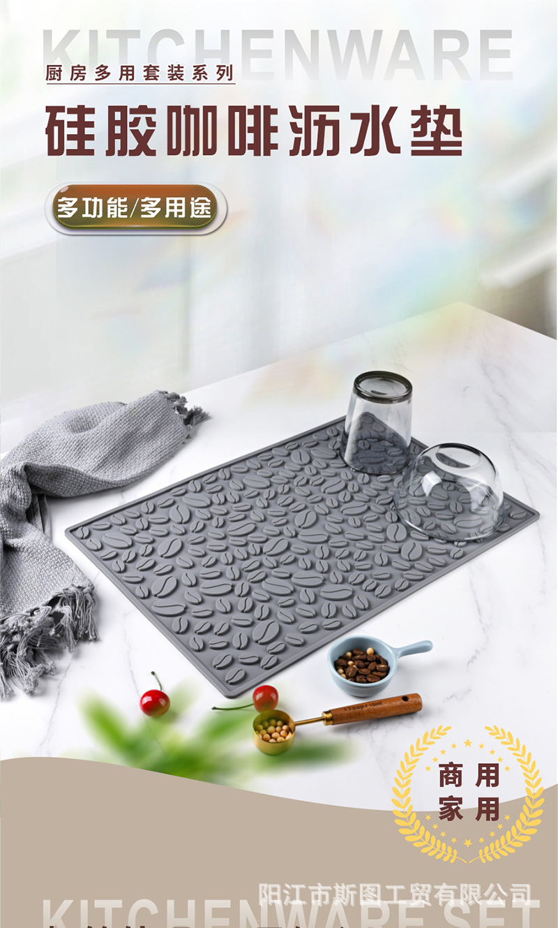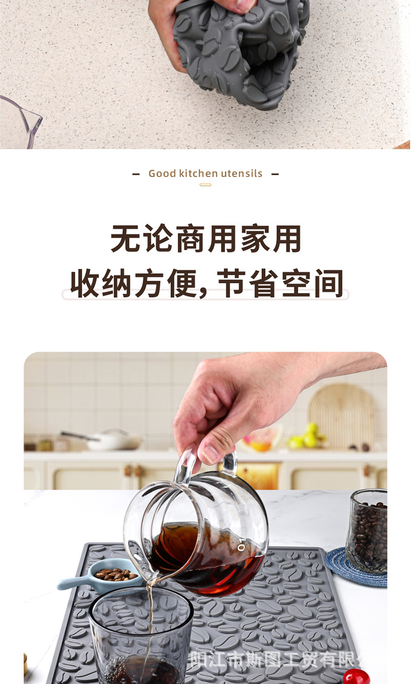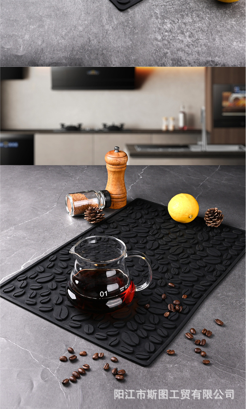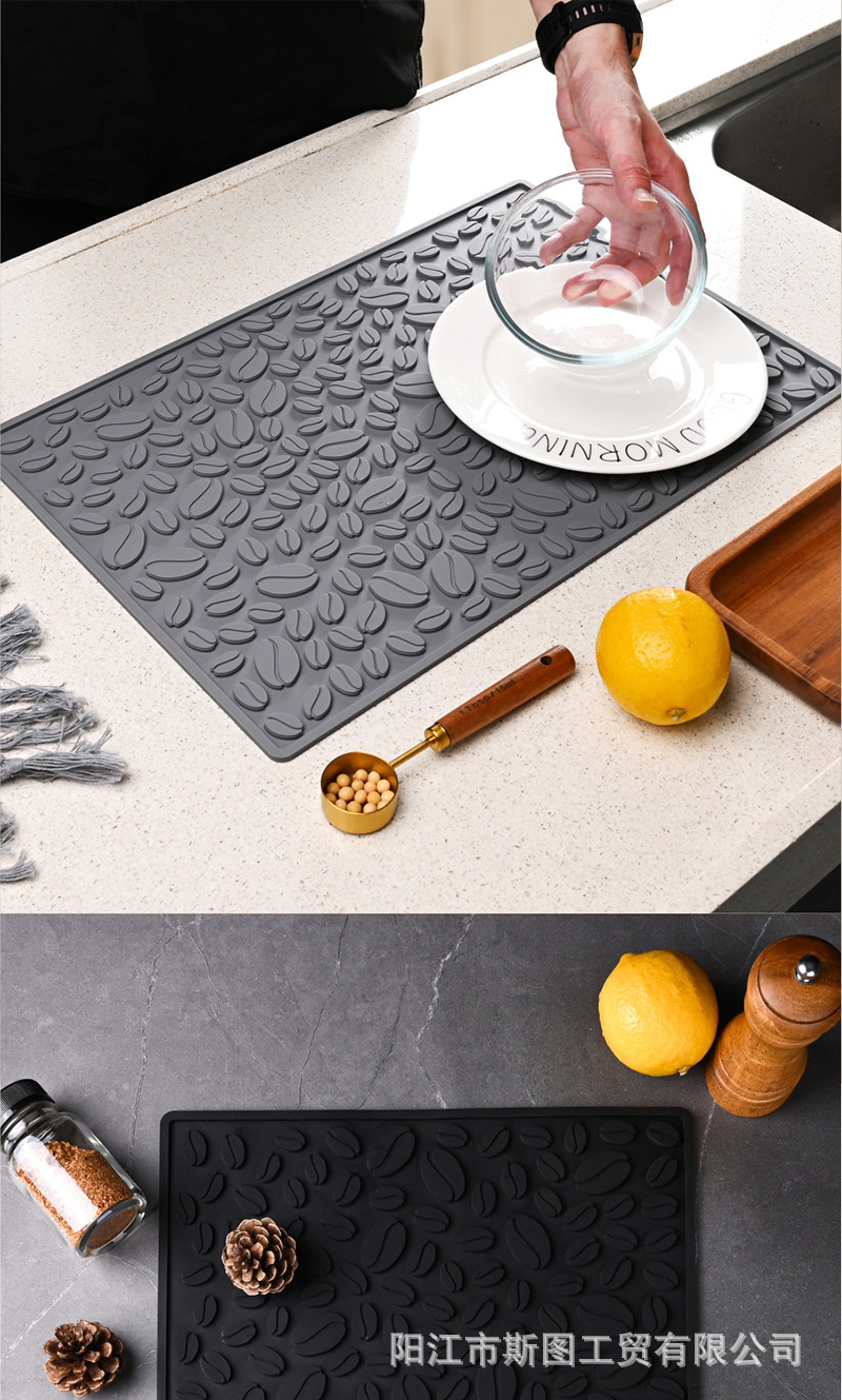 국경 간 실리콘 커피 머신 매트 배수 매트 주방 가정용 단열 냄비 매트 커피 바 매트 쉐이크 컵 미끄럼 방지 매트