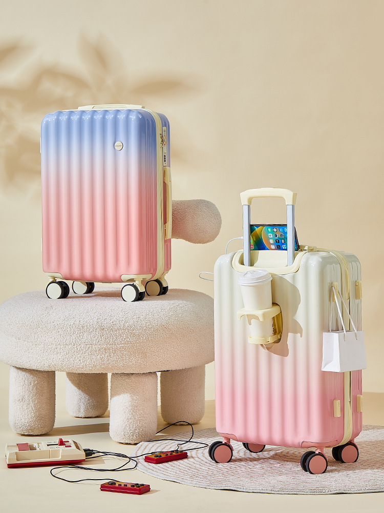 그라데이션 컬러 2025 신형 여행가방 여성용 24inch 웨딩박스 기내용 여행가방 학생용 지퍼 비밀번호 롤링 캐리어