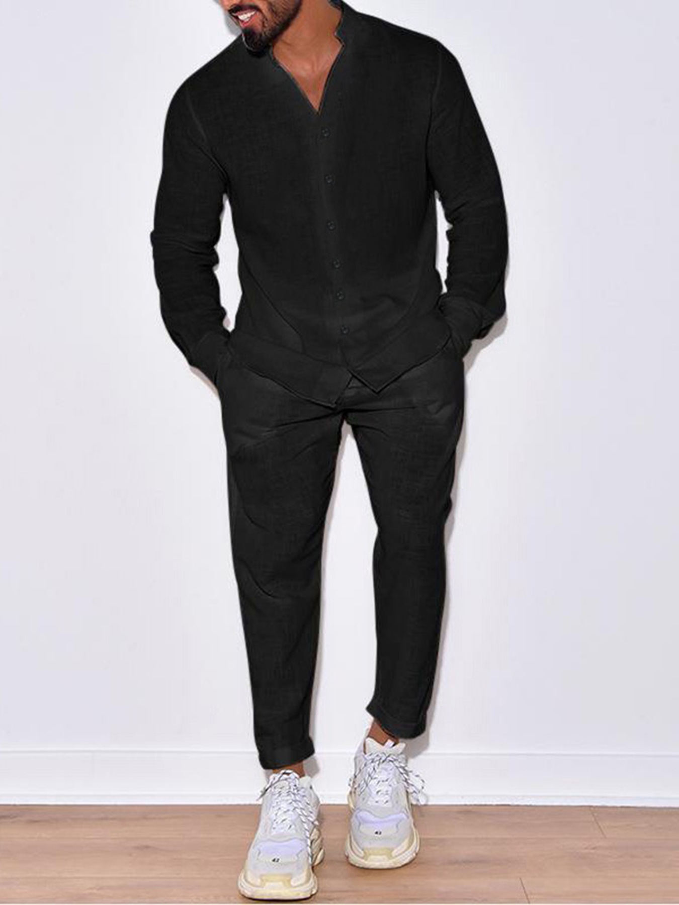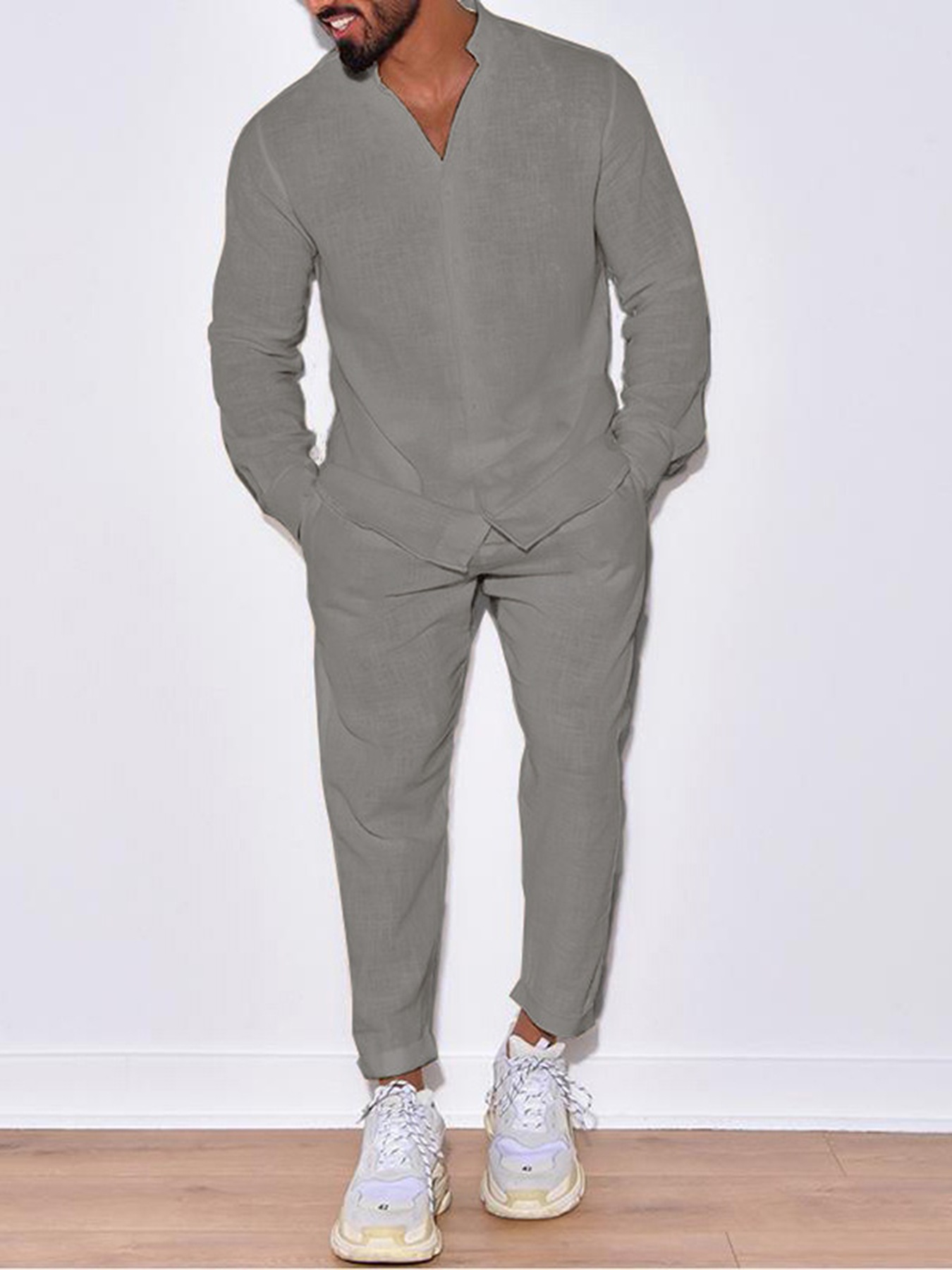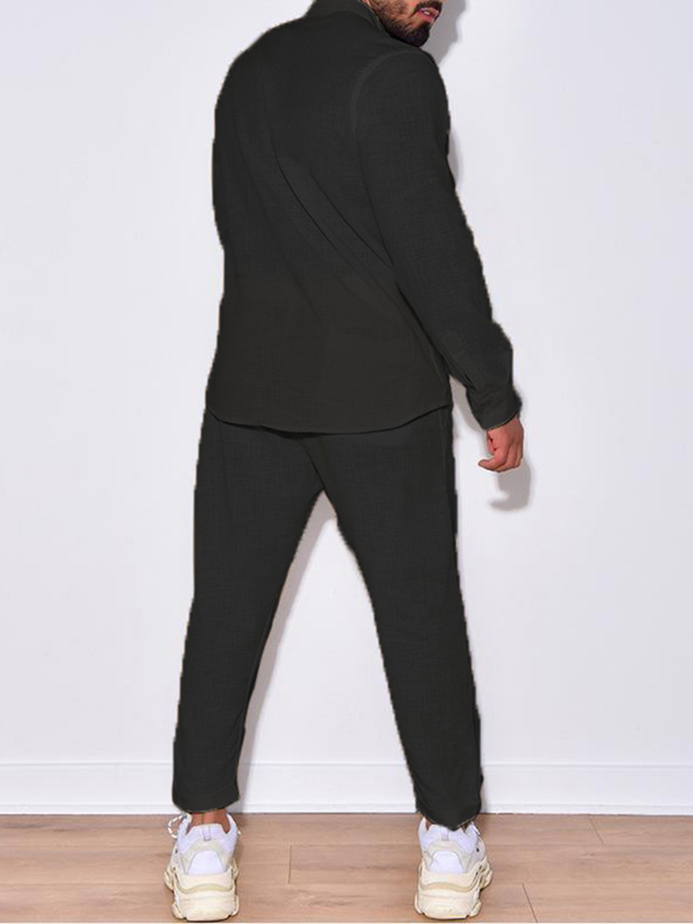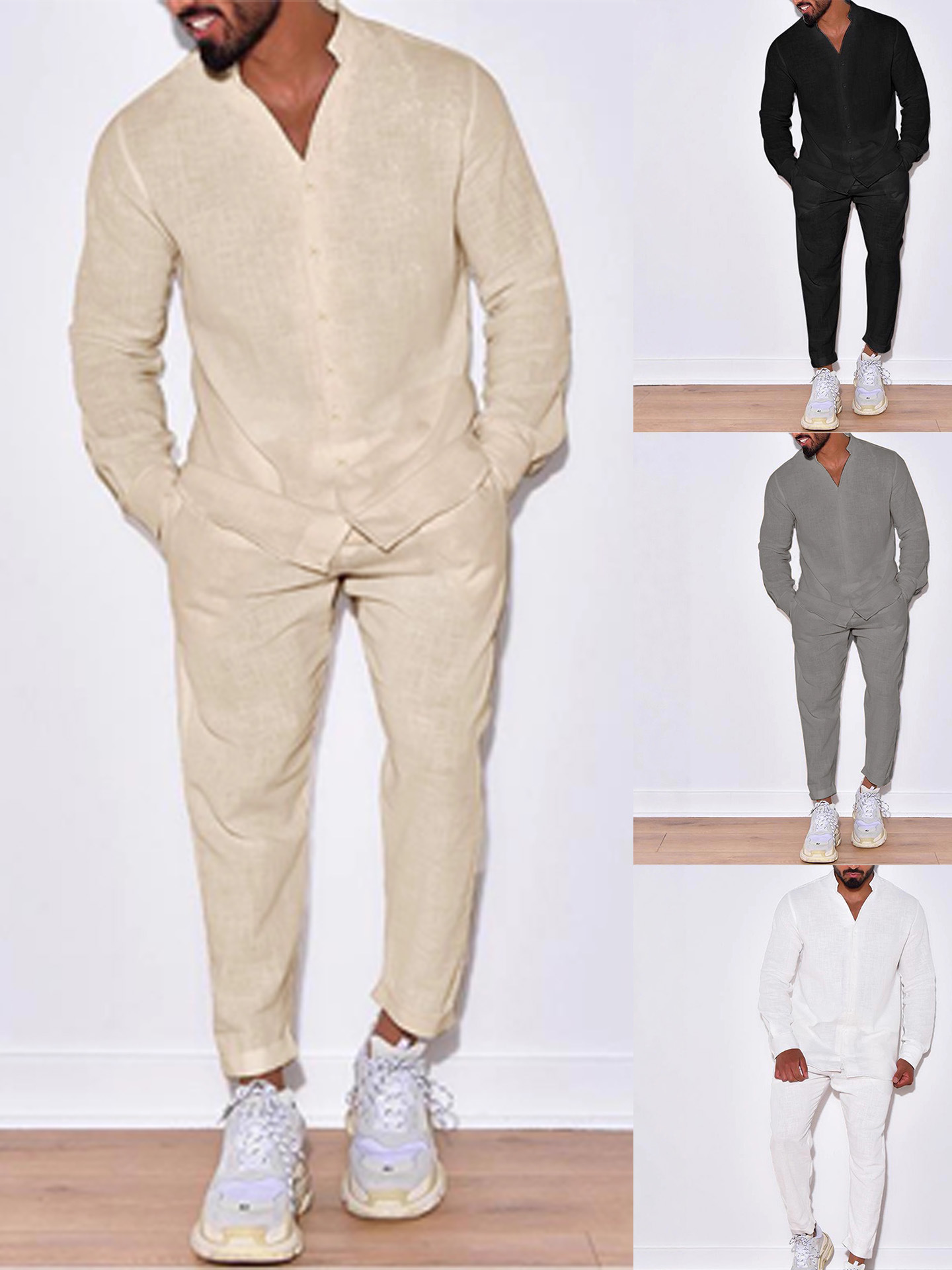 AliExpress 유럽 및 미국 해외배송 봄 가을 신상 남성 캐주얼 루즈핏 스포츠 면마 솔리드 컬러 긴팔 긴바지 세트