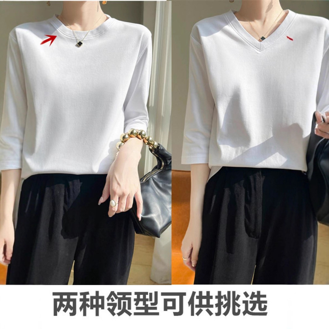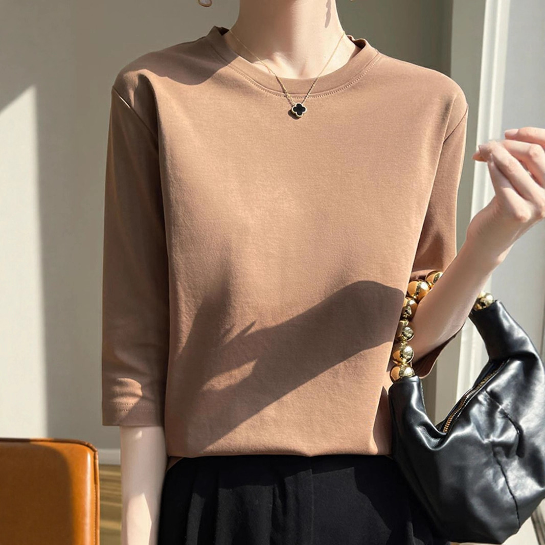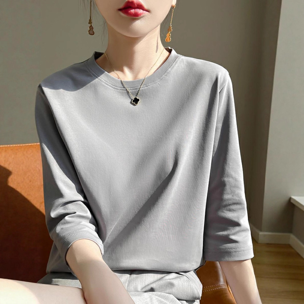 여성용 미드 슬리브 탑 하이 엔드 코튼 2025 새로운 루즈 여름 슈트, 얇은 티셔츠 포함