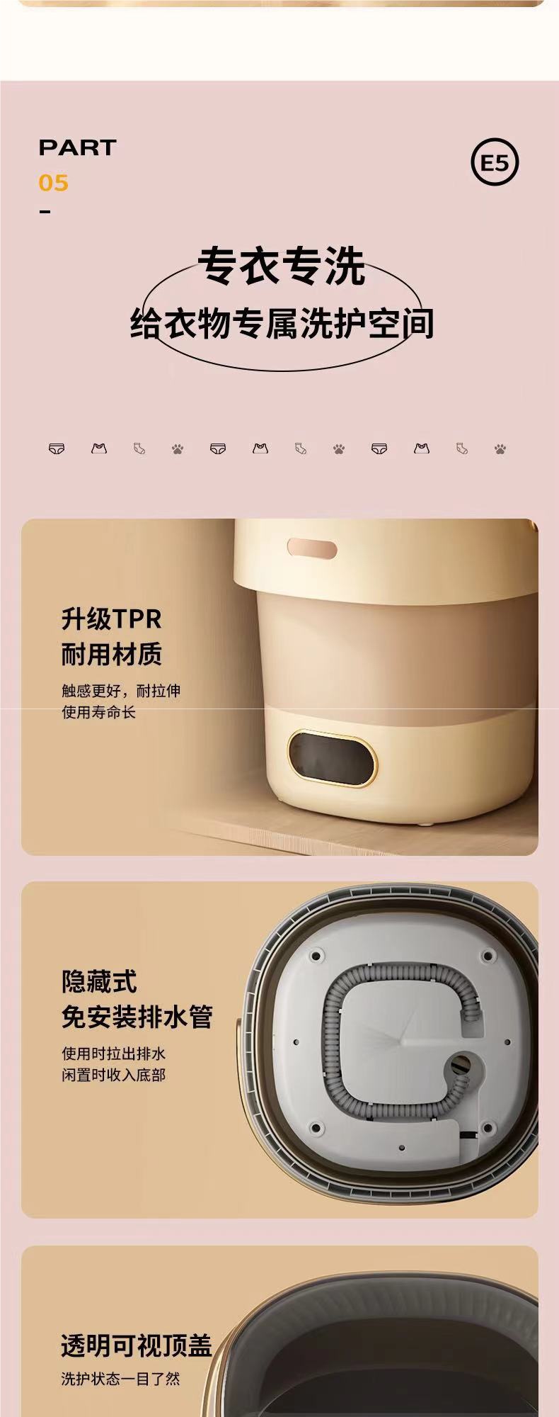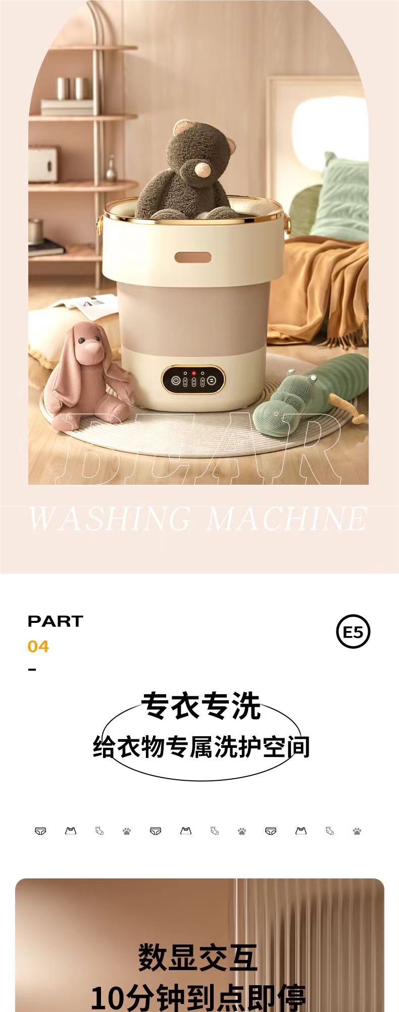 속옷세탁기, 완전 자동 세탁 및 탈착, 가정용 속옷 및 양말 전용 소형 미니세탁기, 휴대용