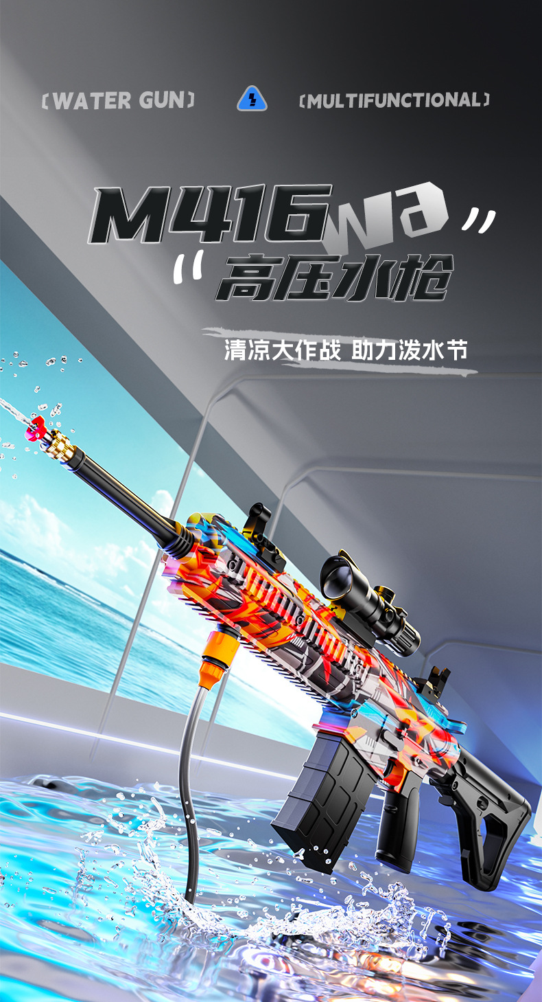 2025 새로운 M416 고압 강력한 홈 세차 셀프 서비스 세차 기계 부스터 워터 스프레이 건 시뮬레이션 전기 물총