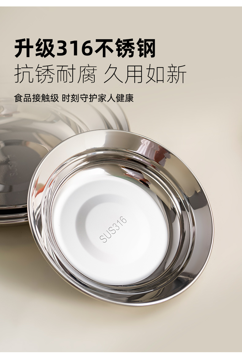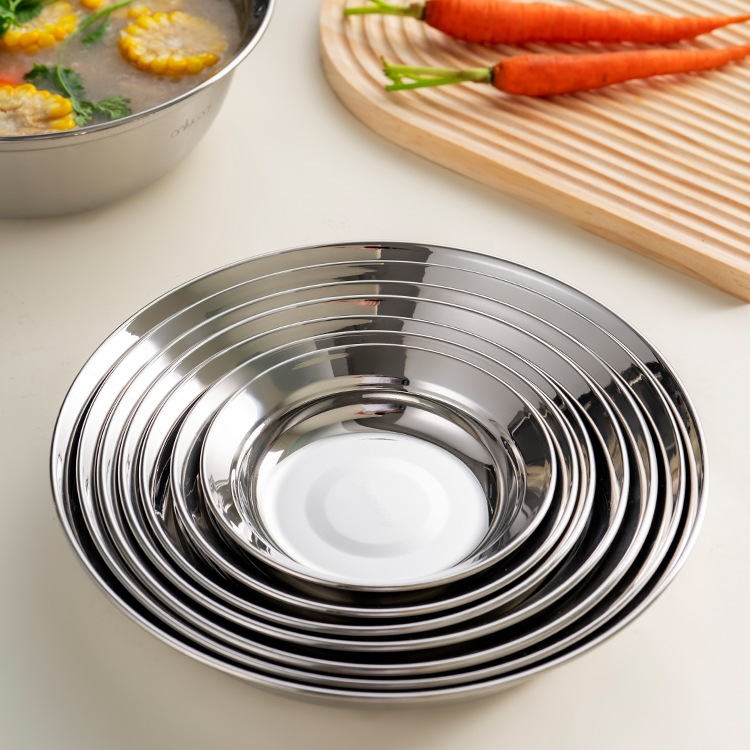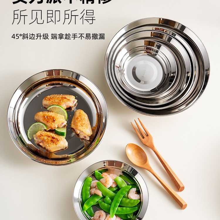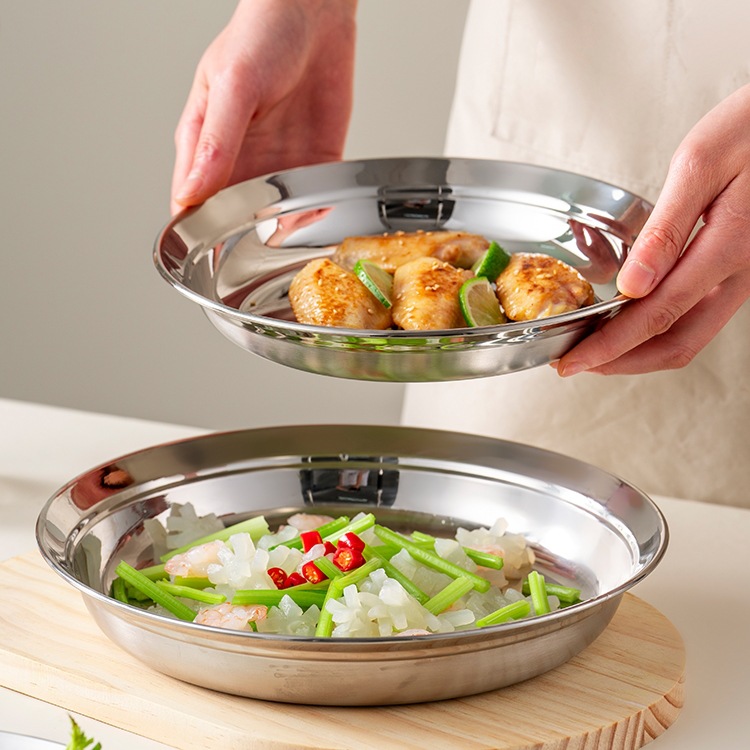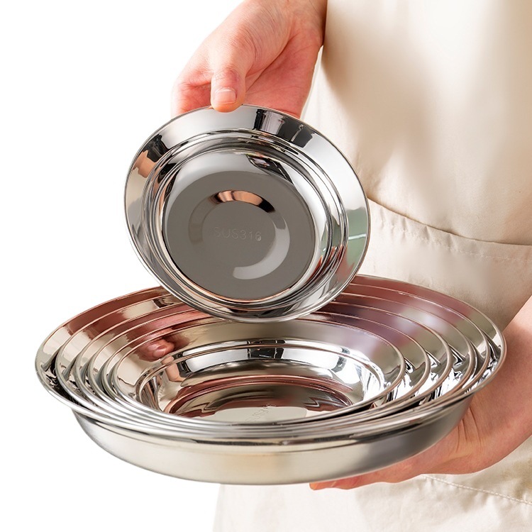 두꺼운 316 스테인레스 스틸 접시 식품 등급 접시 가정용 조리 접시 원형 접시 저녁 식사 접시 식기 없음