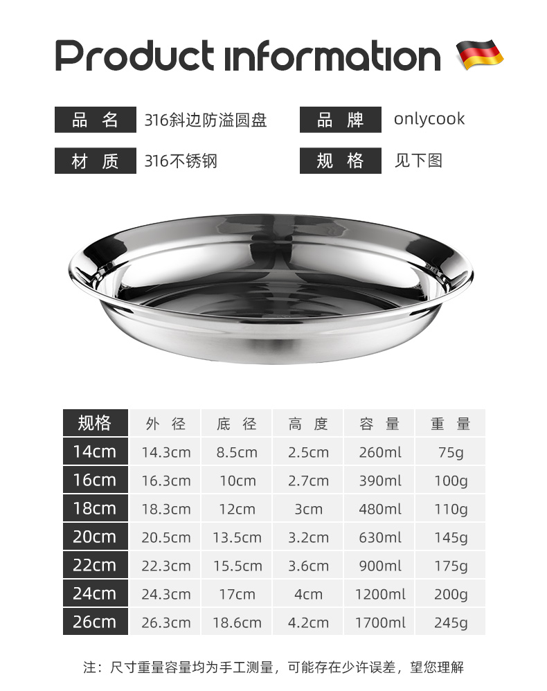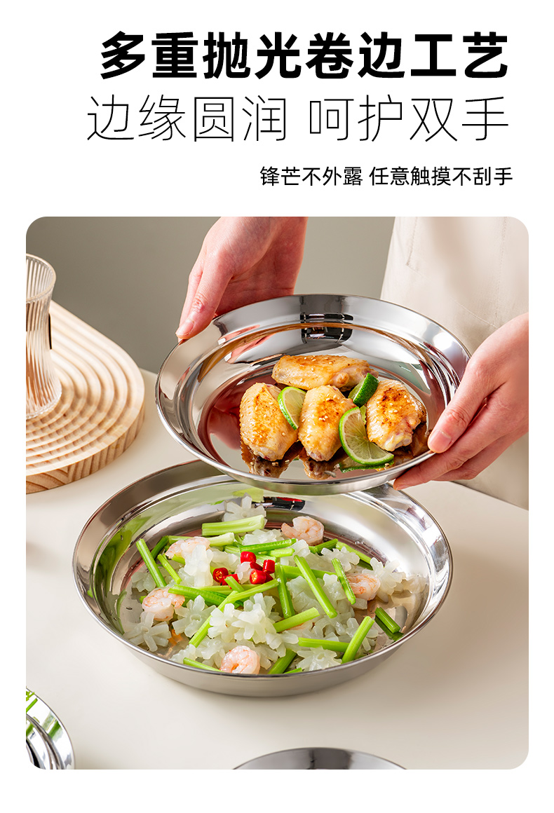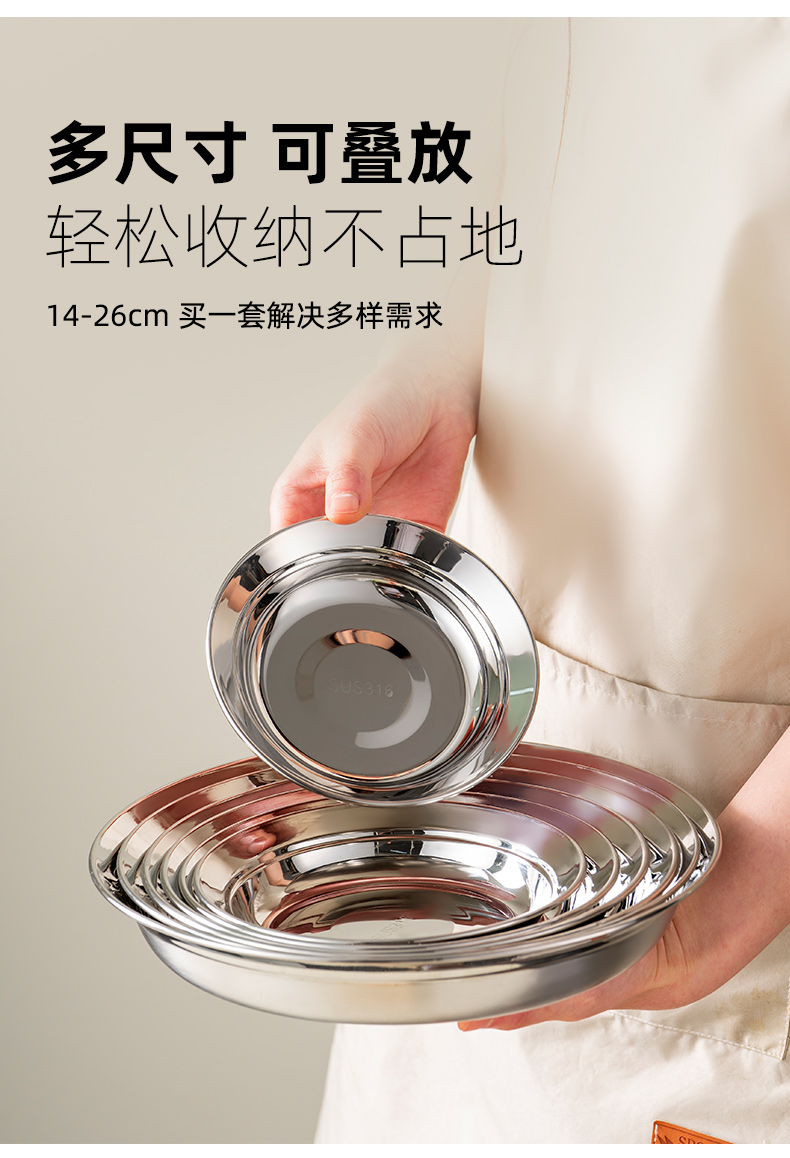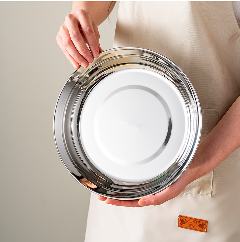 두꺼운 316 스테인레스 스틸 접시 식품 등급 접시 가정용 조리 접시 원형 접시 저녁 식사 접시 식기 없음