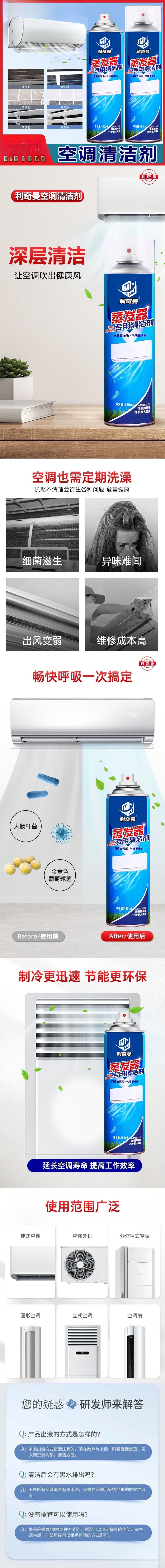 리치만 에어컨 정화 세척제 탈취, 오염 제거, 냄새 제거, 분해 없이 세척, 신선한 공기 거품 청소