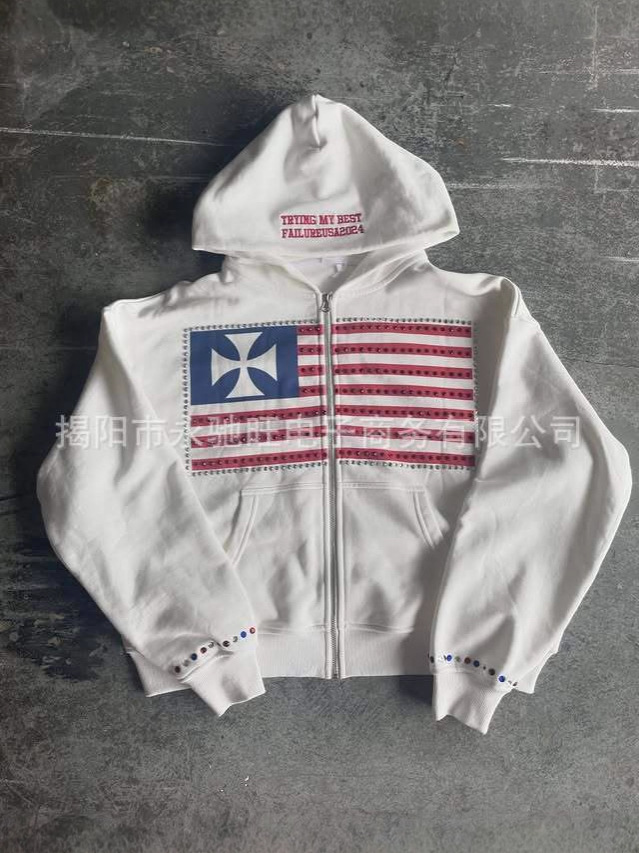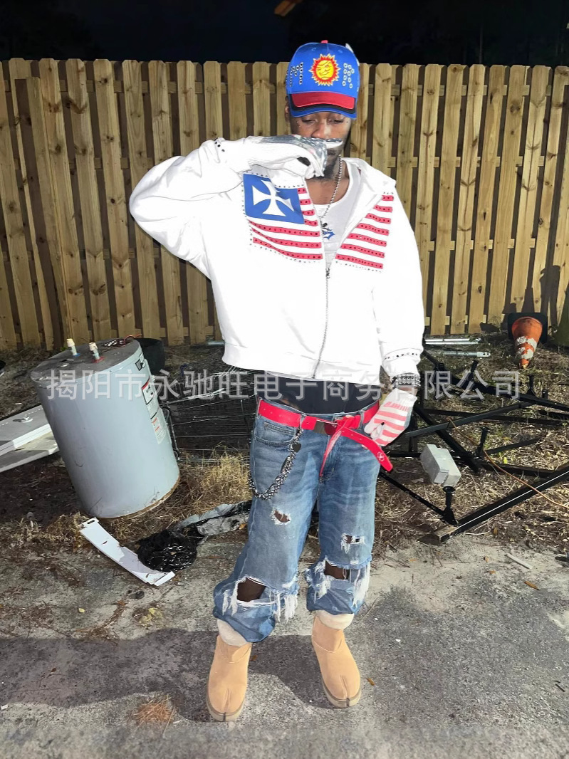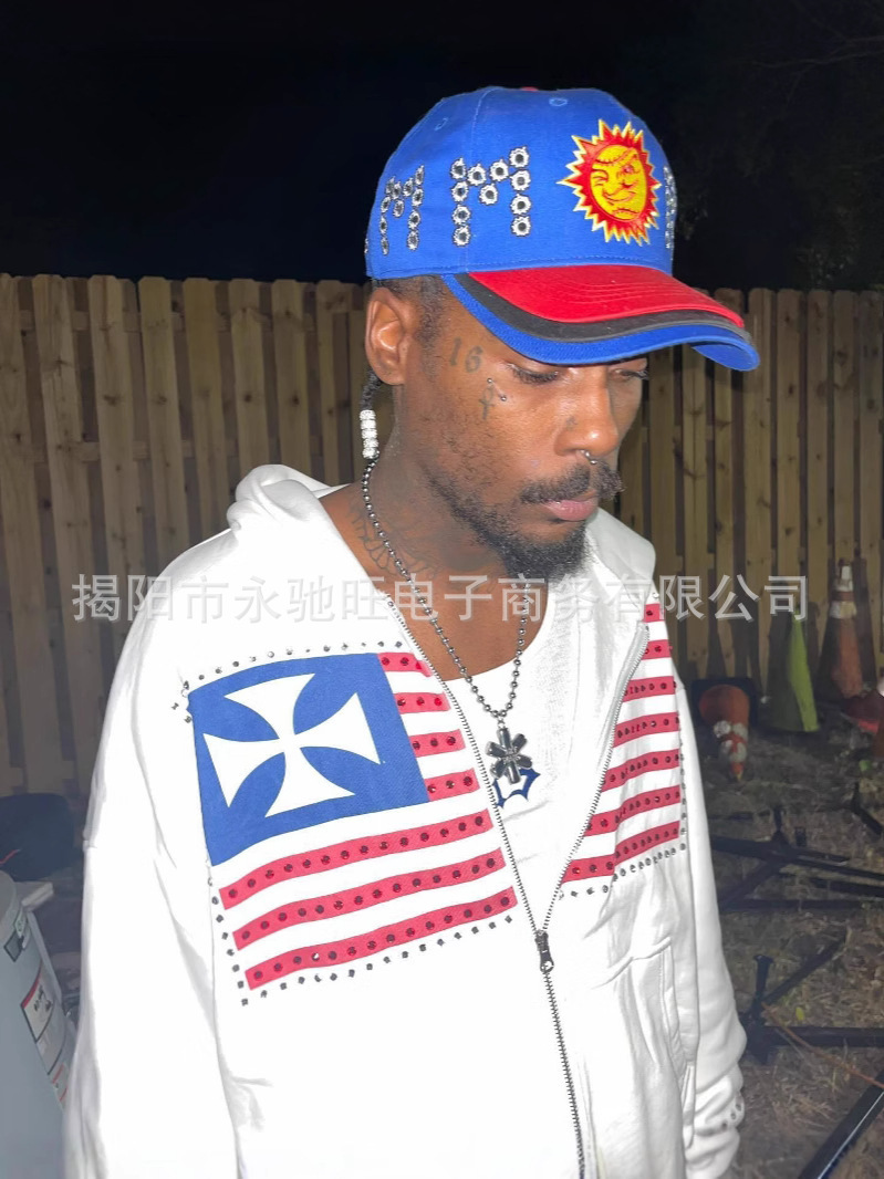 2026년 여름 신상 미국식 워싱 개성 패턴 긴팔 후드티 일본 스타일 트렌디 고급 재킷 남성용