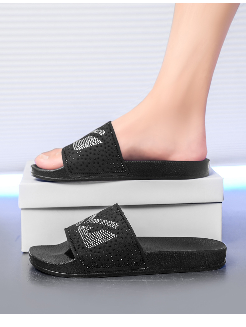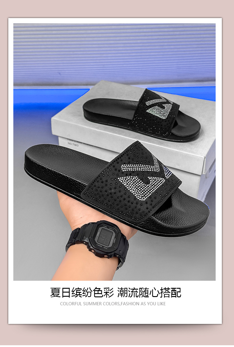 남성용 슬리퍼 여름 클래식 럭셔리 브랜드 다이아몬드 트렌디 남성용 아우터 플랫 슬리퍼 캐주얼 통기성 비치 슬리퍼