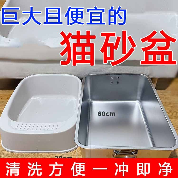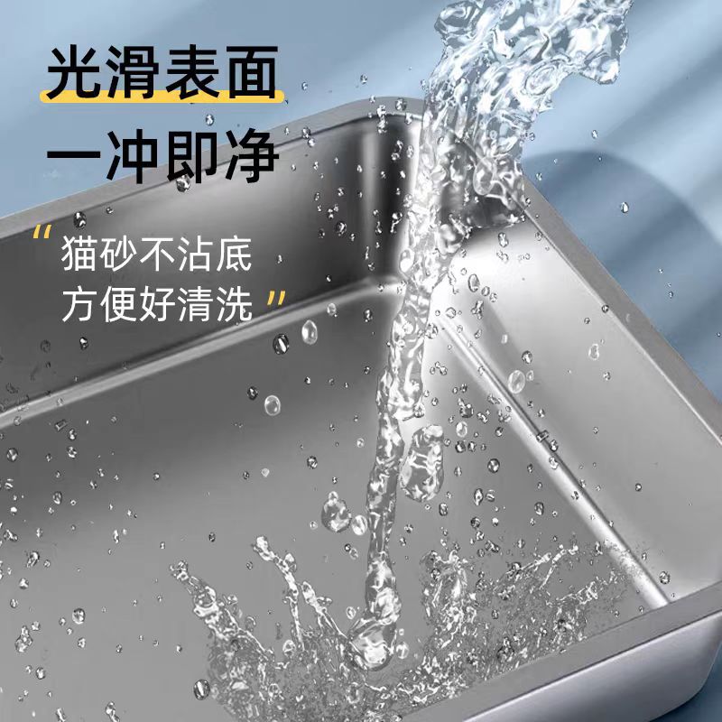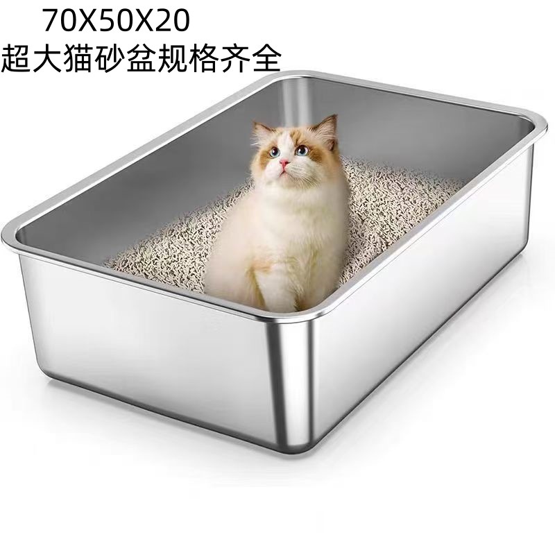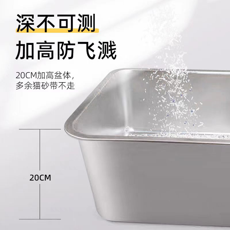 스테인레스 스틸 고양이 쓰레기통, 물 튀김 방지 및 냄새 방지, 대형 모델, 깊은 개방형 고양이 화장실, 고양이 용품 XXL
