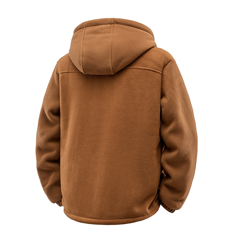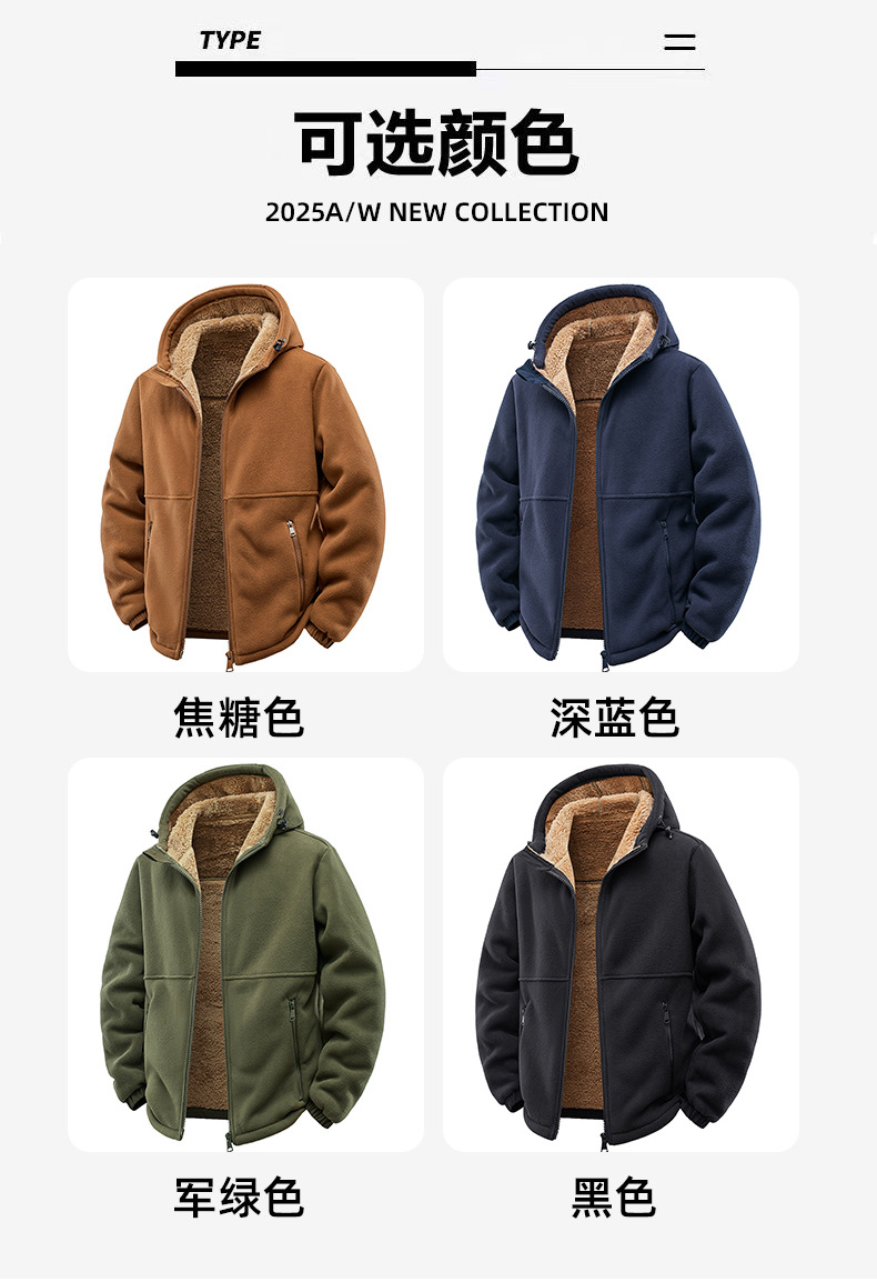 2025 가을, 겨울 크로스 보더 유럽과 미국 야외 스포츠 양털 남성 운동복 플러스 벨벳 두꺼운 폴라 플리스 커플 코트 모자