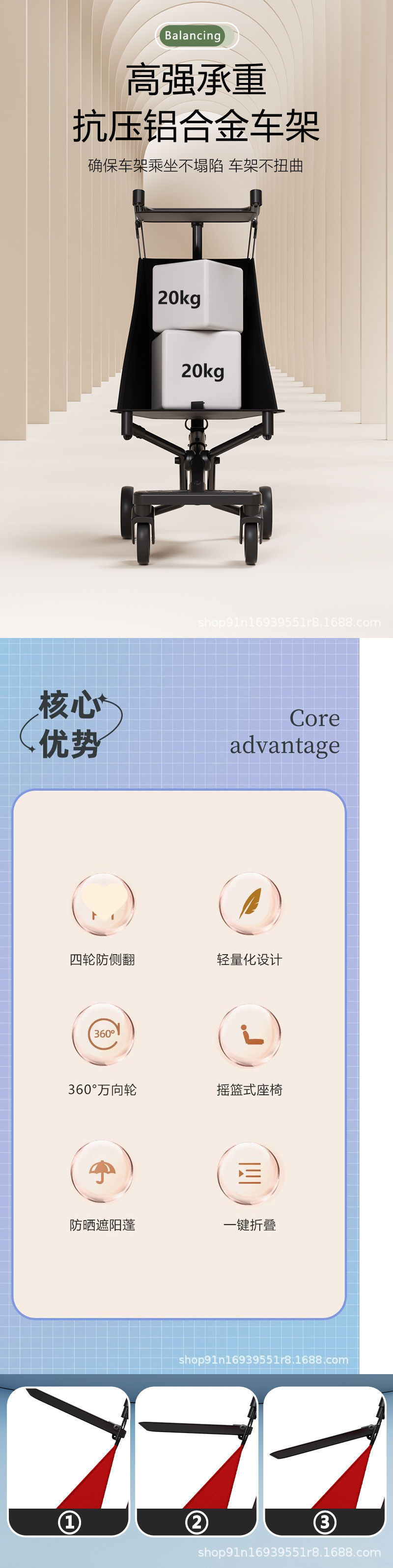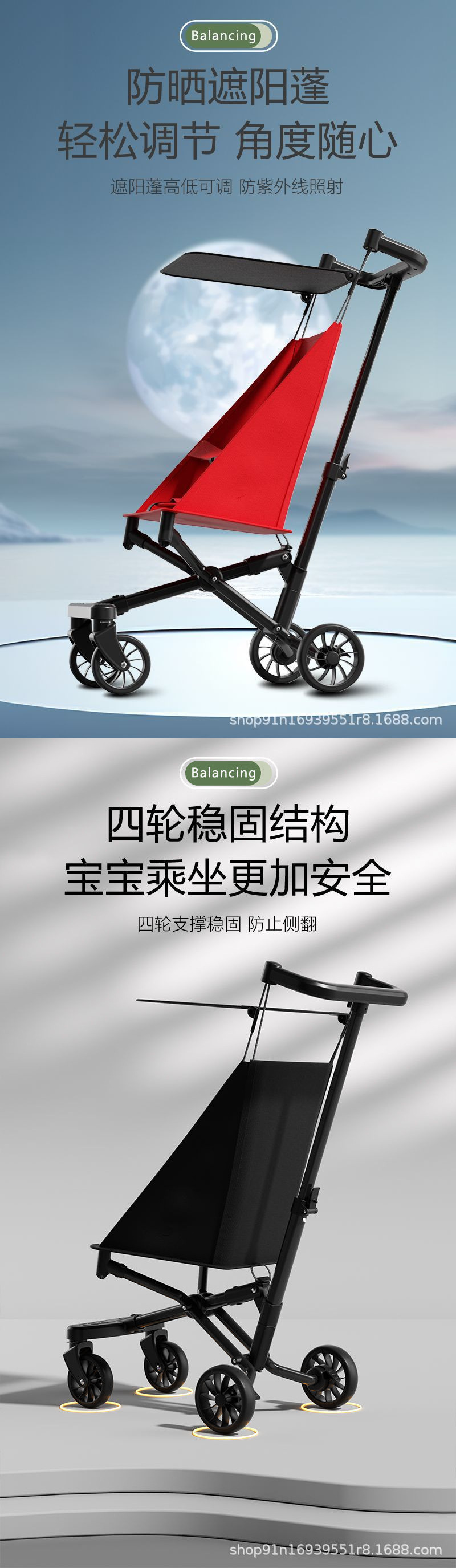 알루미늄 합금 포켓 유모차 - 1세 아기 유모차 원클릭 접이식 범용 무음 휠 수출