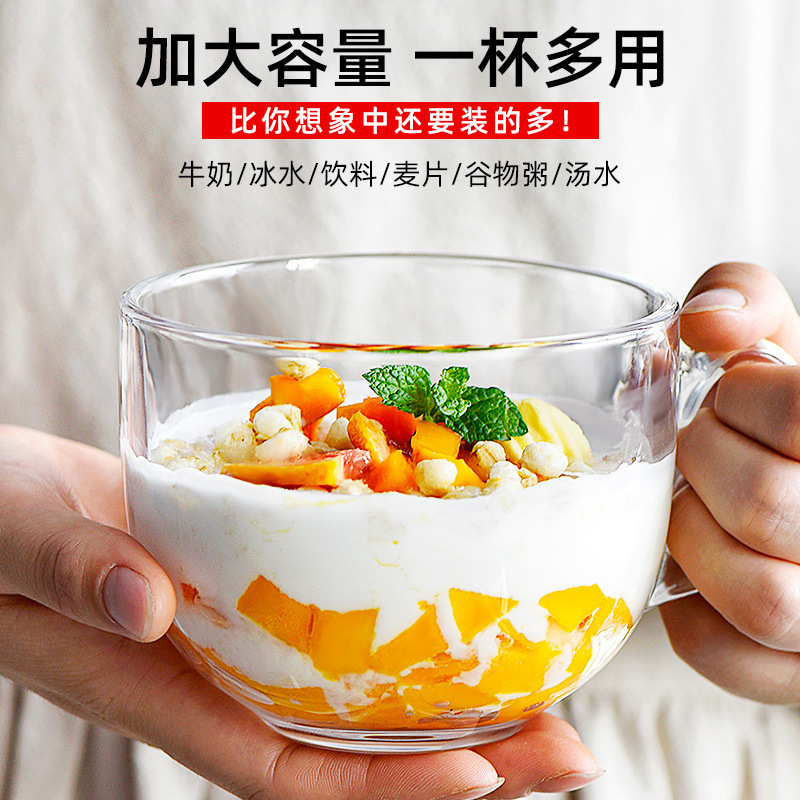 大容量玻璃杯燕麦牛奶早餐杯子冲泡麦片碗带把水杯带盖勺女咖啡杯