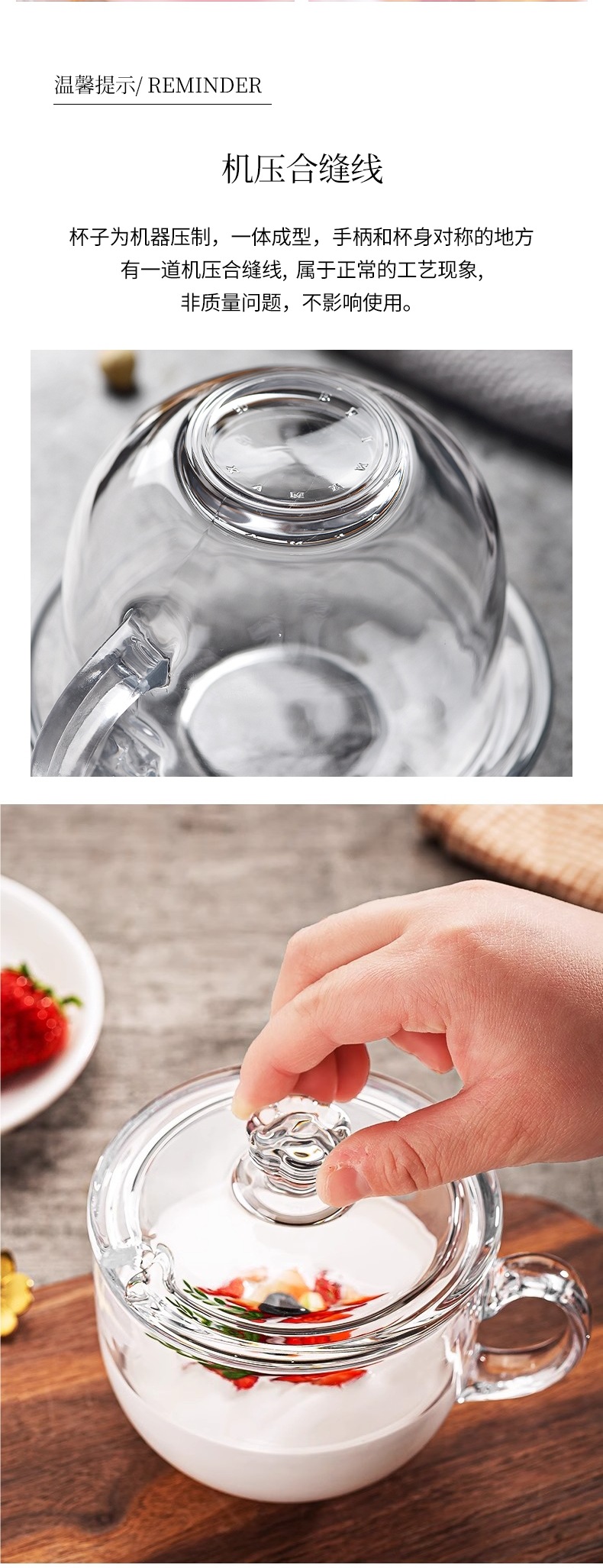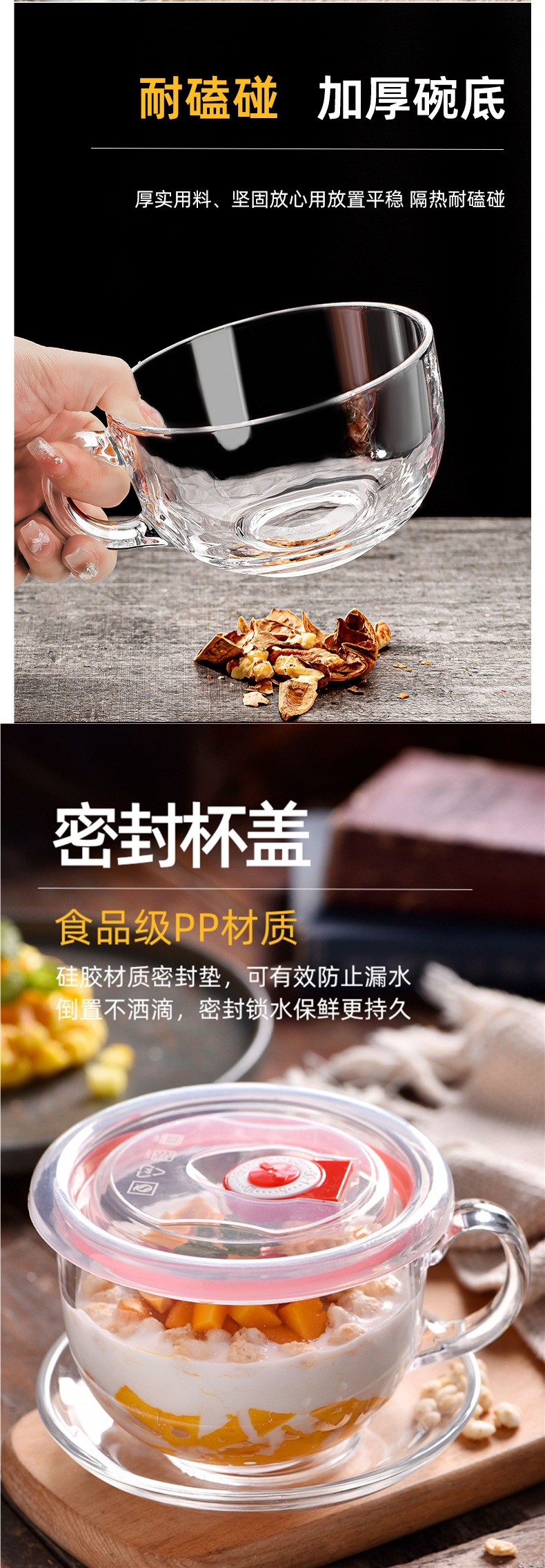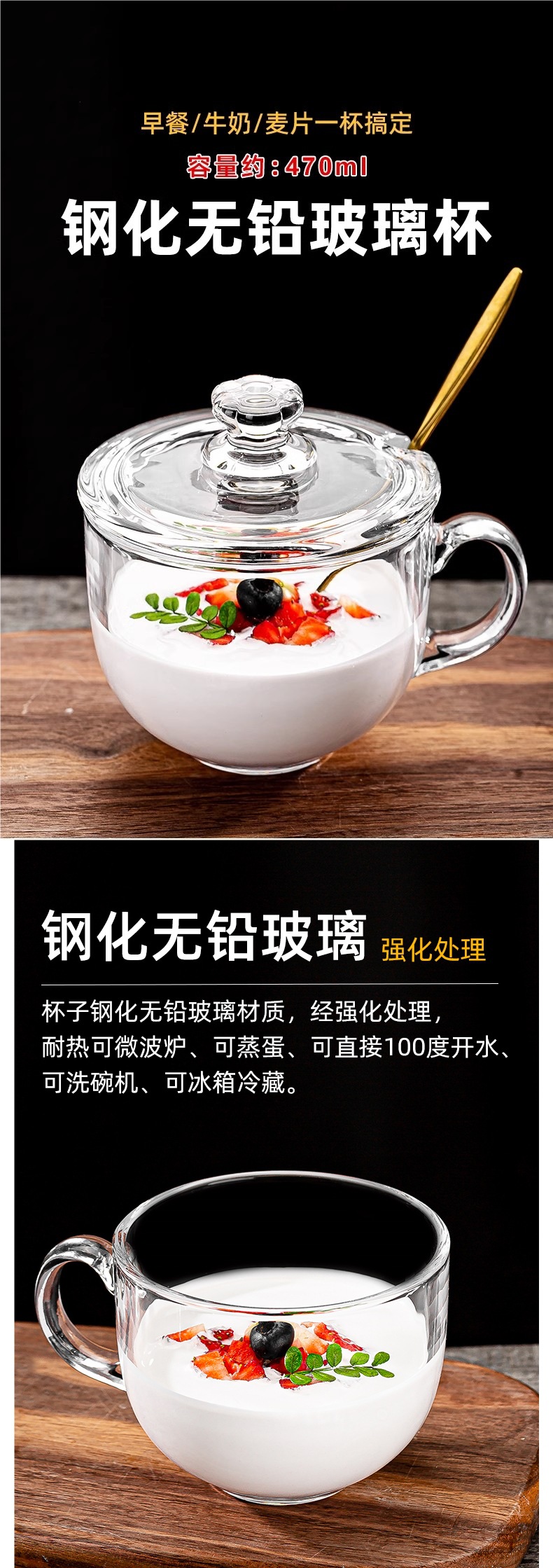 【无铅加厚】470ml早餐杯 玻璃盖