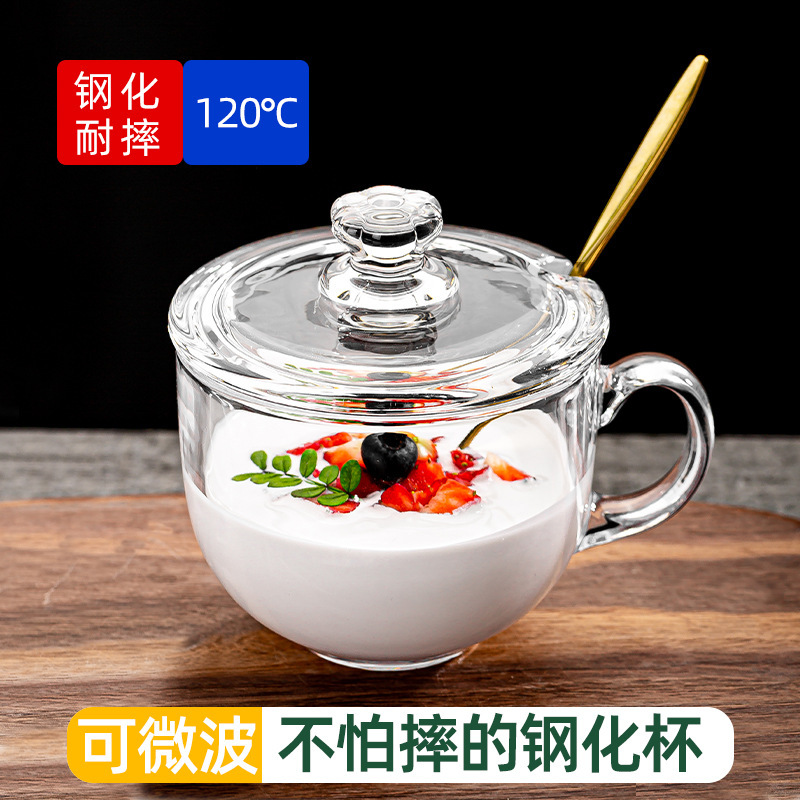 【钢化防摔】550ml早餐杯 玻璃盖