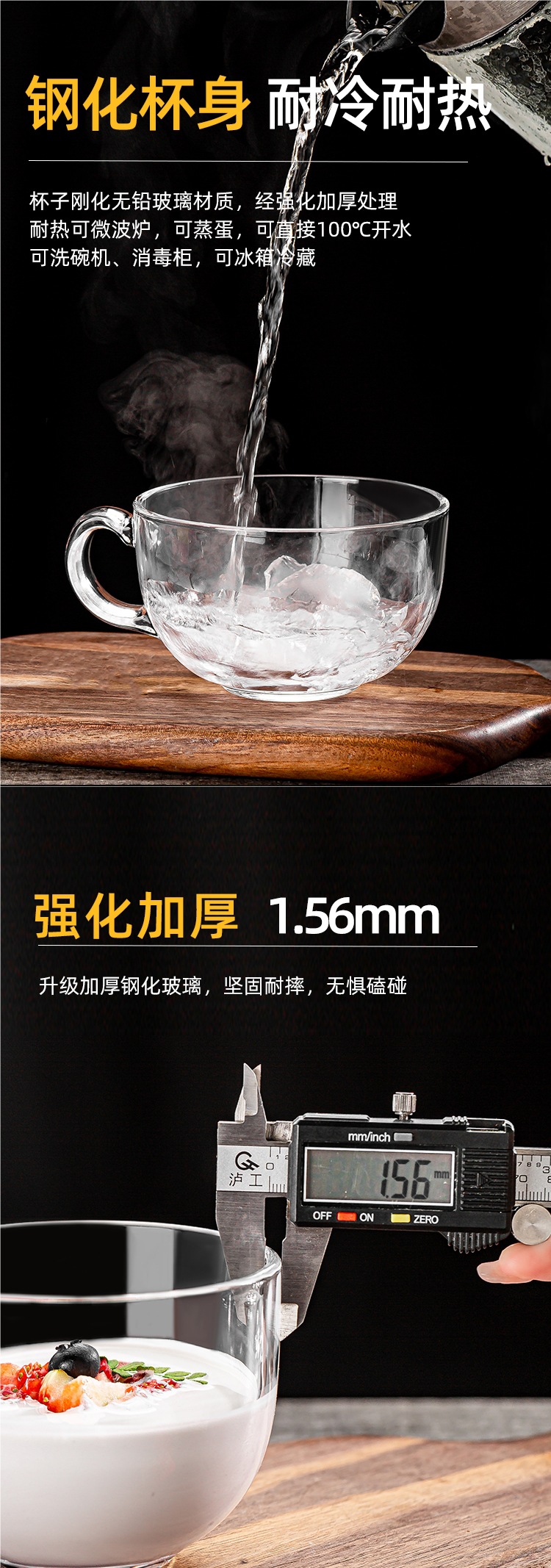 【钢化防摔】470ml早餐杯 玻璃盖