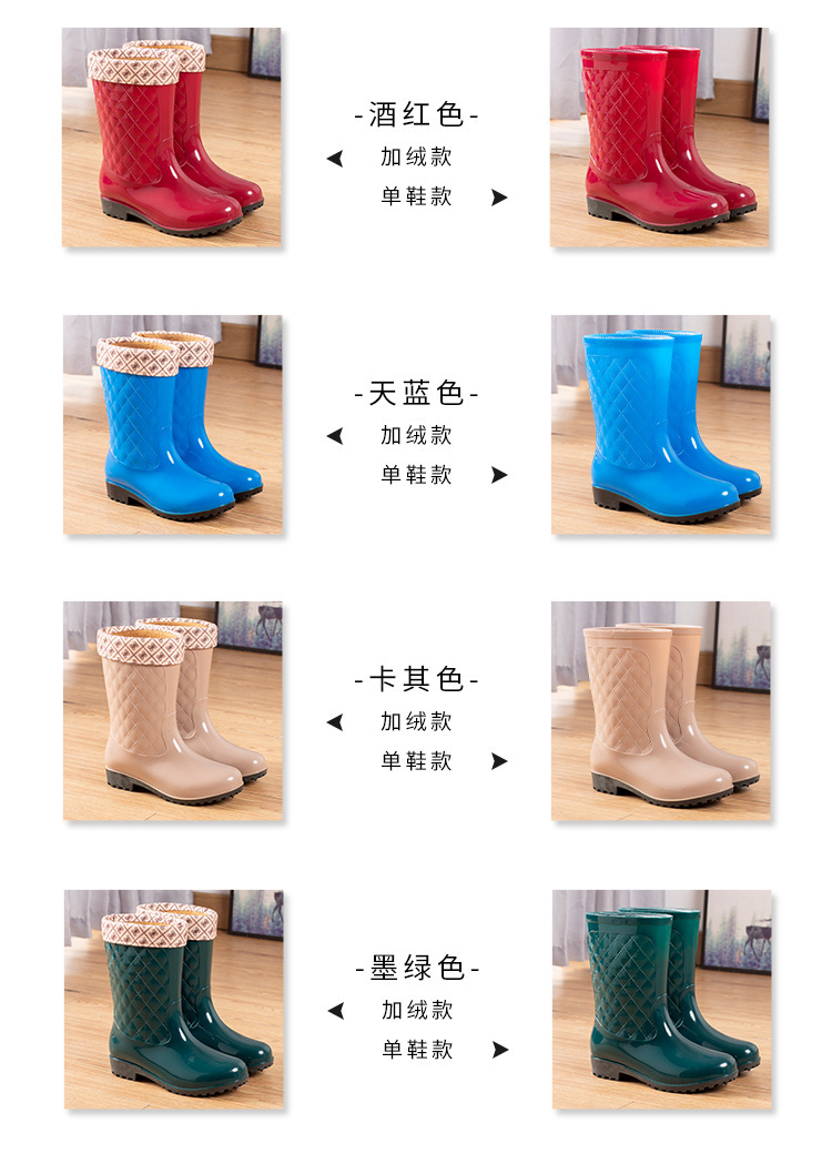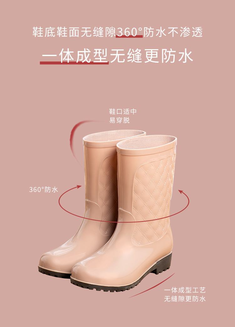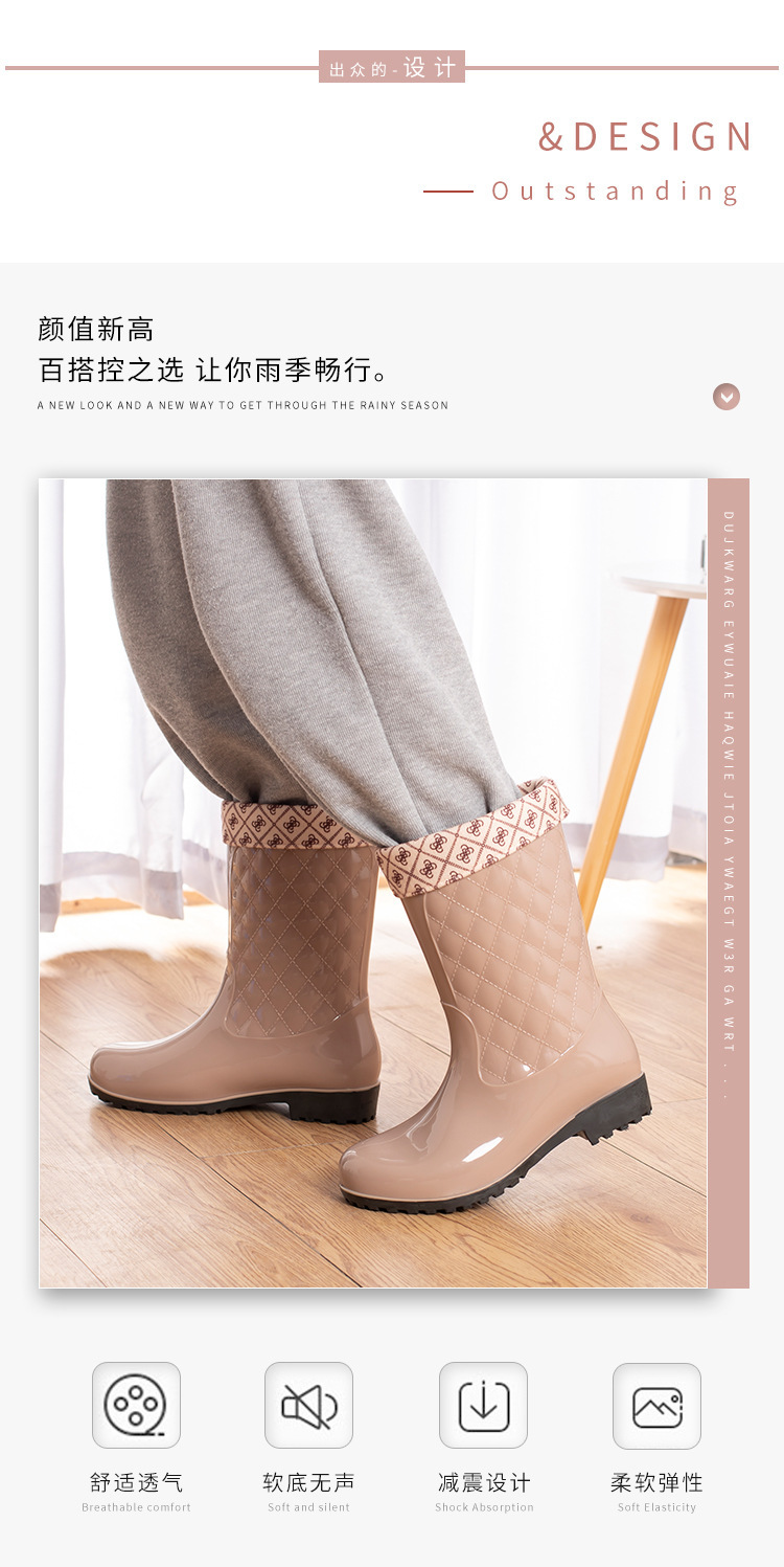 26년만에 새로 출시된 여성용 패셔너블한 레인부츠, 내마모성, 미끄럼 방지, 편안하고 통기성이 좋은 PVC 플라스틱 레인부츠, 워터슈즈