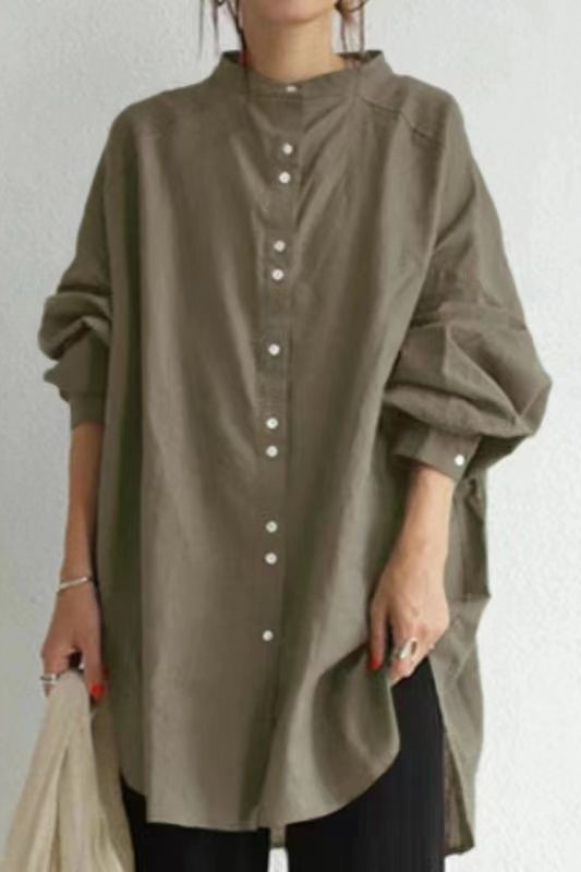 새로운 슬림 여성 솔리드 컬러 느슨한 새 셔츠 캐주얼 컬러 바닥 셔츠 여성 복고풍 슬리브