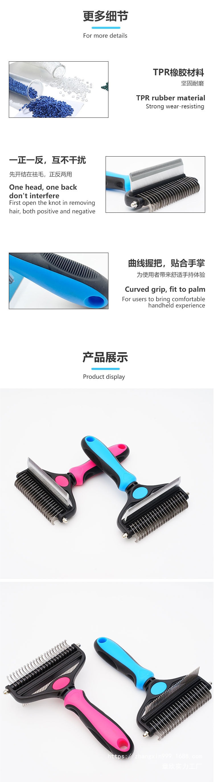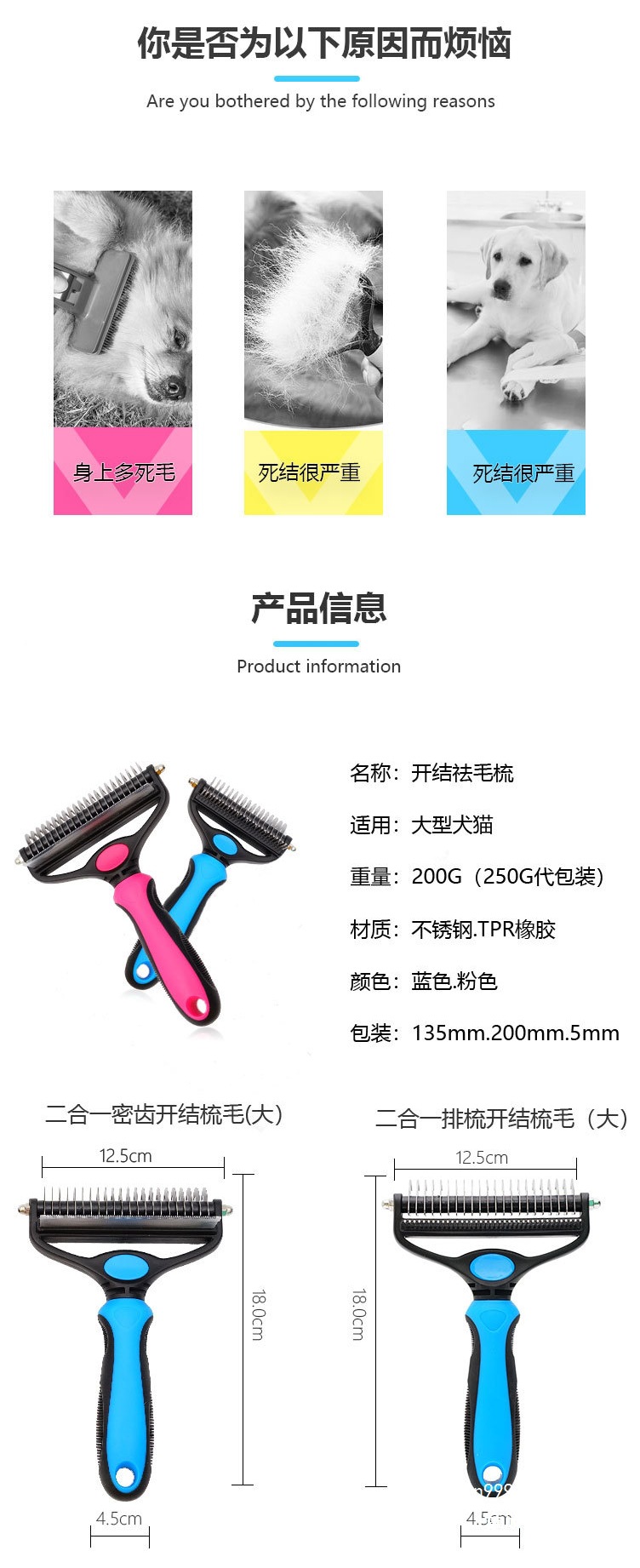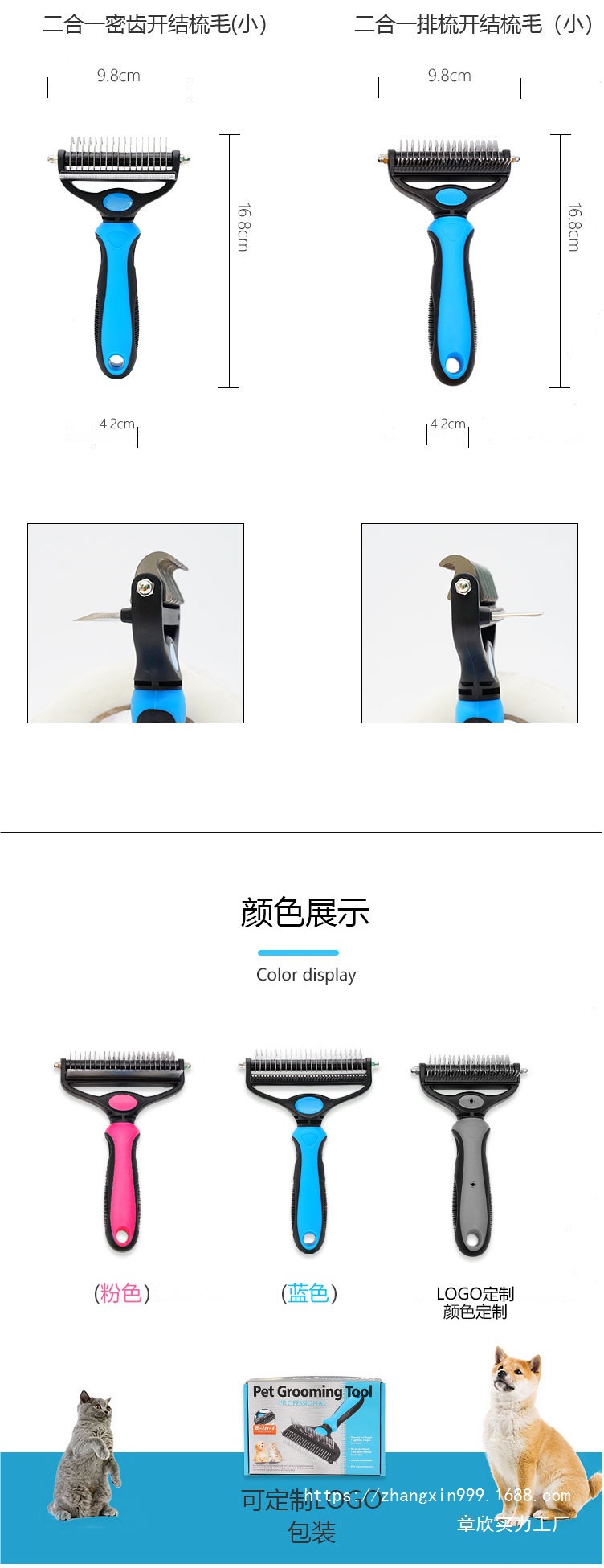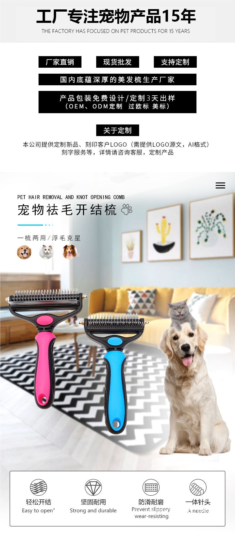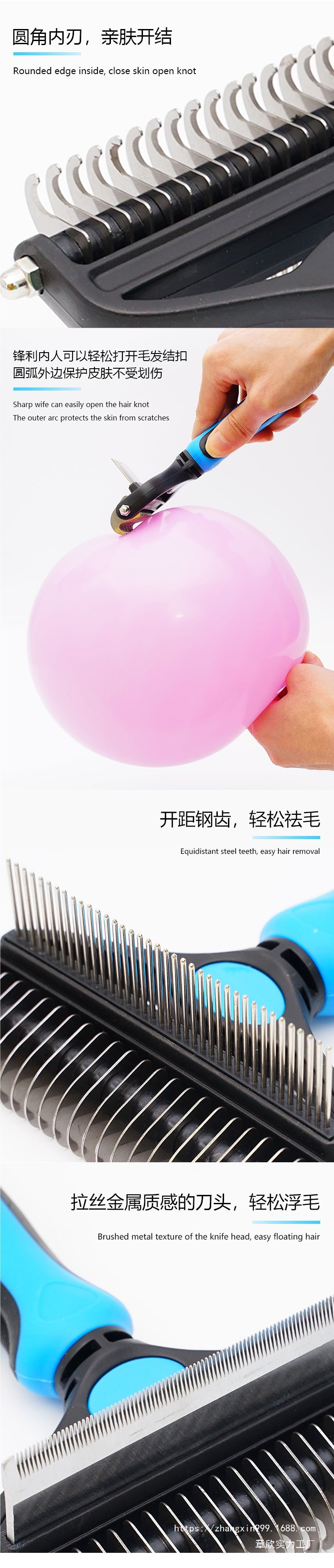 跨境宠物开结梳狗狗梳子梳毛器狗毛梳用具猫毛梳清洁美容用品