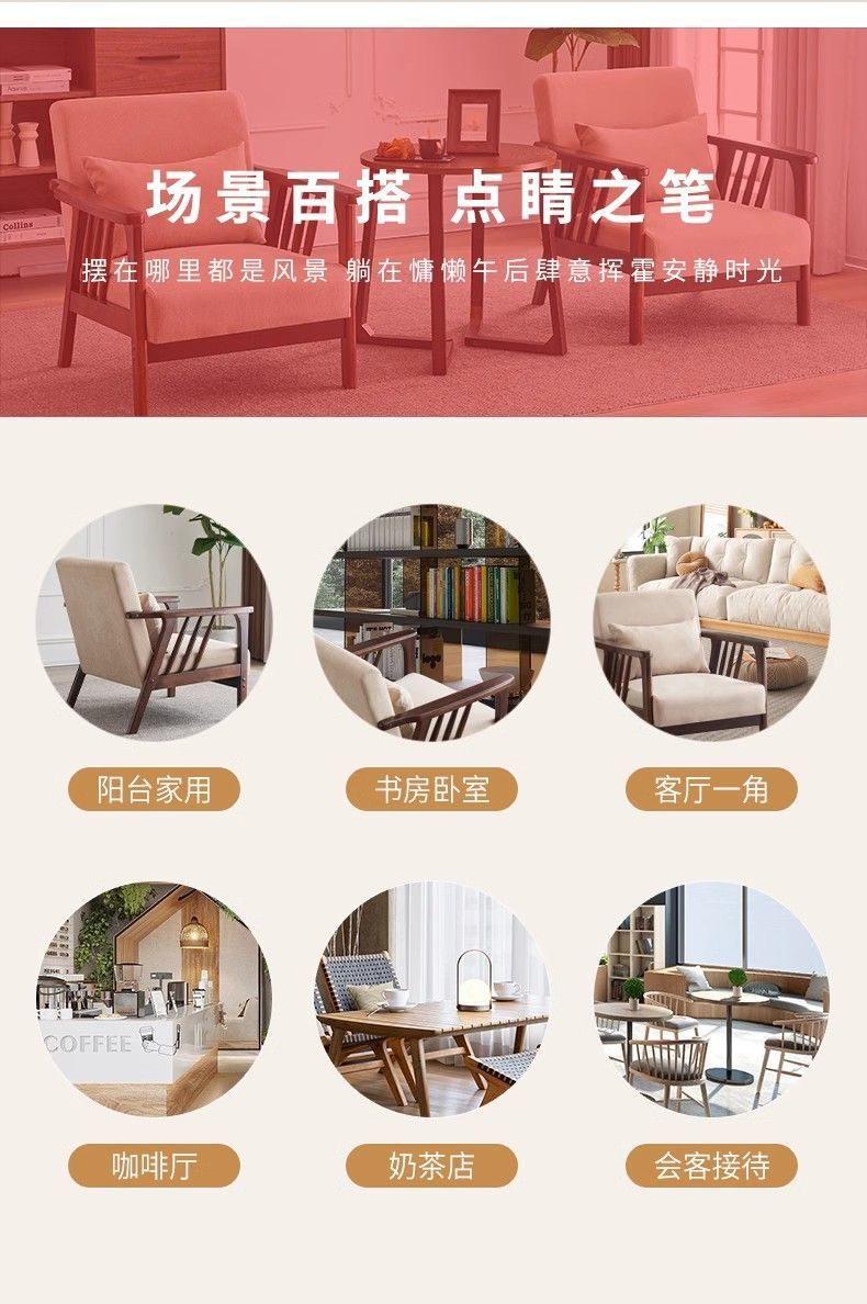 1인용 소파 의자 원목 레저 의자 모던 심플 거실 발코니 홈스테이 호텔 테이블과 의자 일본식 홈