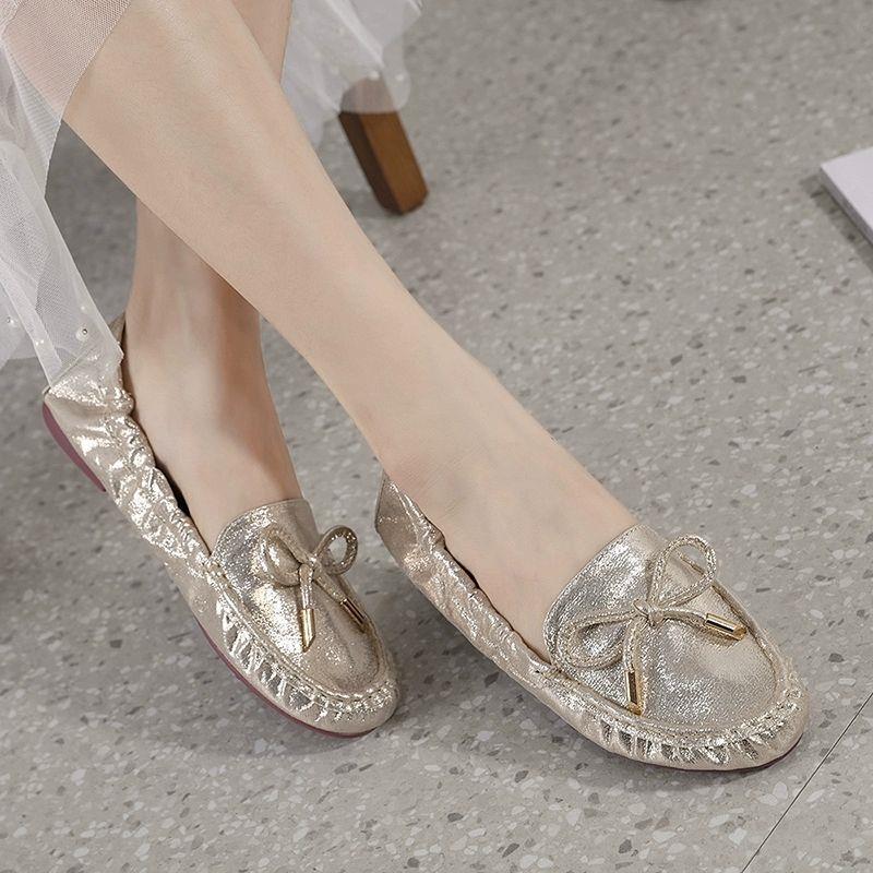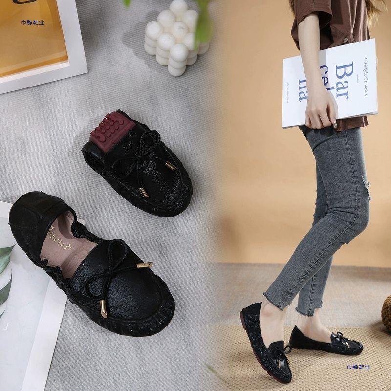 여성을위한 부드러운 밑창 비니 신발 2025 새로운 봄, 여름 임산부를위한 얕은 입 플랫 신발 미끄럼 방지 슬립 온 로퍼