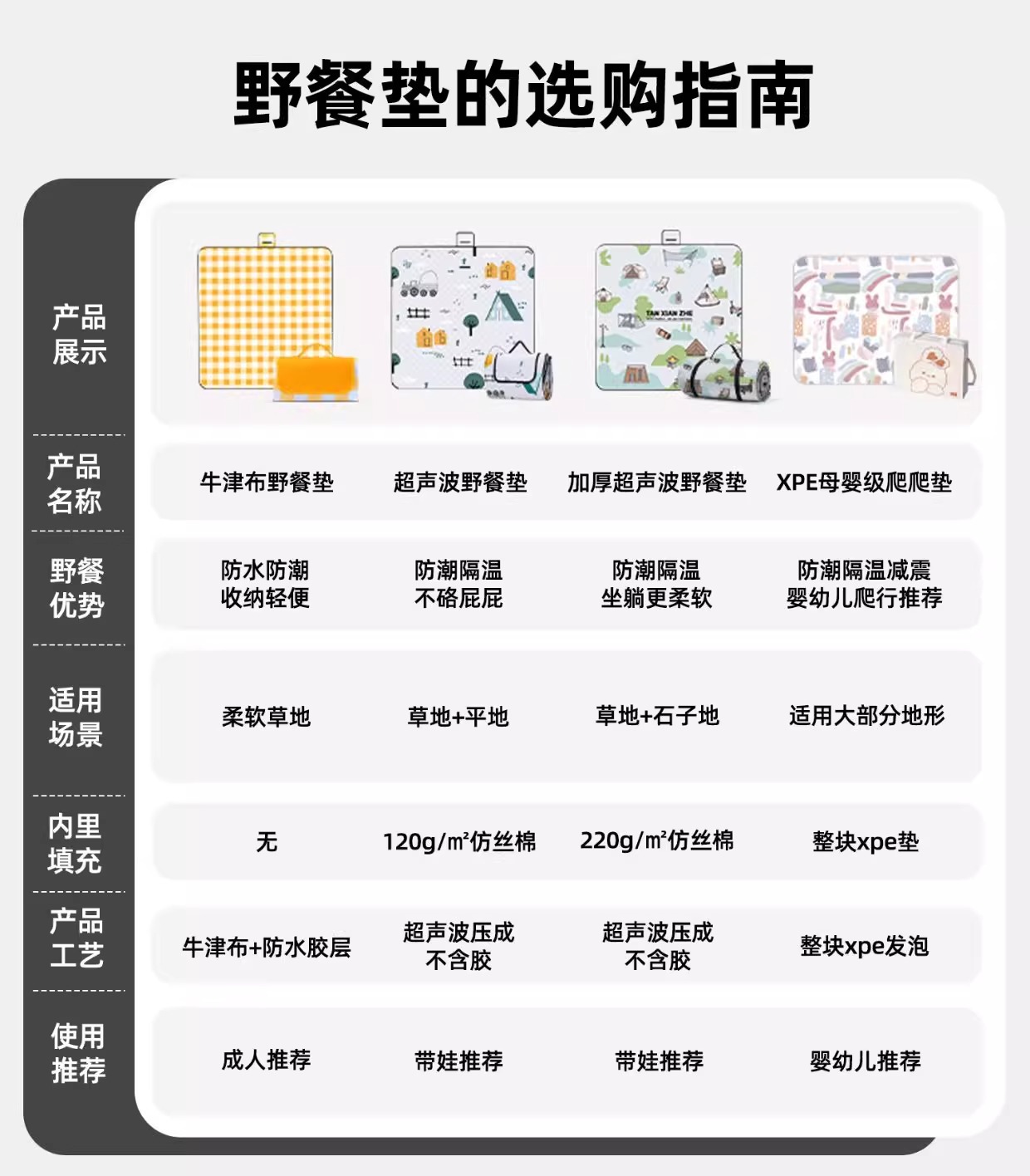 알루미늄 금형으로 두꺼운 DM 피크닉 매트 야외 캠핑 텐트 접이식 휴대용 방수 텐트 매트 두꺼운 방수 도매