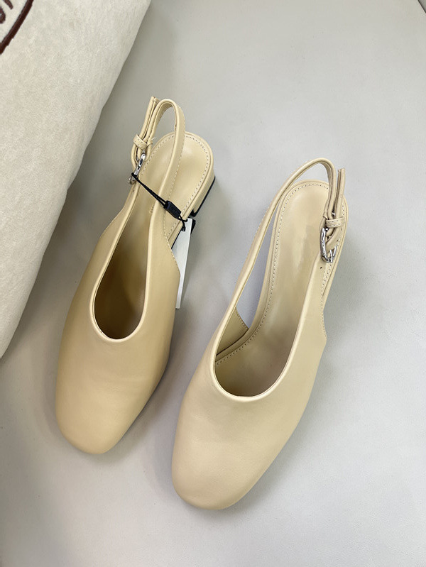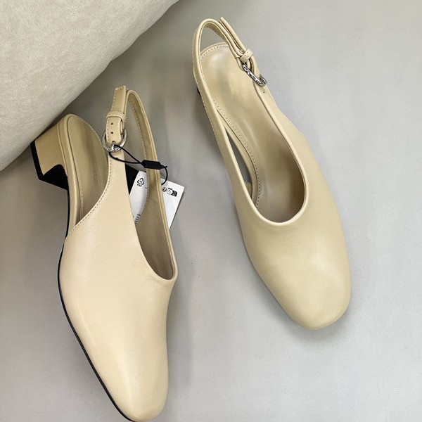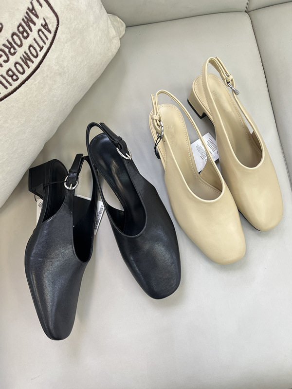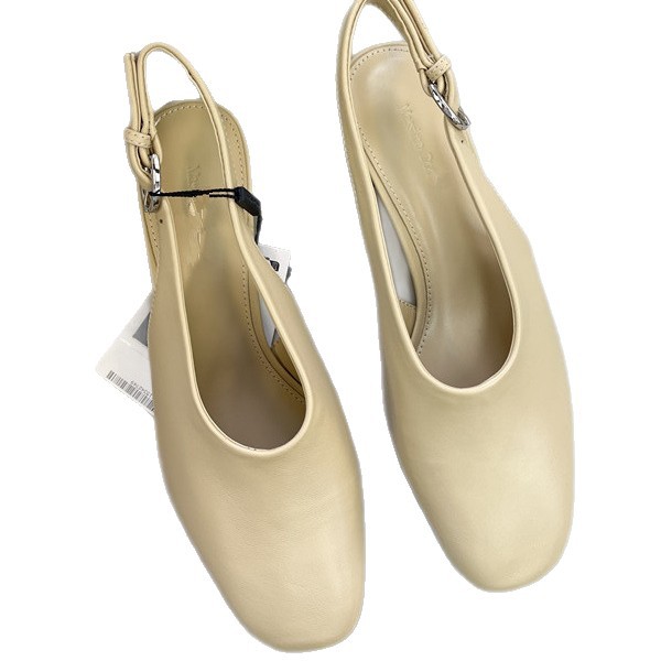 스페인 MD 여성 신발 봄 여름 신상 밀크 화이트 가죽 작은 향기로운 스타일 패셔너블하고 심플한 라운드 토 뒤쪽이 빈 하이힐
