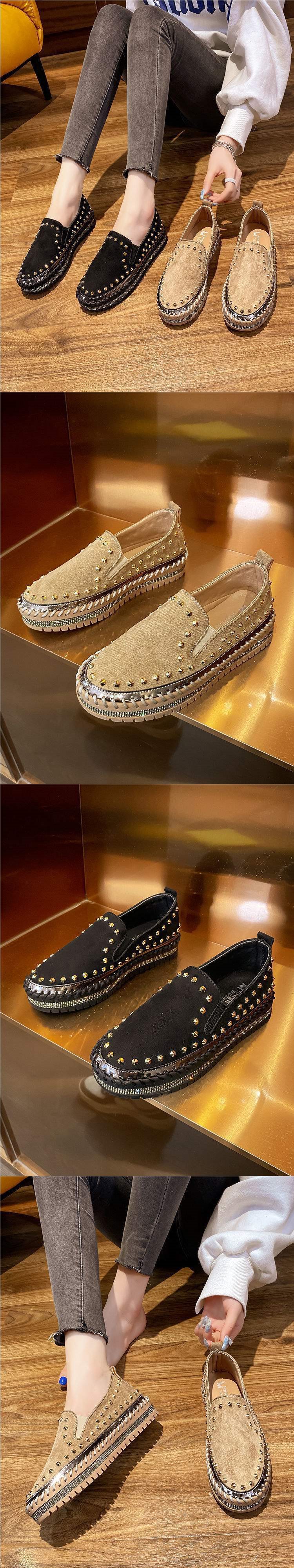 여성용 로퍼 두꺼운 밑창 캐주얼 신발 2025 봄 신작 영국 복고풍 리벳 슬립온 비니 신발