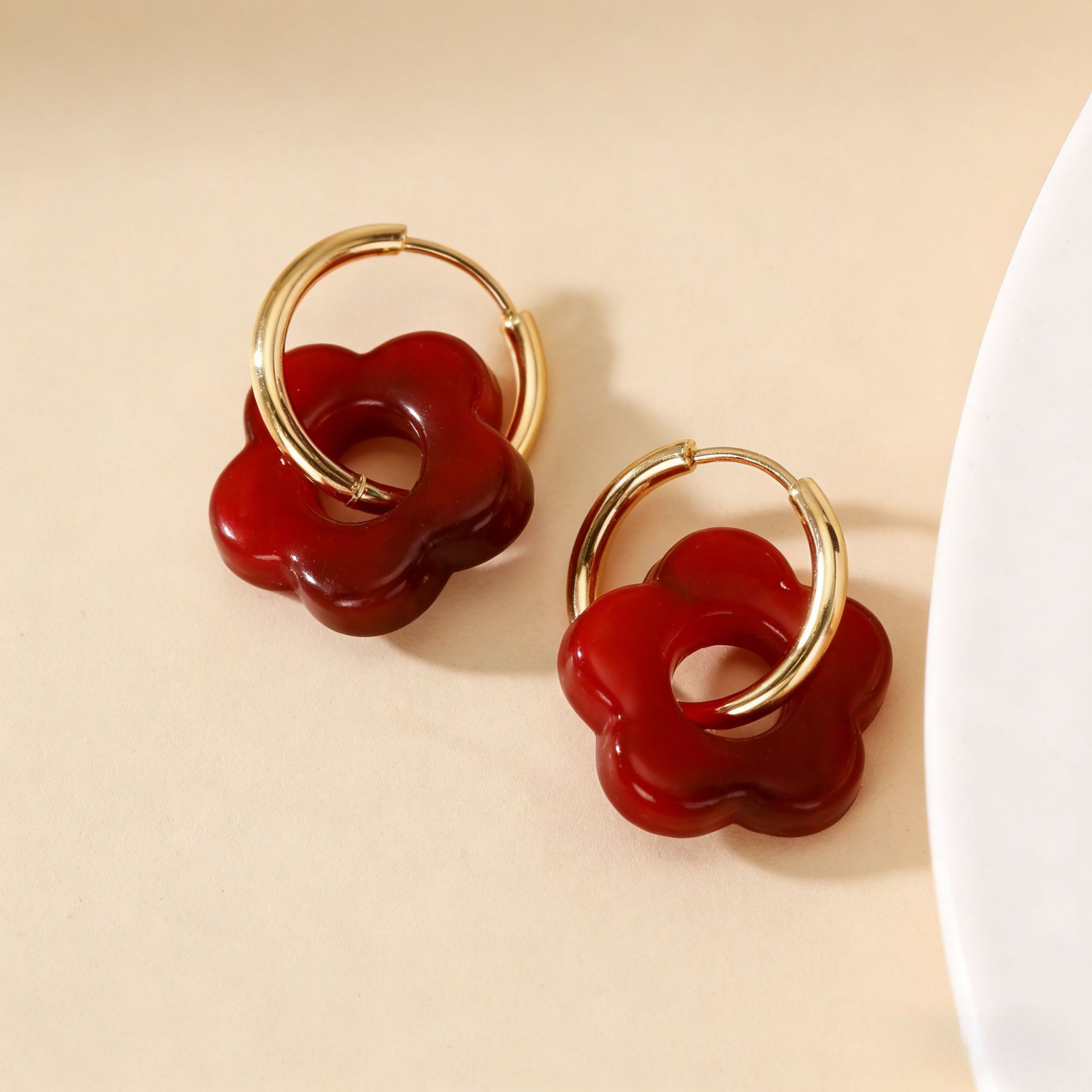 공장 직접 판매 2025 새로운 국경 간 도파민 꽃 귀걸이 에나멜 귀걸이 라이트 럭셔리 하이 엔드 귀걸이