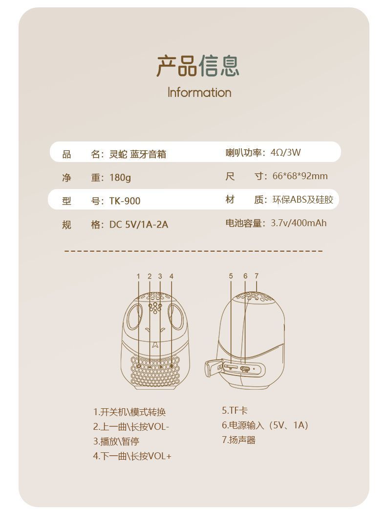 디지털 새로운 블루투스 스피커 스네이크 인터넷 연예인 인기 귀여운 장식품 고품질 사운드 방수 및 방진 3D 입체