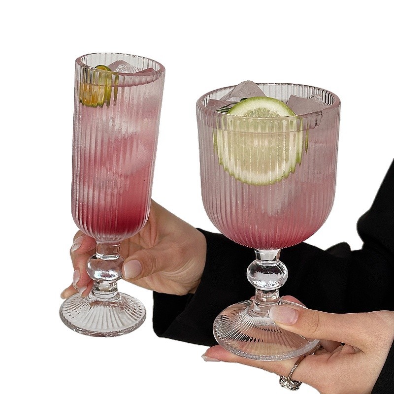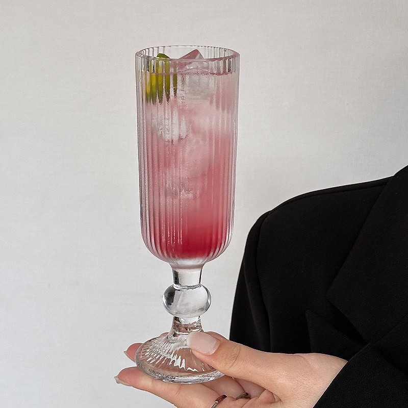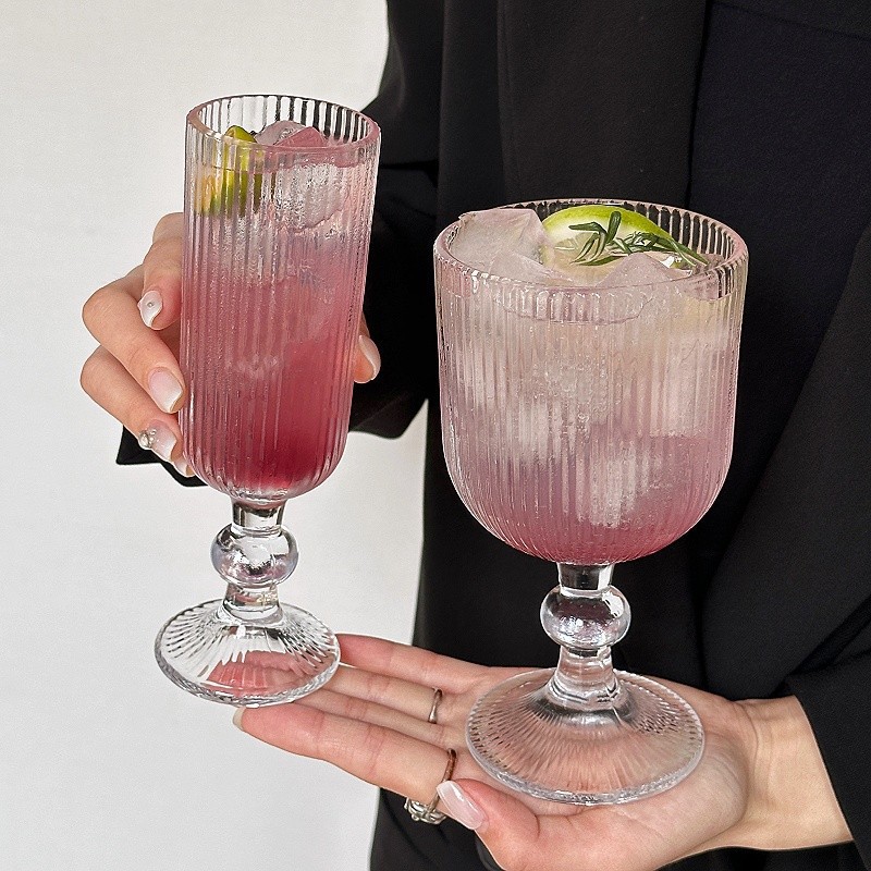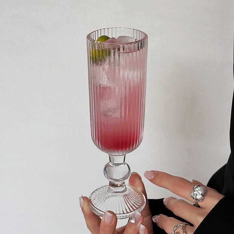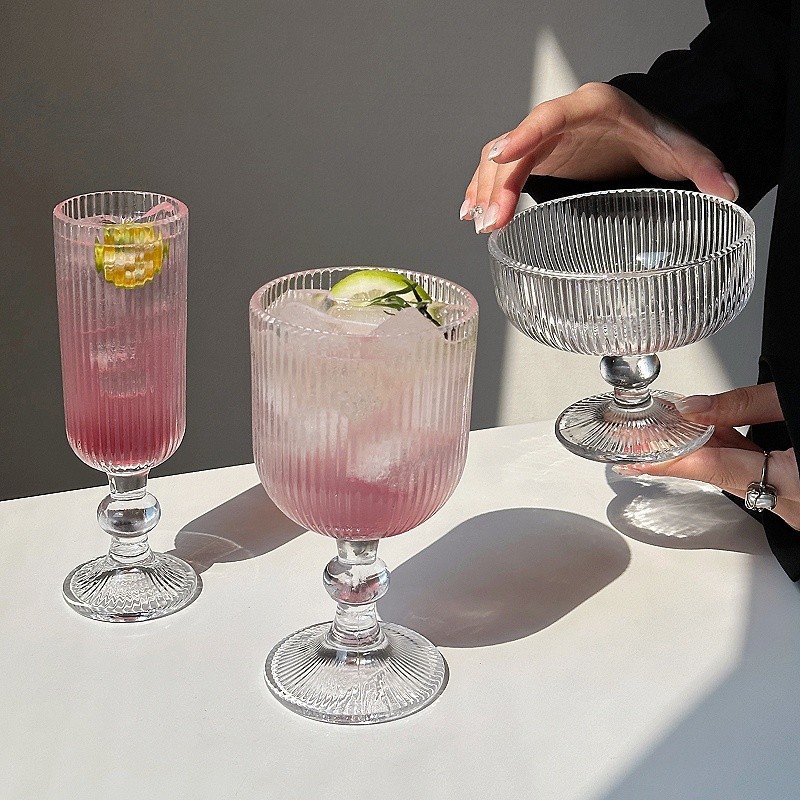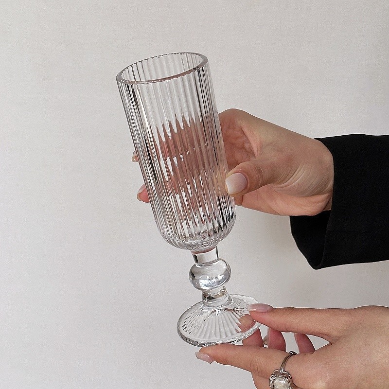 ~玻璃杯竖纹弧形高脚杯红酒杯葡萄酒杯果汁杯 敲好看 集美们 推荐入手~