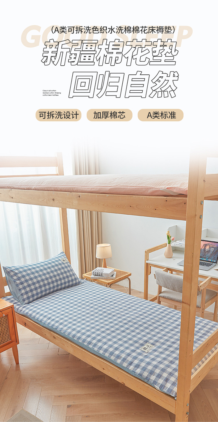 A급 신장면 매트리스 다다미 침대 매트리스 이불 탈부착 가능 세탁 가능 싱글 학생 기숙사 침대 매트리스 이불 세트 개학용
