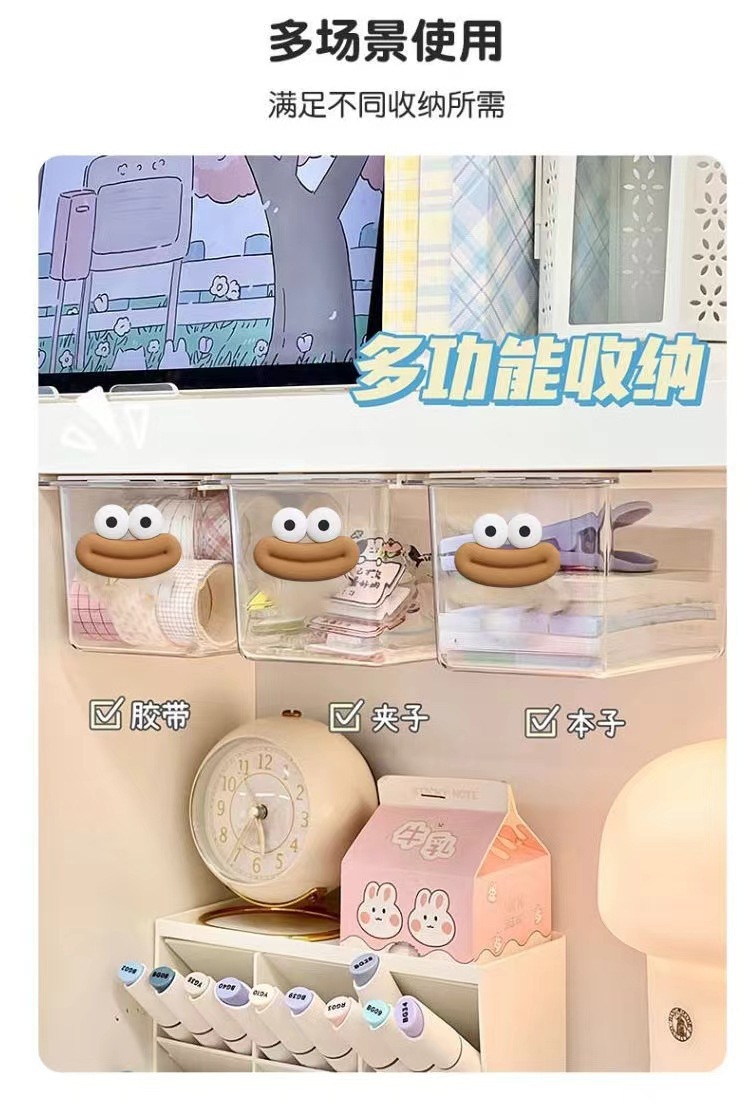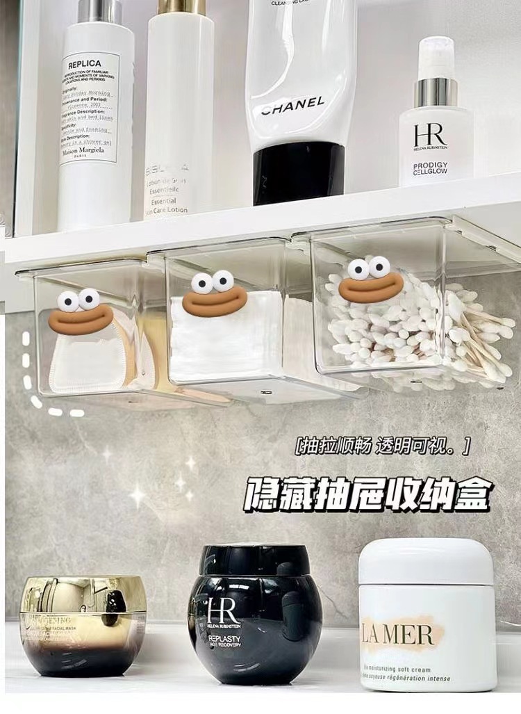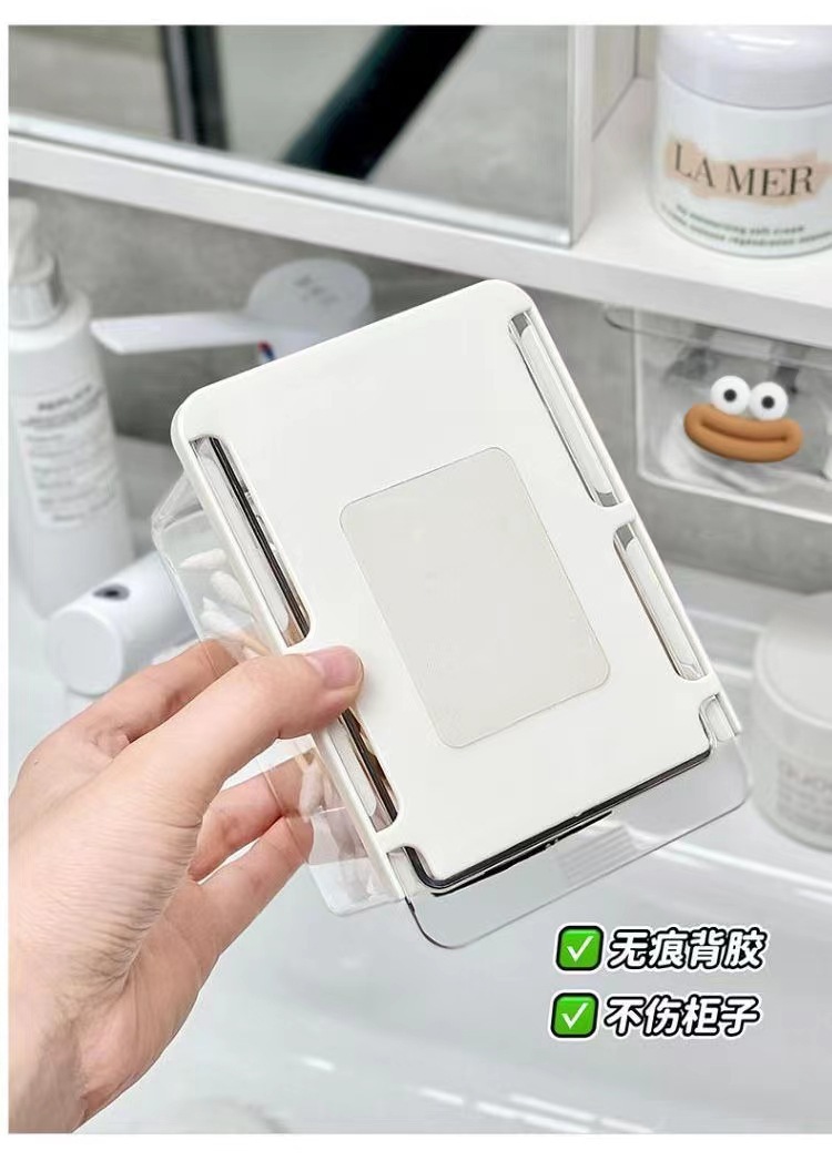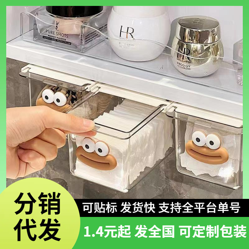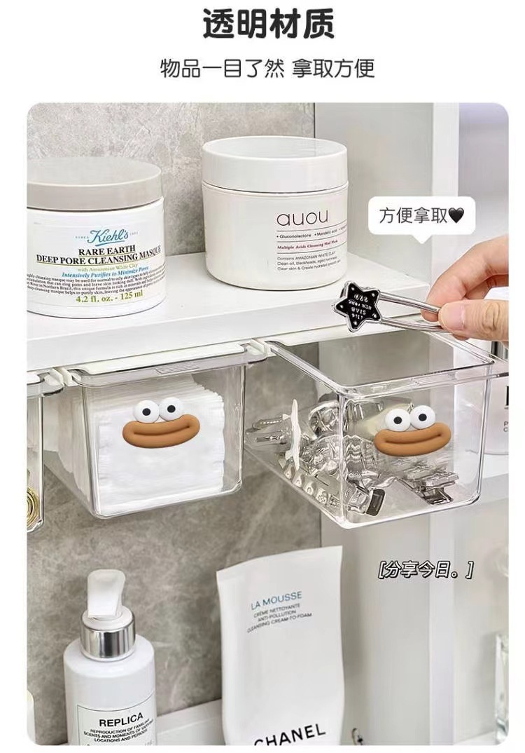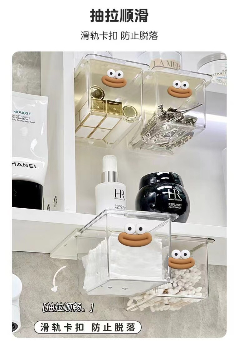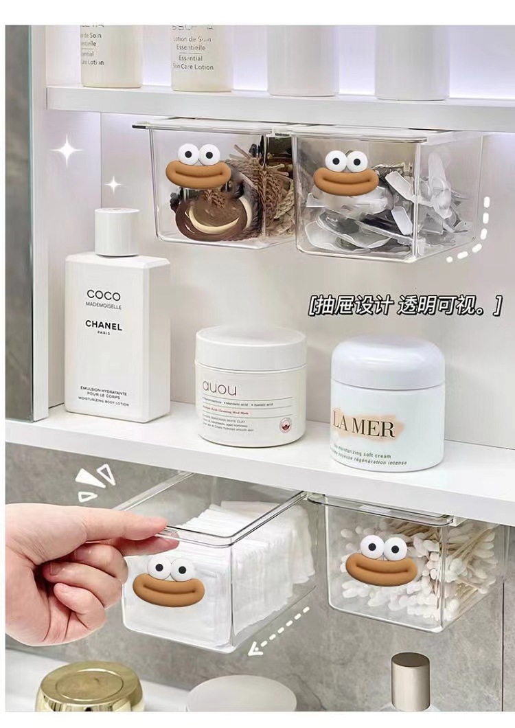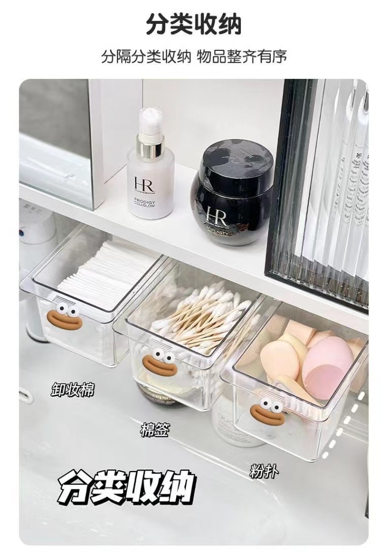큰 입 서랍 스타일 저장 상자 투명 만화 욕실 면봉 화장품 면화 욕실 캐비닛 풀 아웃 스토리지 랙