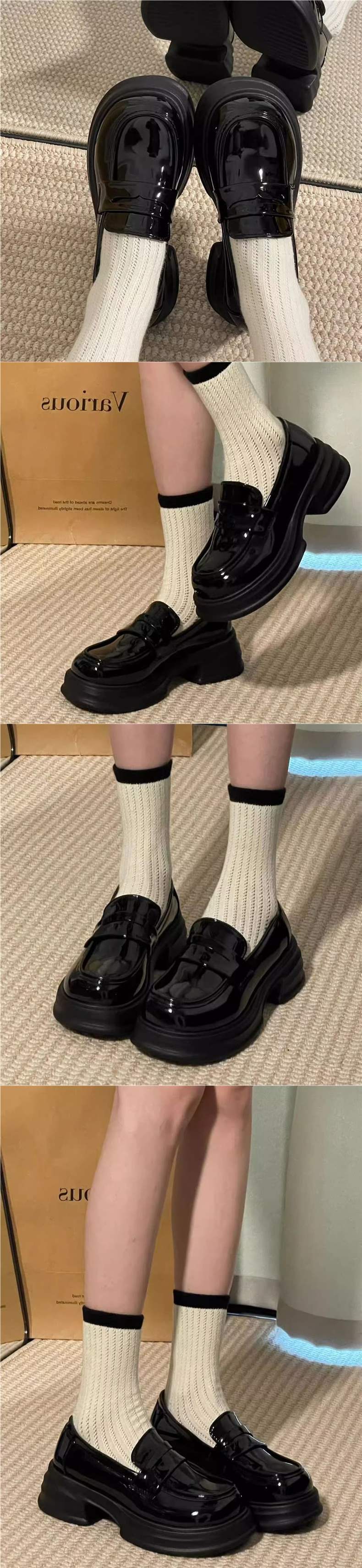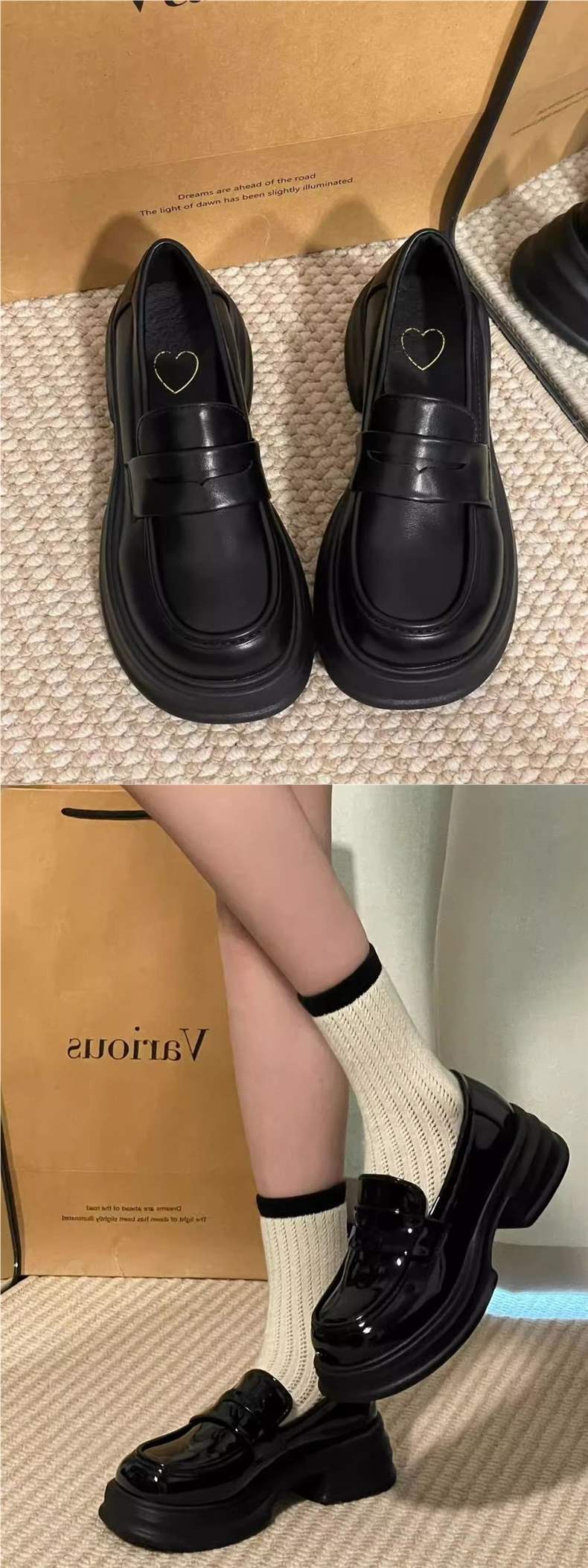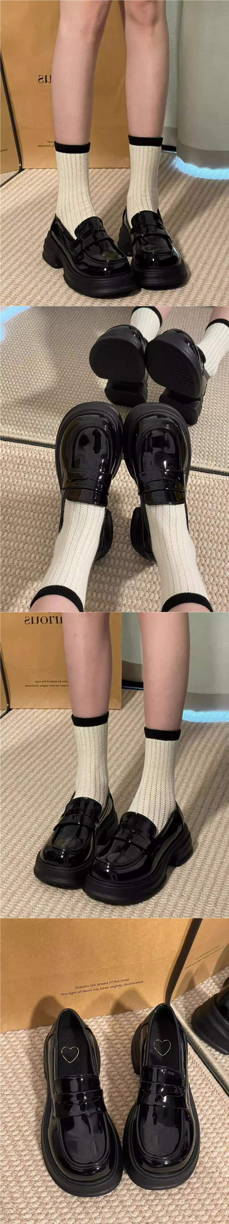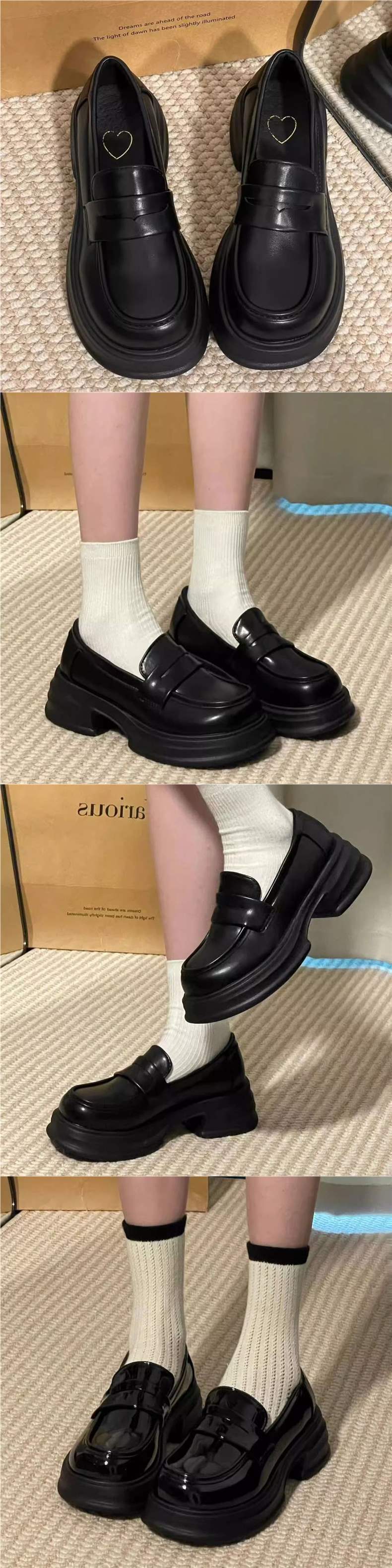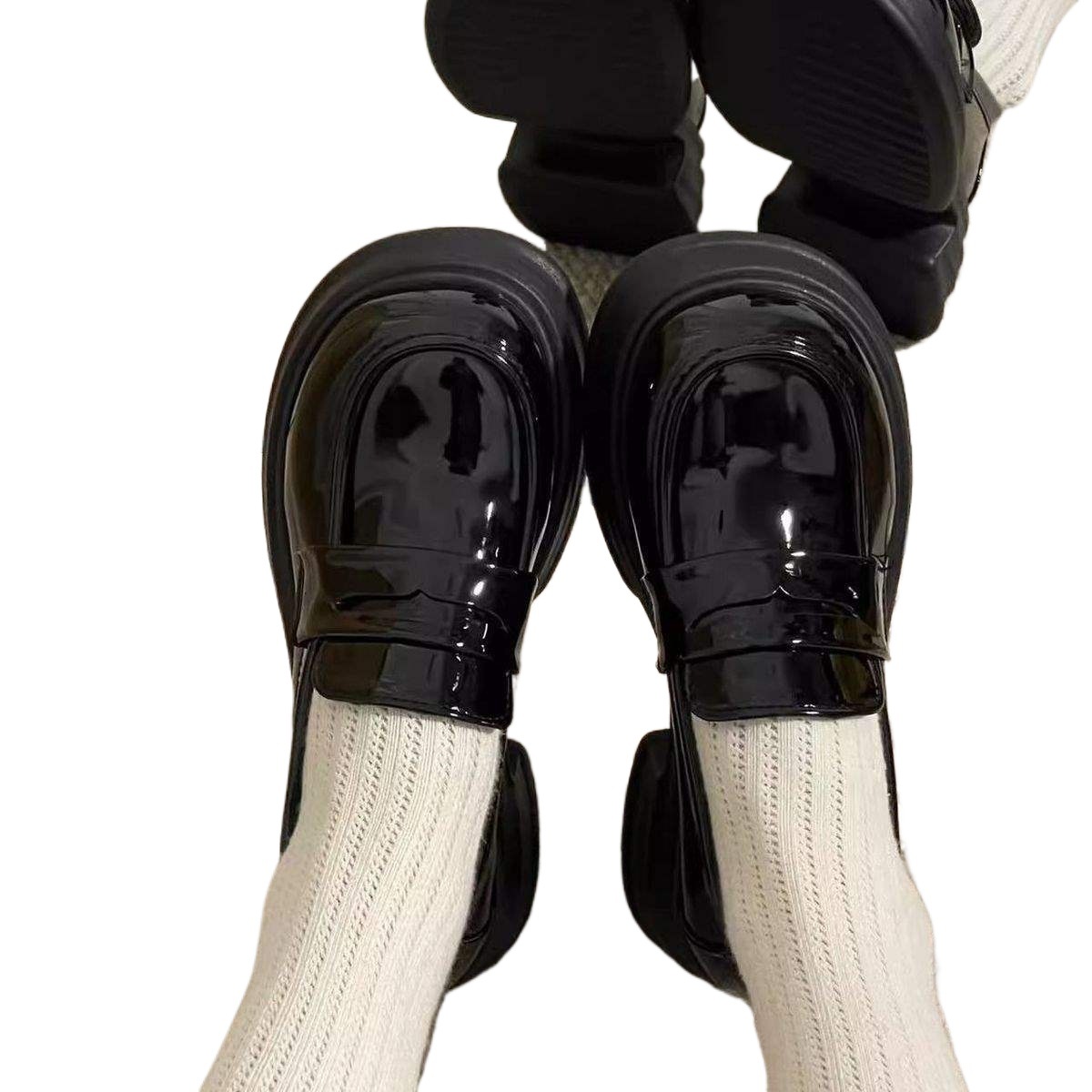 34-46 여성용 라운드 토 두꺼운 밑창 싱글 슈즈, 블랙 컬리지 스타일 스몰 가죽 슈즈, 다용도 영국 로퍼 2025jk 슈즈