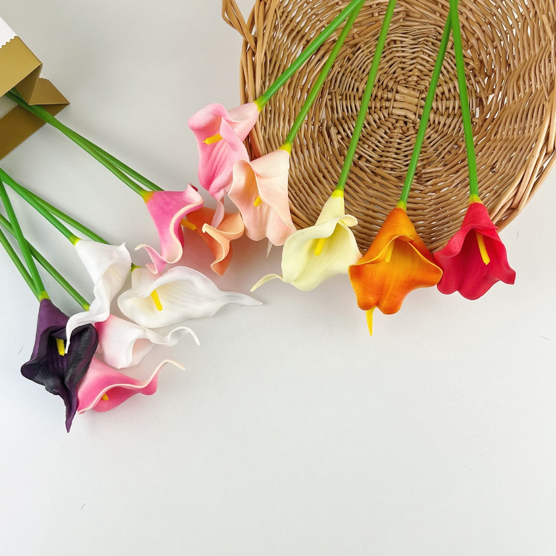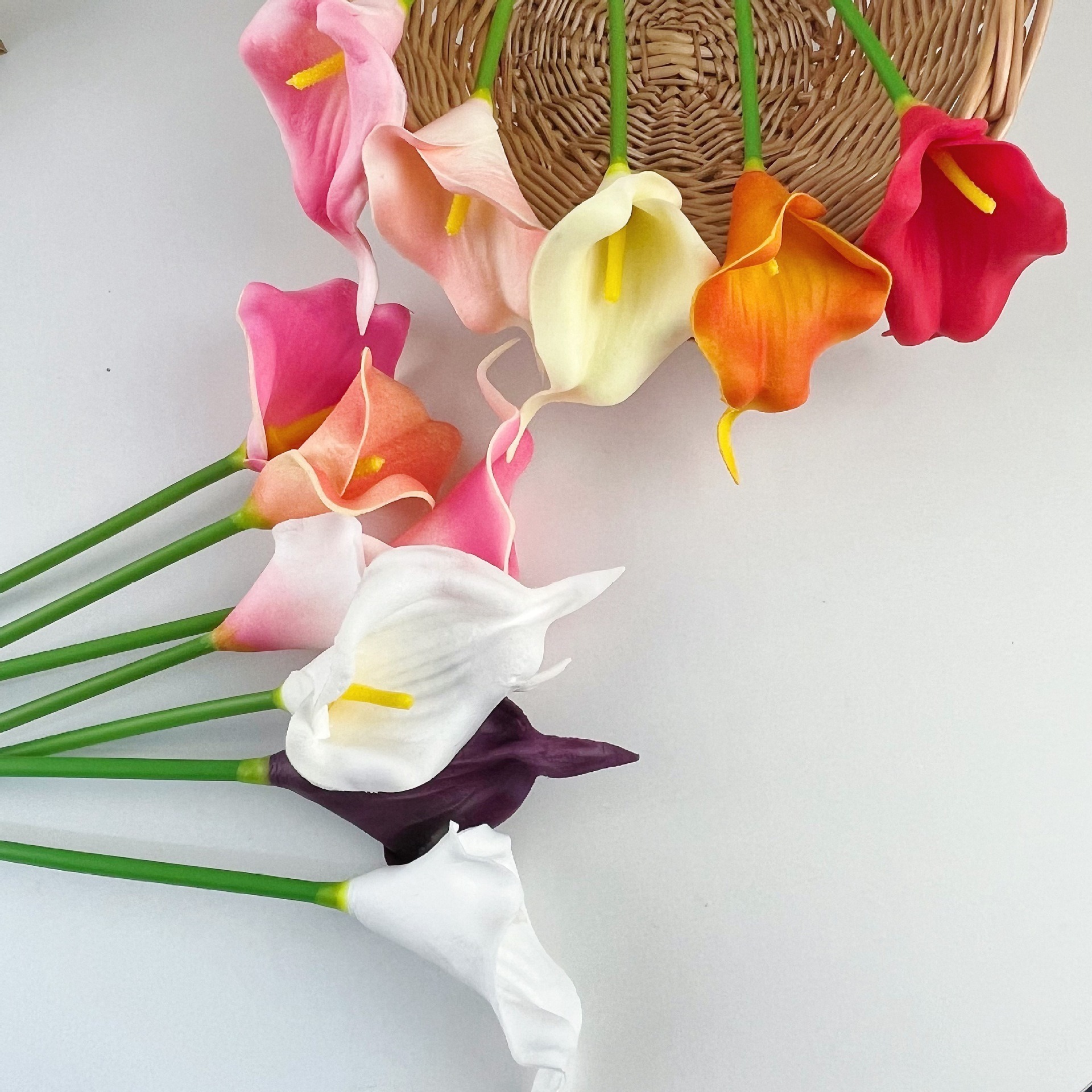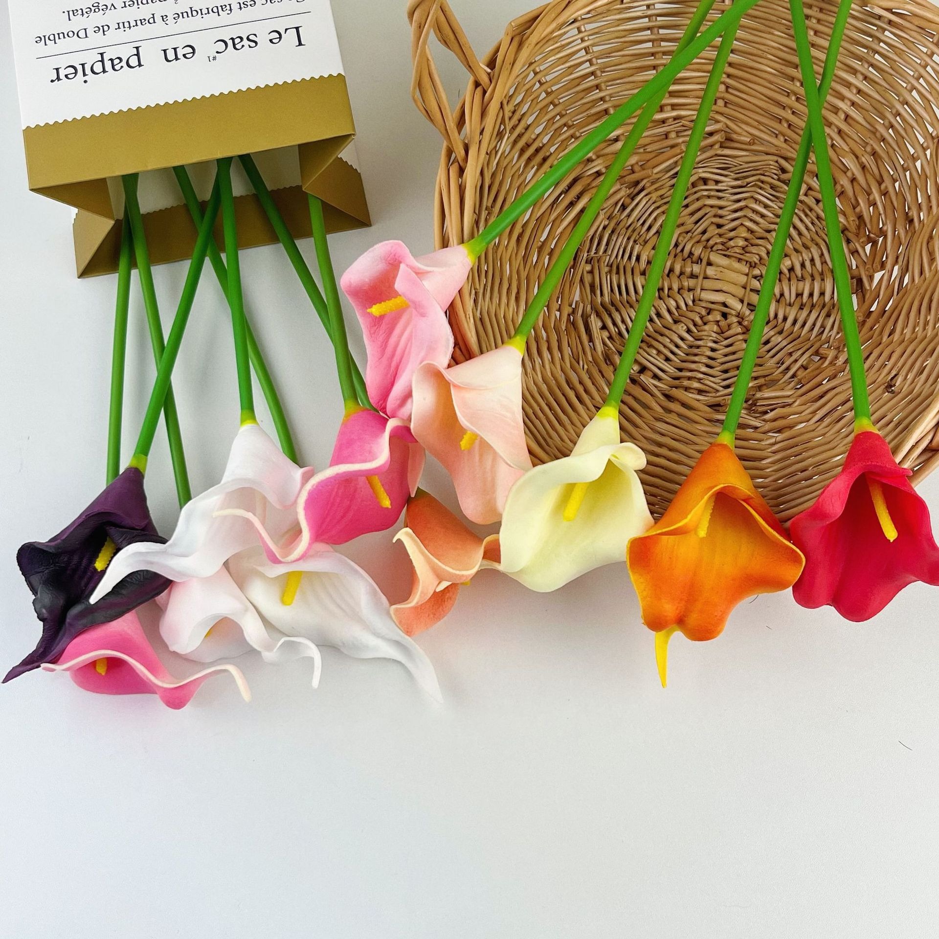 미니 PU 칼라 릴리 인공 꽃 웨딩 홈 장식 가짜 꽃다발 사진 조경 소품 도매